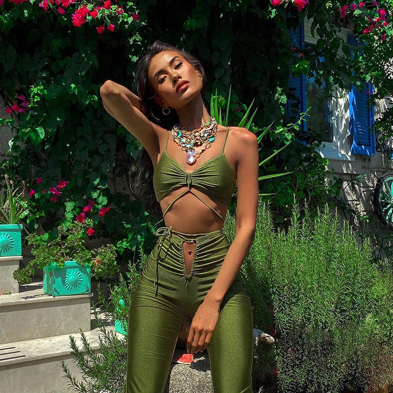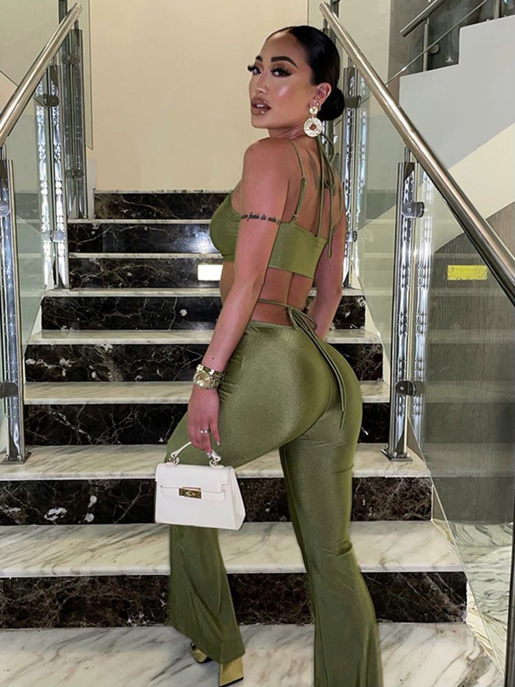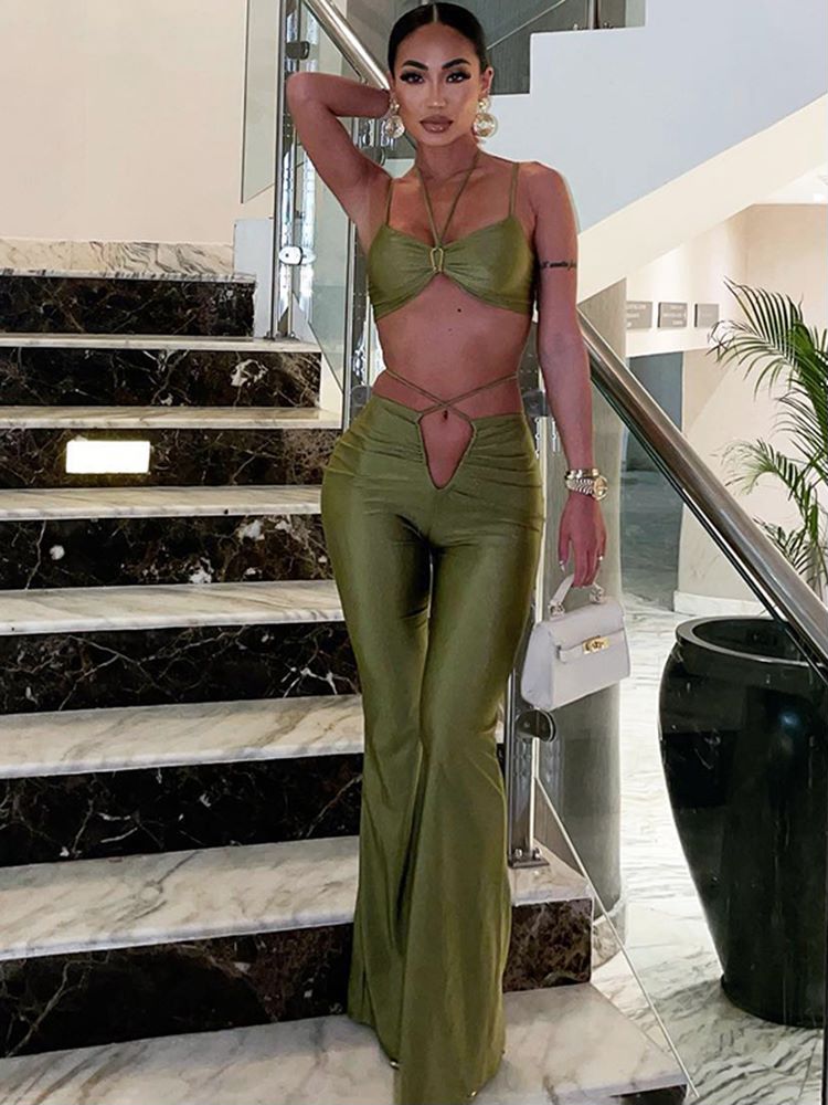 FashionSierra - Bandage Crop Top and Flare Pants 2 Piece Sets