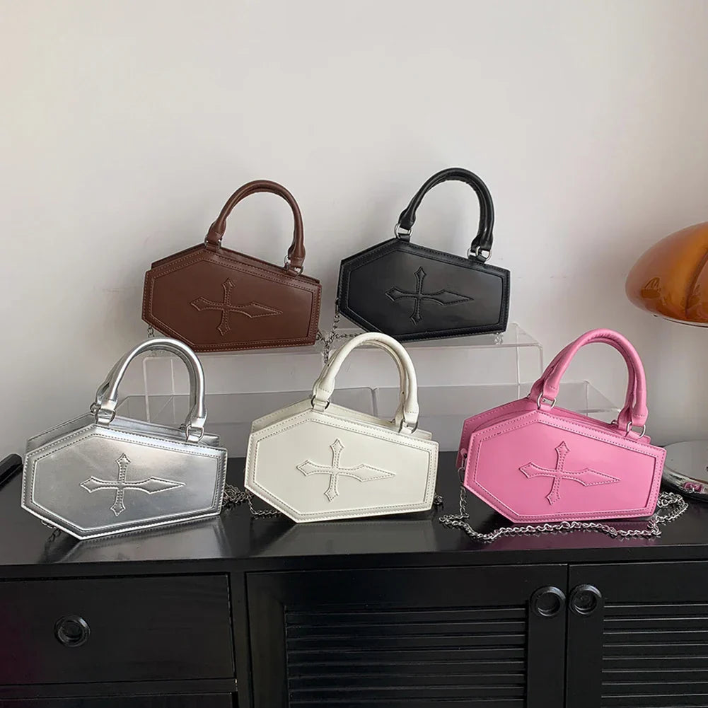 Large Capacity Coffin Shape Phone Shoulder PU Top Handle Travel Cosmetic Crossbody Bag
