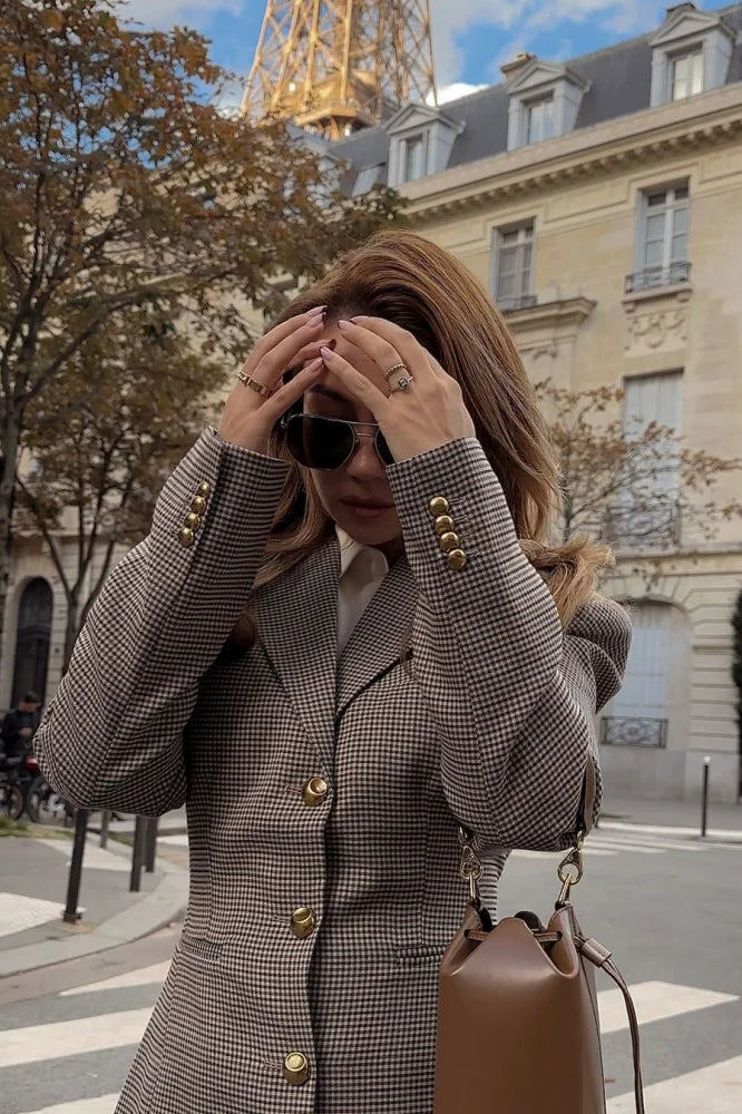 Plaid Slim Fit Waist Blazer