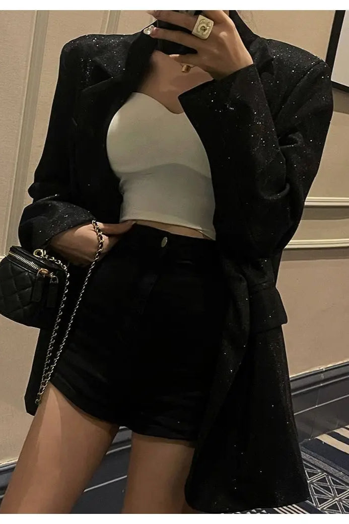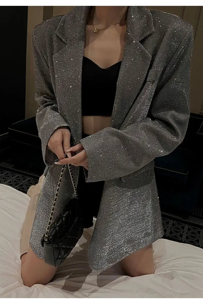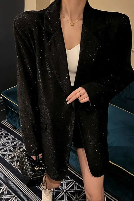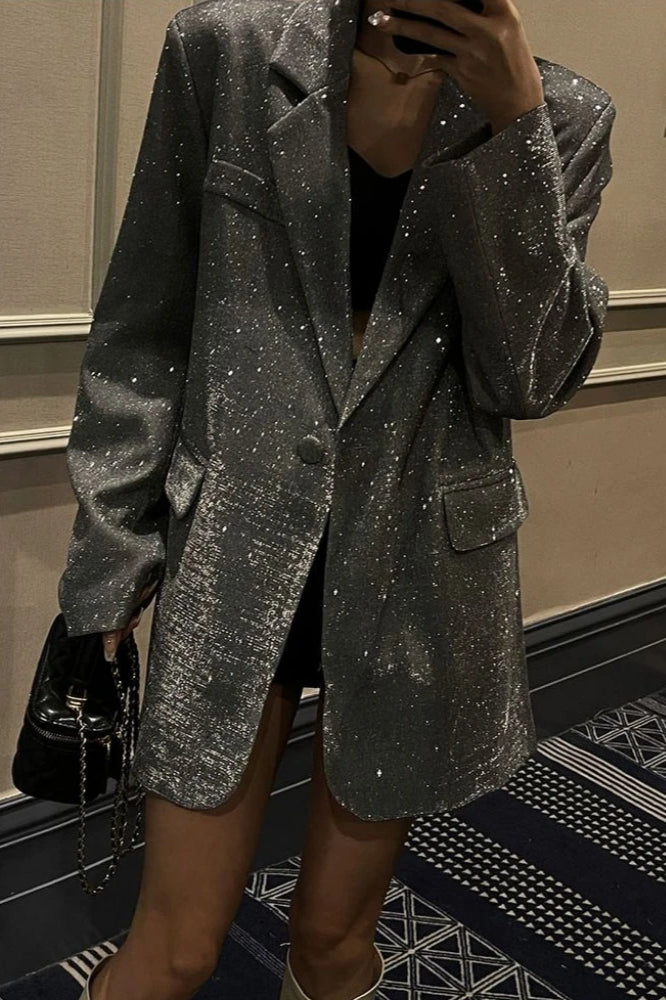 Chic Single-Breasted Sequin Blazer