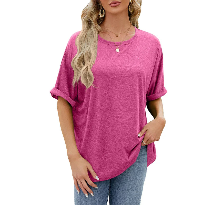 Summer Women's Oversized Pullover O-Neck Short Sleeve Solid Color Blouse