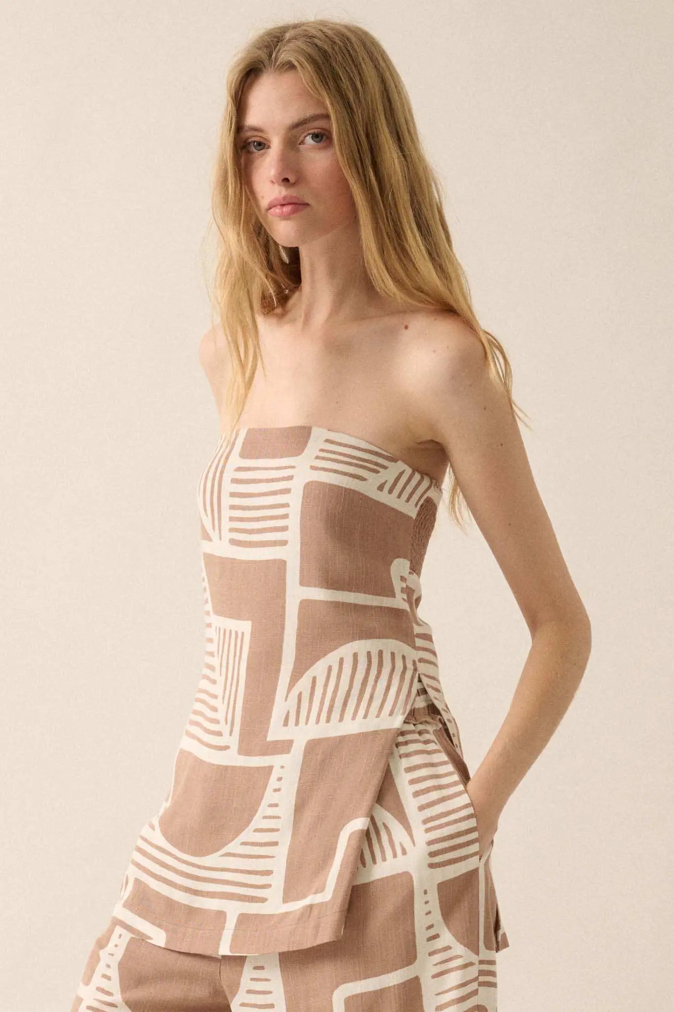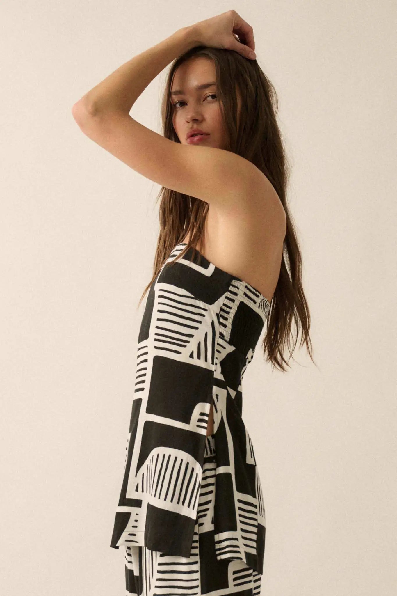 Shape Shift Geo-Print Strapless Tunic Top - ShopPromesa