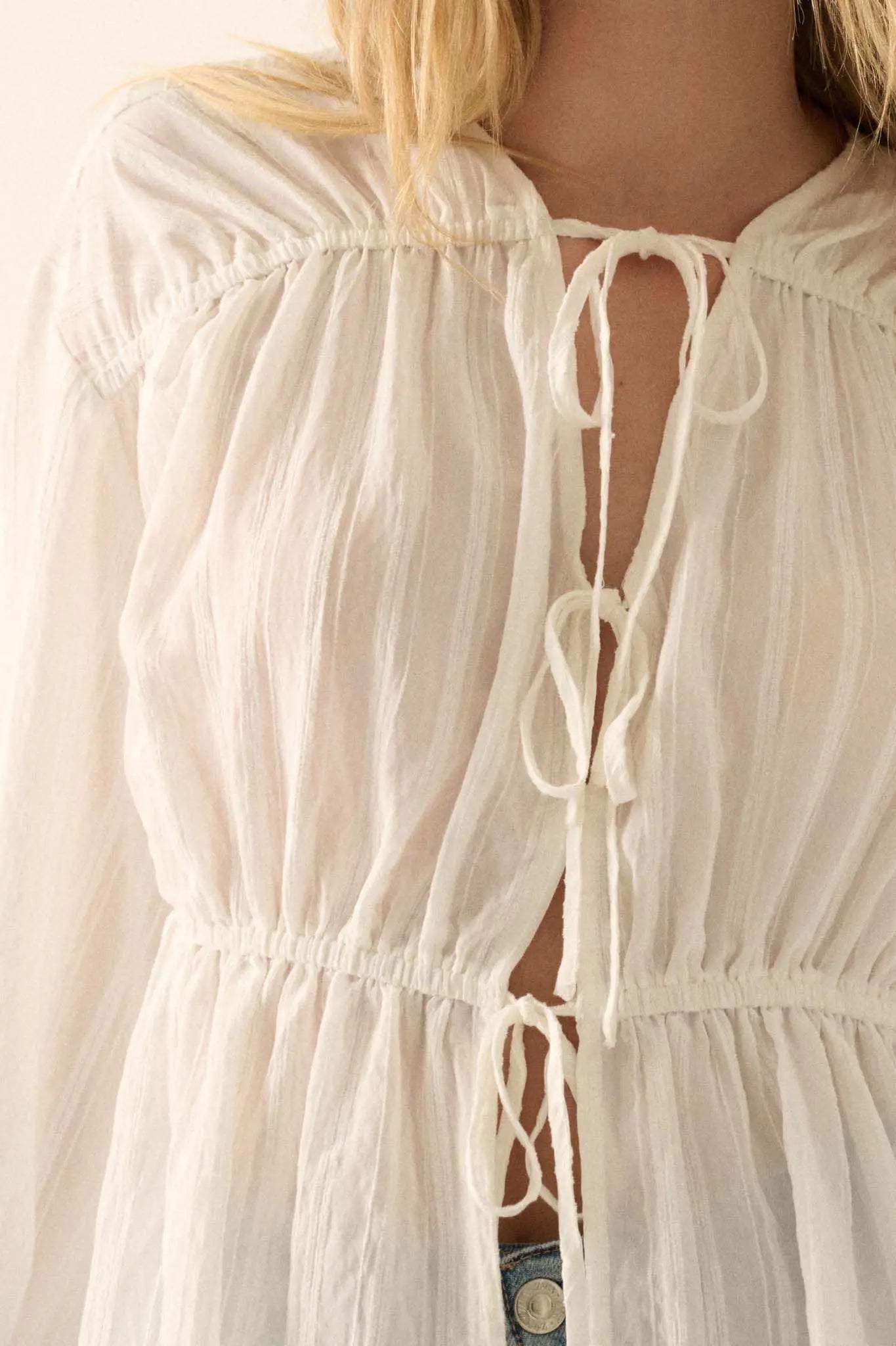 Treasured Beauty Tonal-Stripe Tie-Front Blouse - ShopPromesa