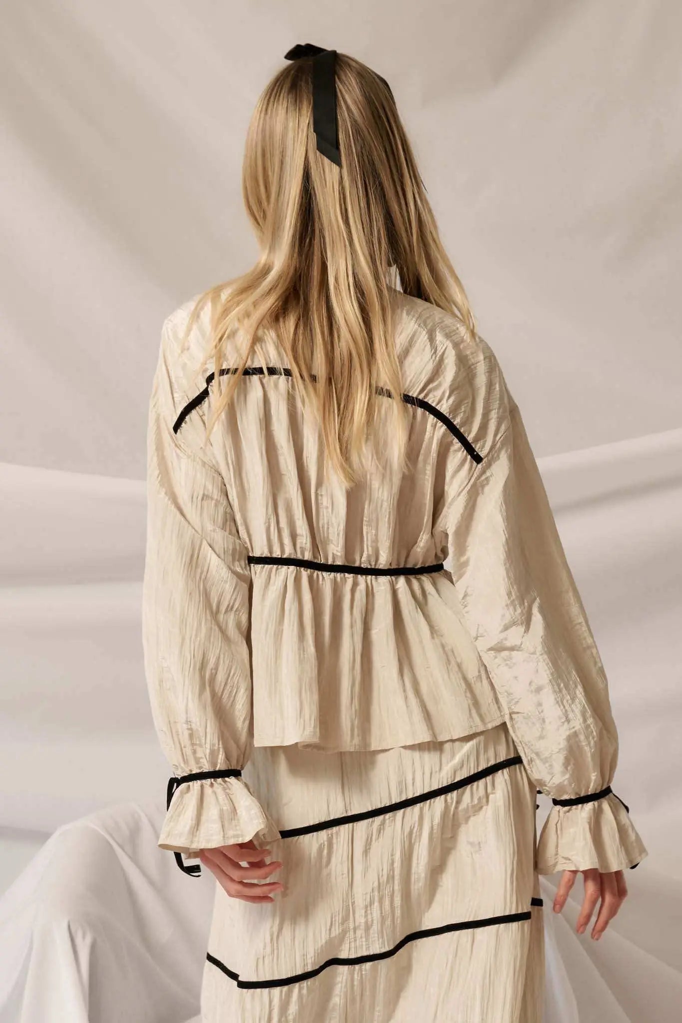 • Textured satin blouse.