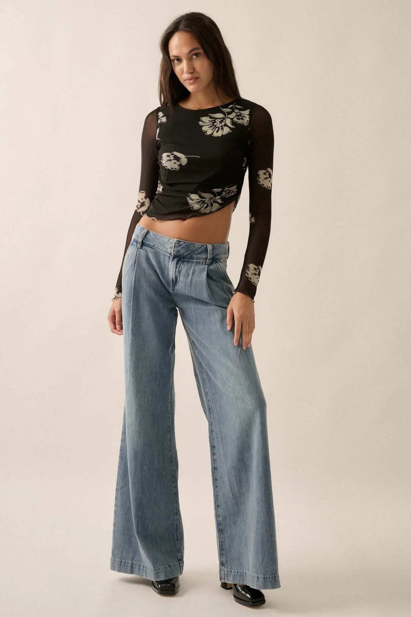 • Floral-print mesh top.