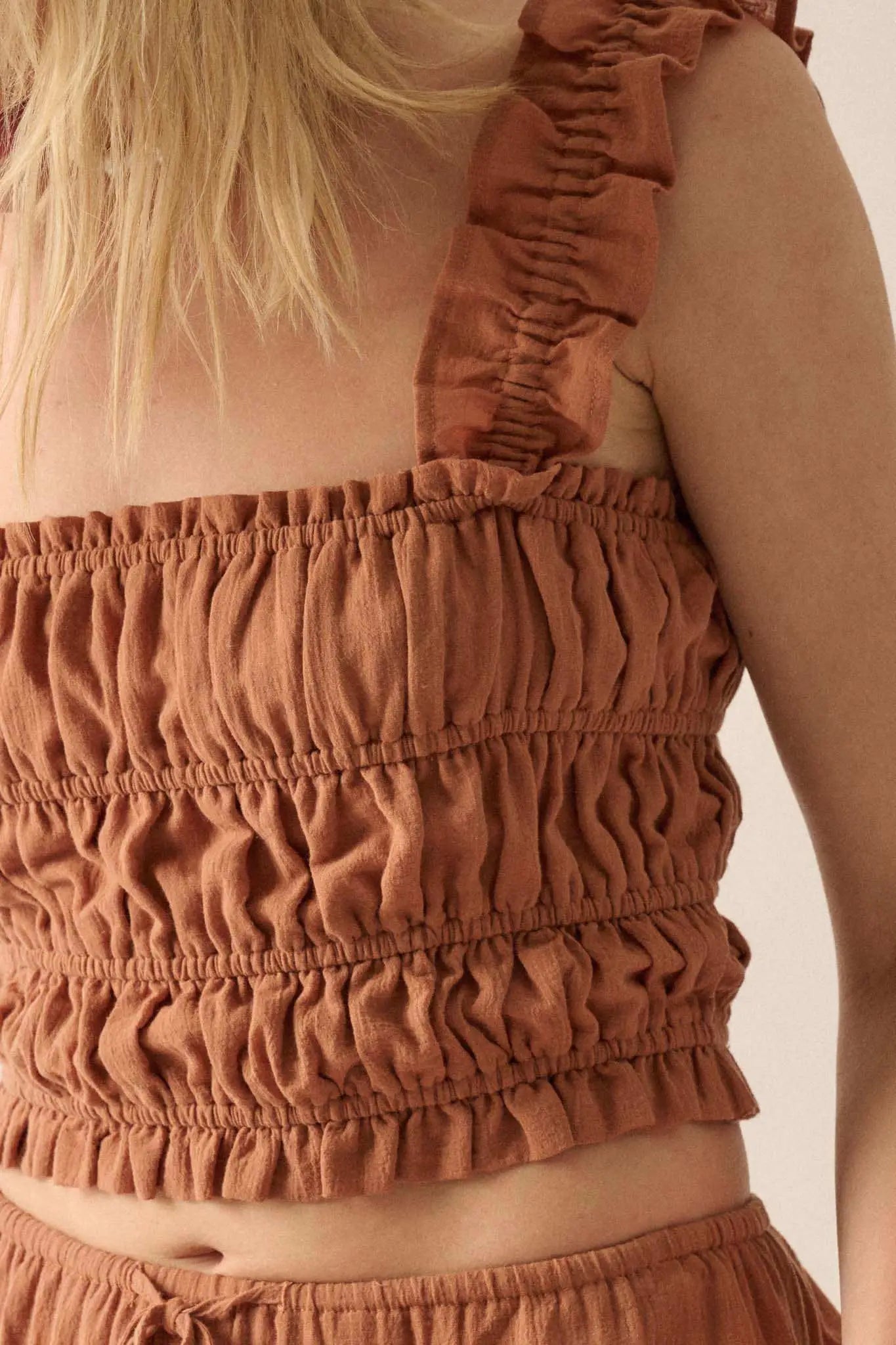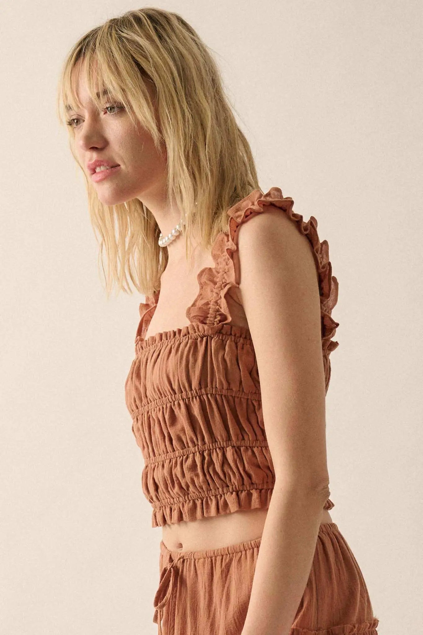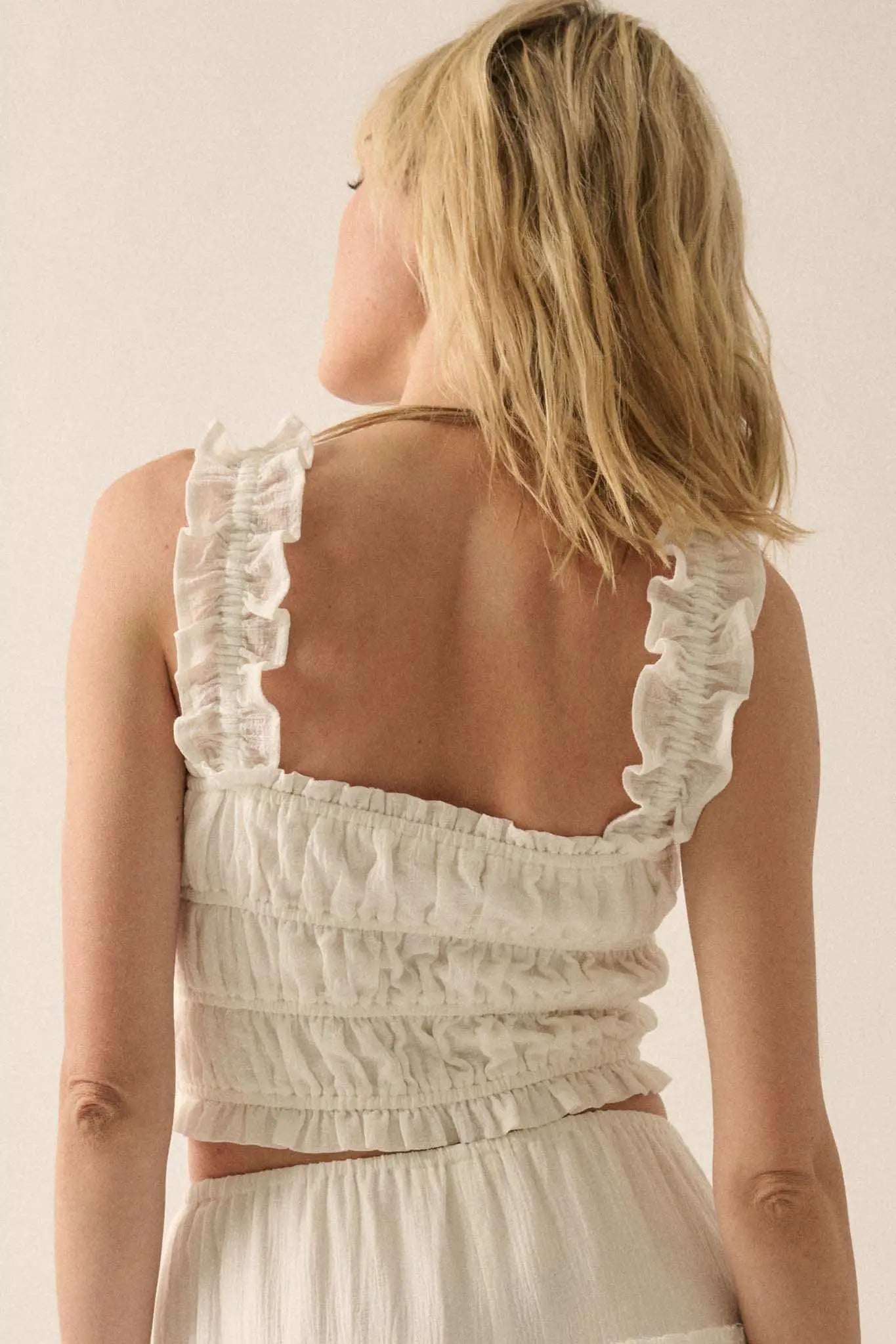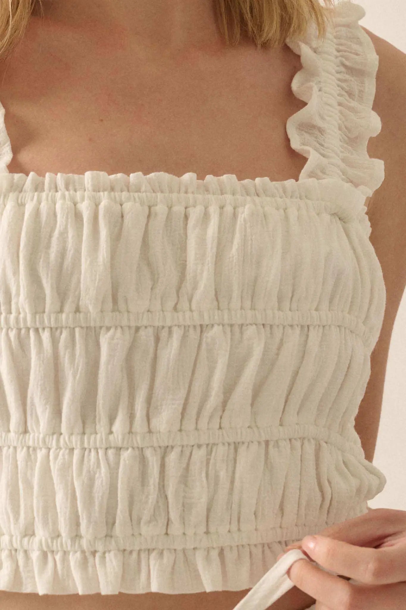 Sandy Shores Smocked Ruffle Cropped Cami Top