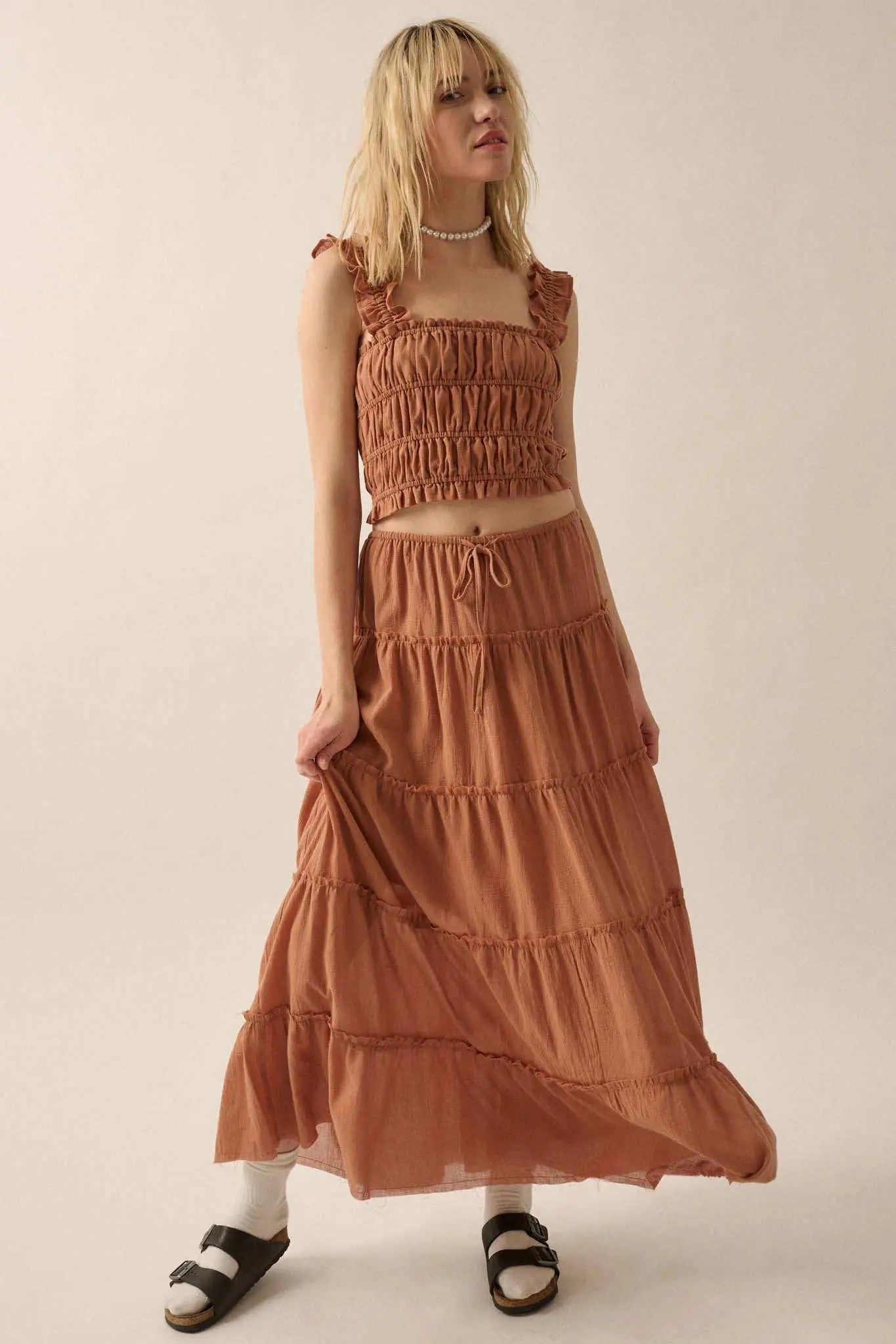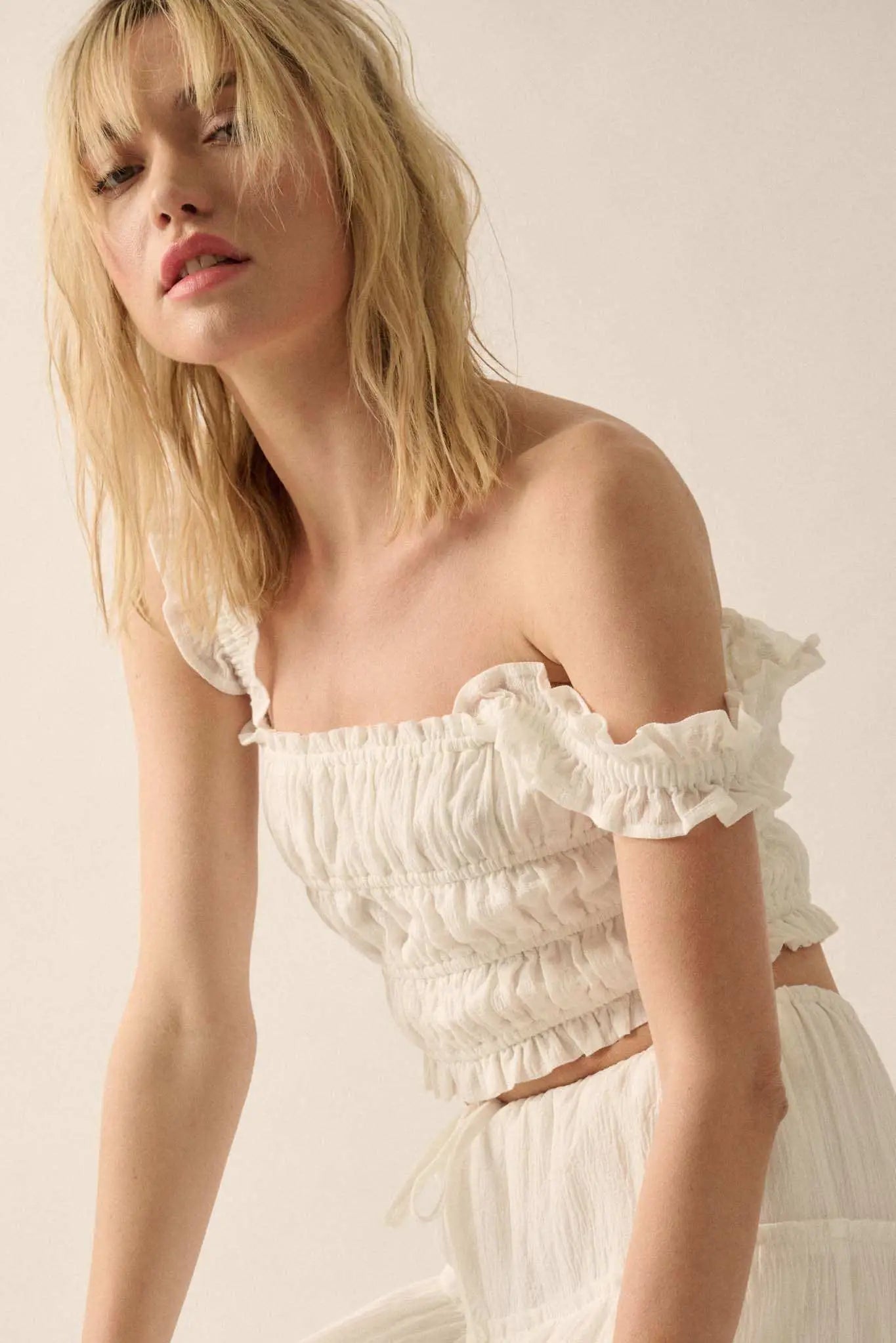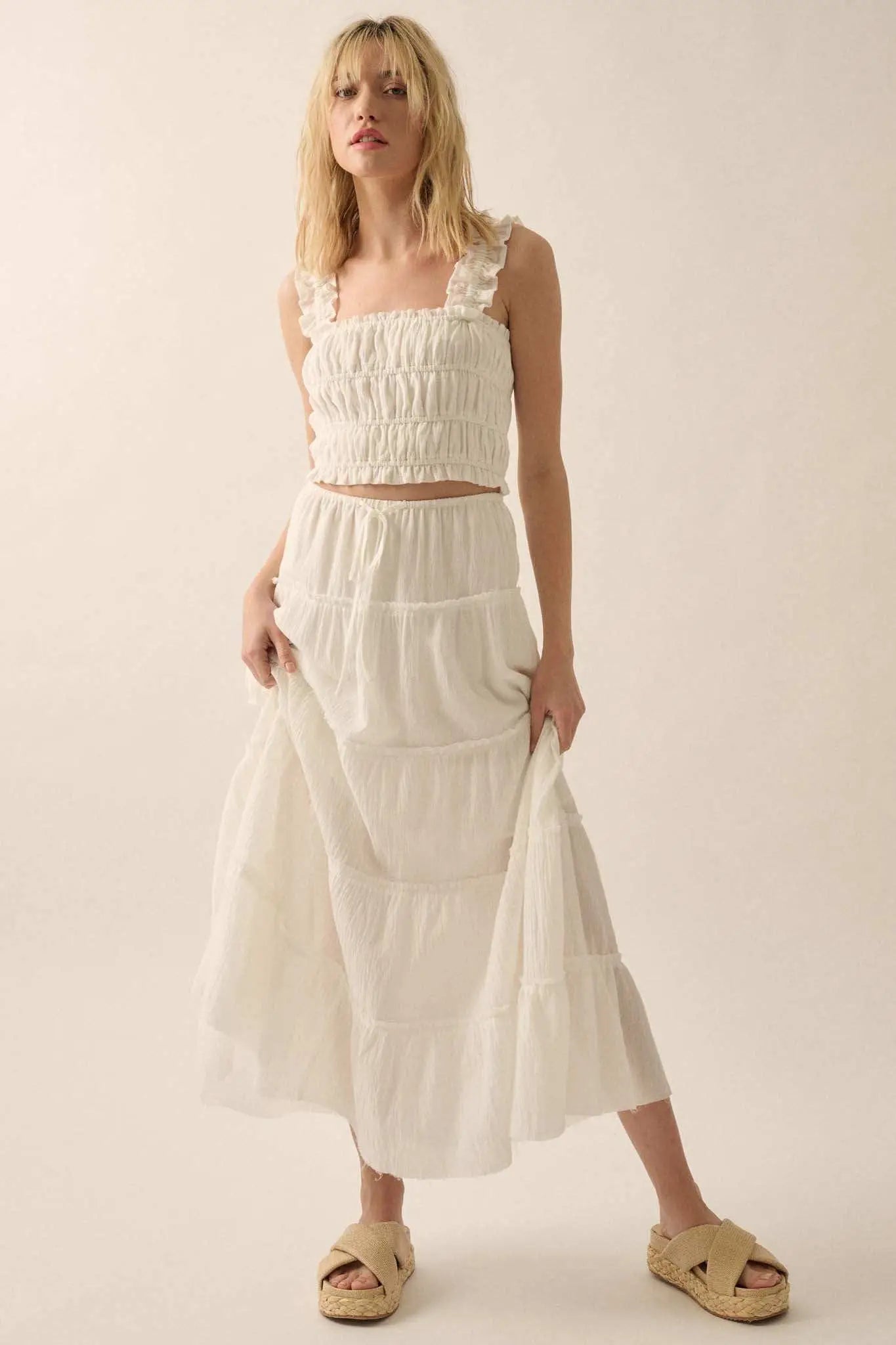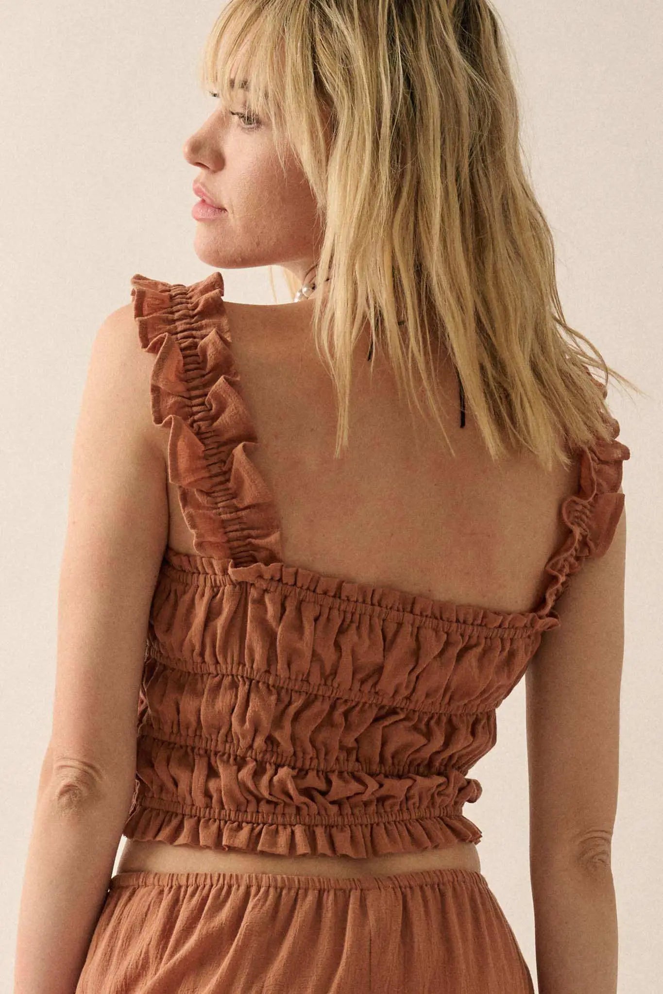 Sandy Shores Smocked Ruffle Cropped Cami Top
