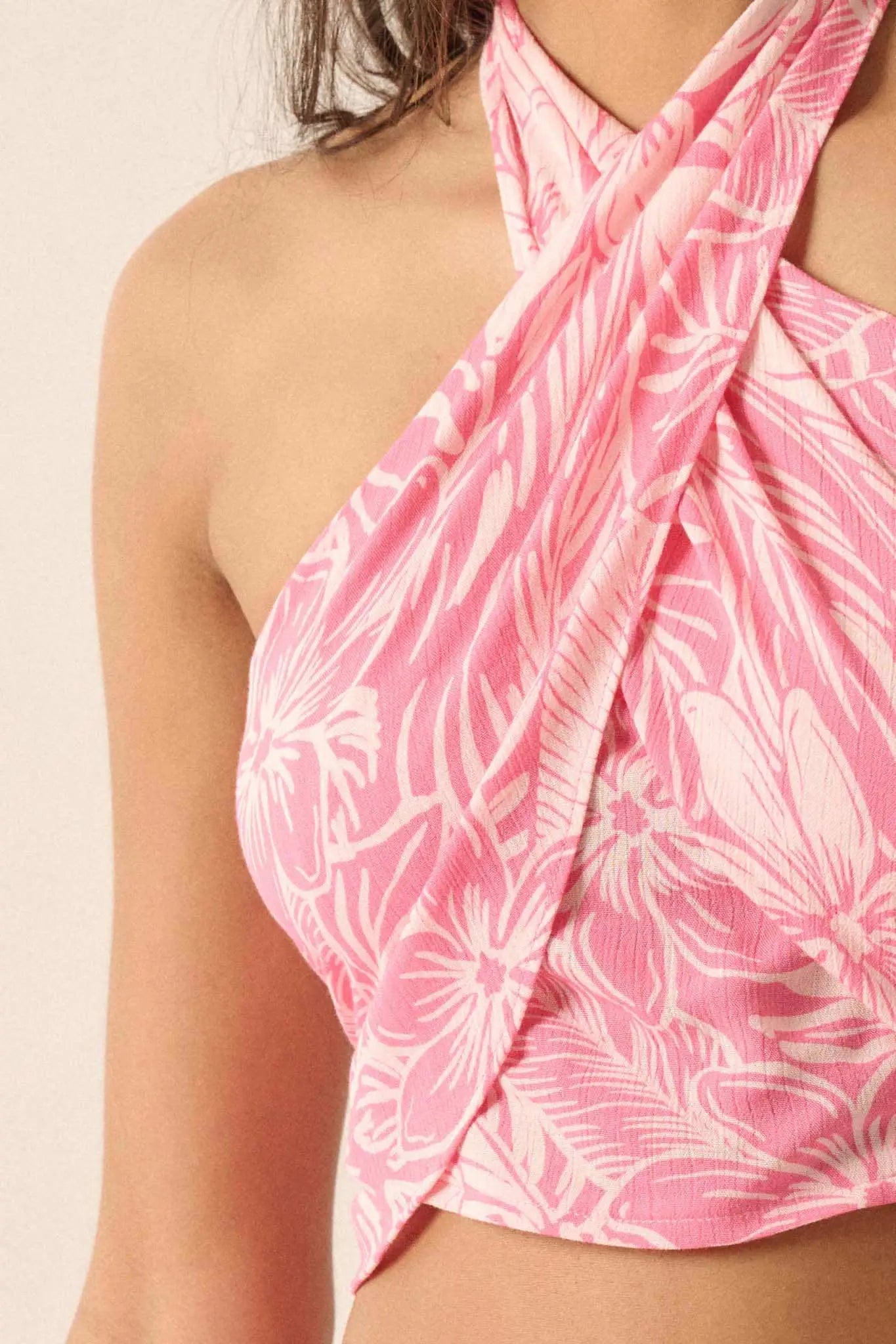 Tropical Tides Floral Cross-Front Halter Top - ShopPromesa