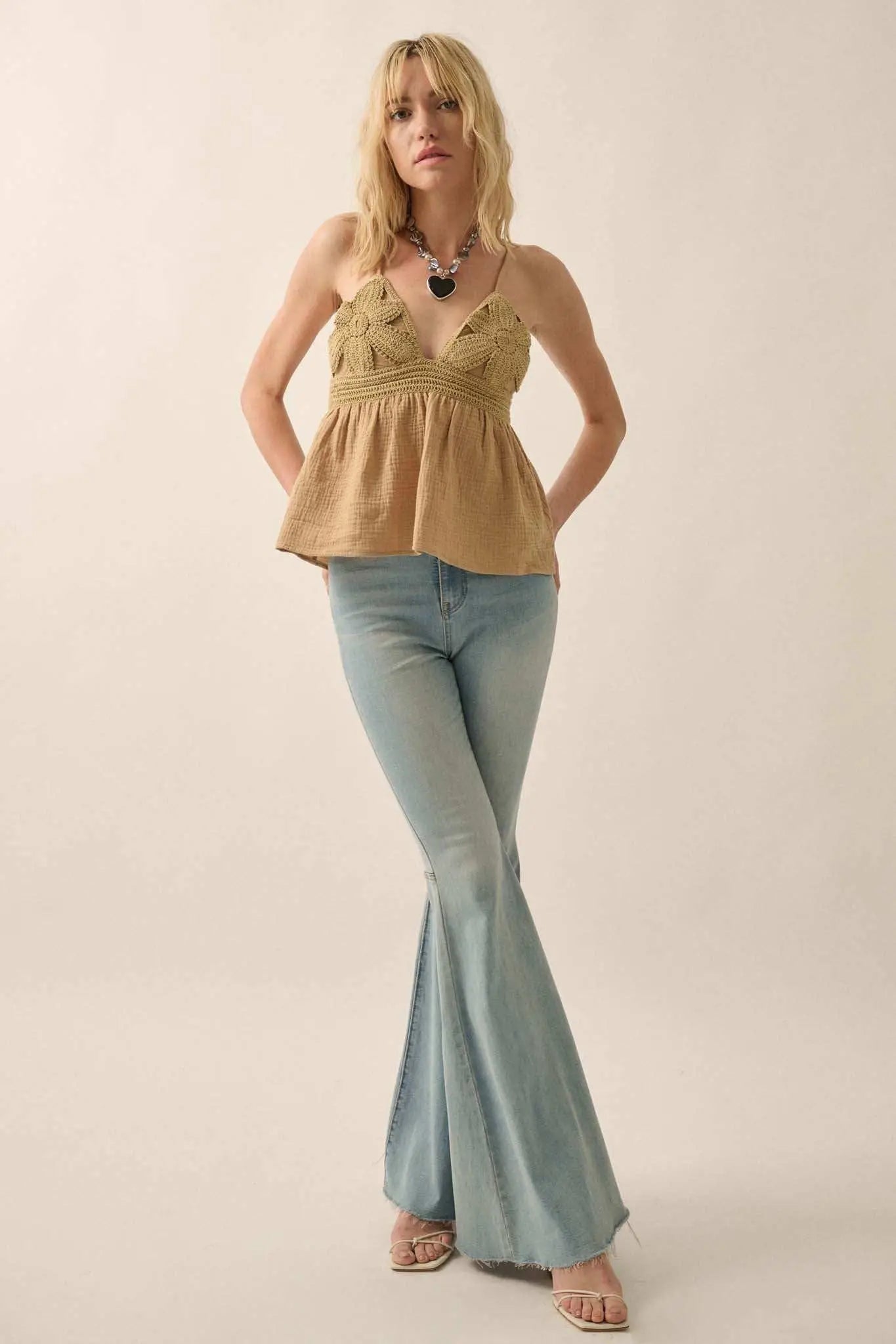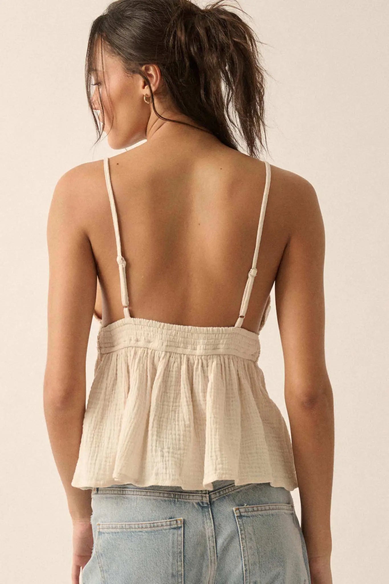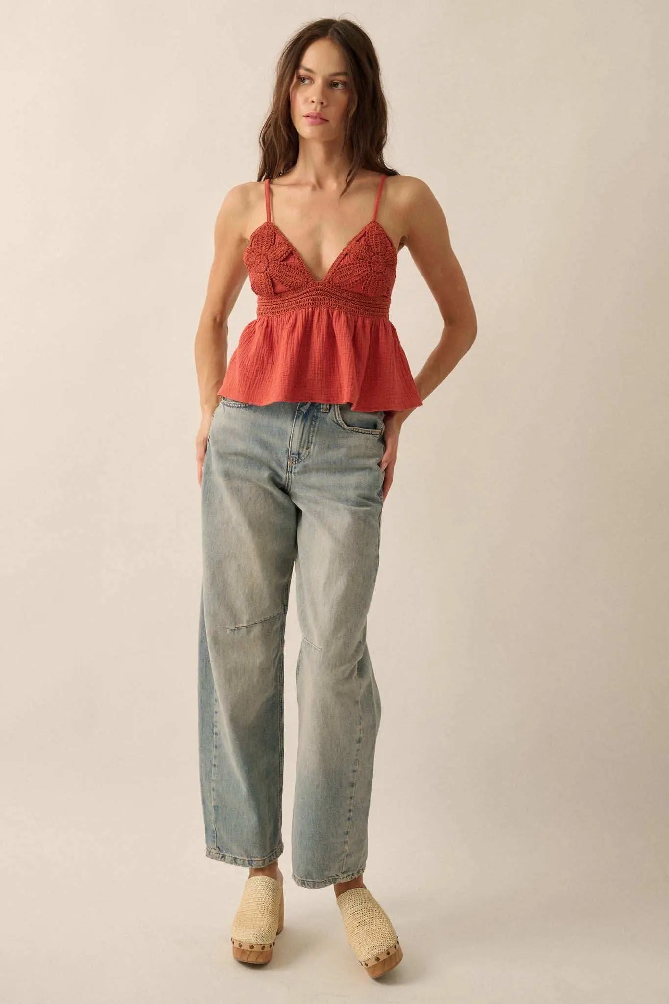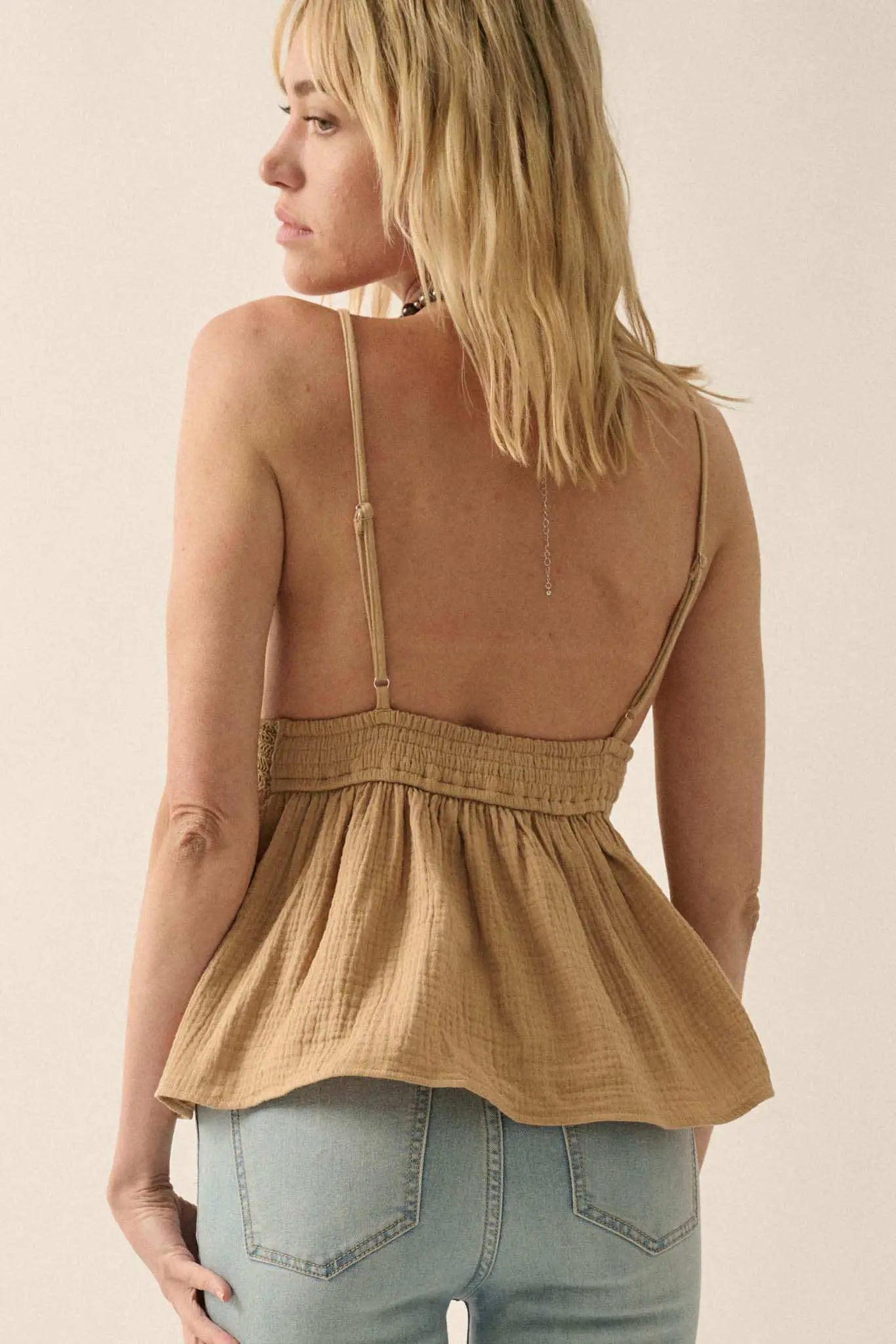 Lacy Days Crochet-Trim Crinkle Cotton Babydoll Top