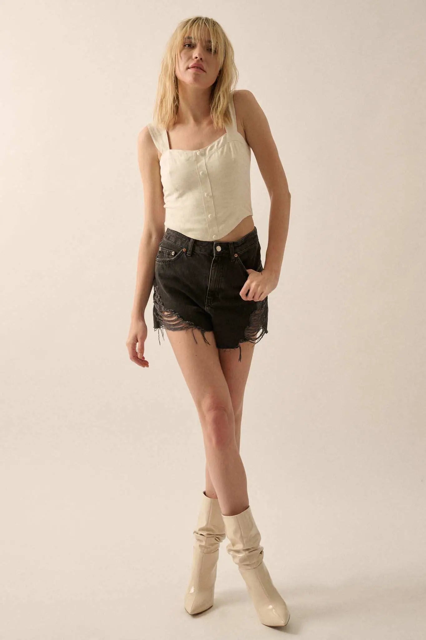 Force of Nature Linen-Blend Corset Tank Top - ShopPromesa