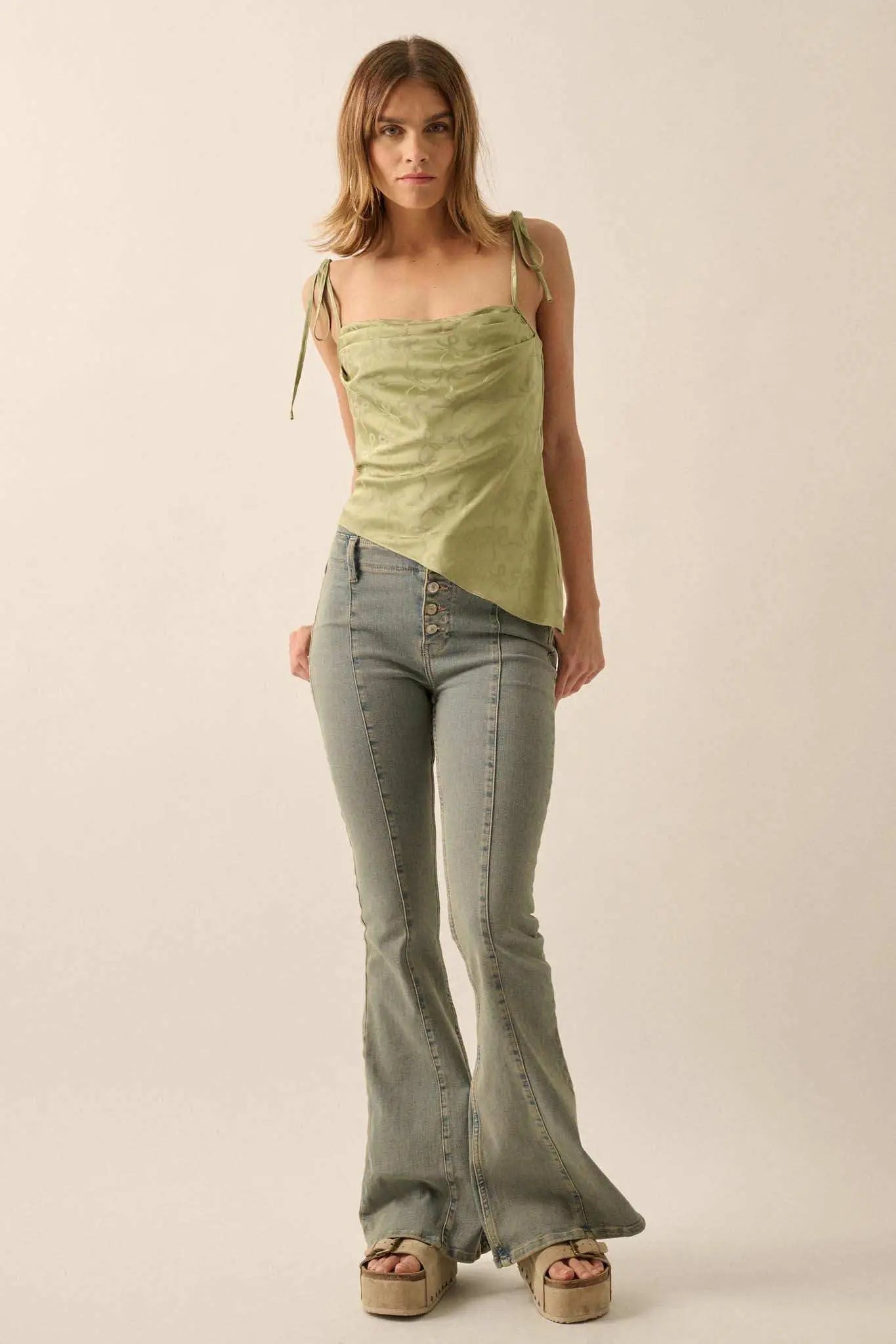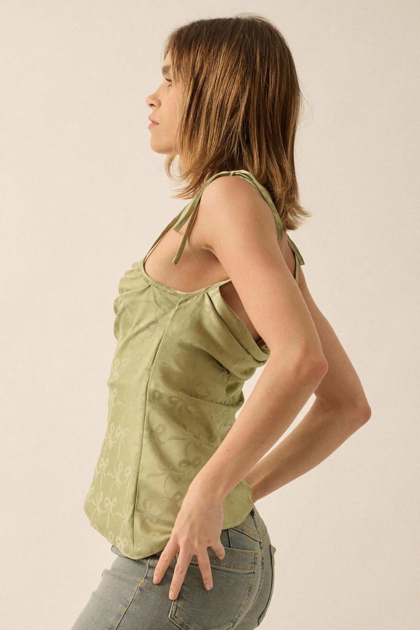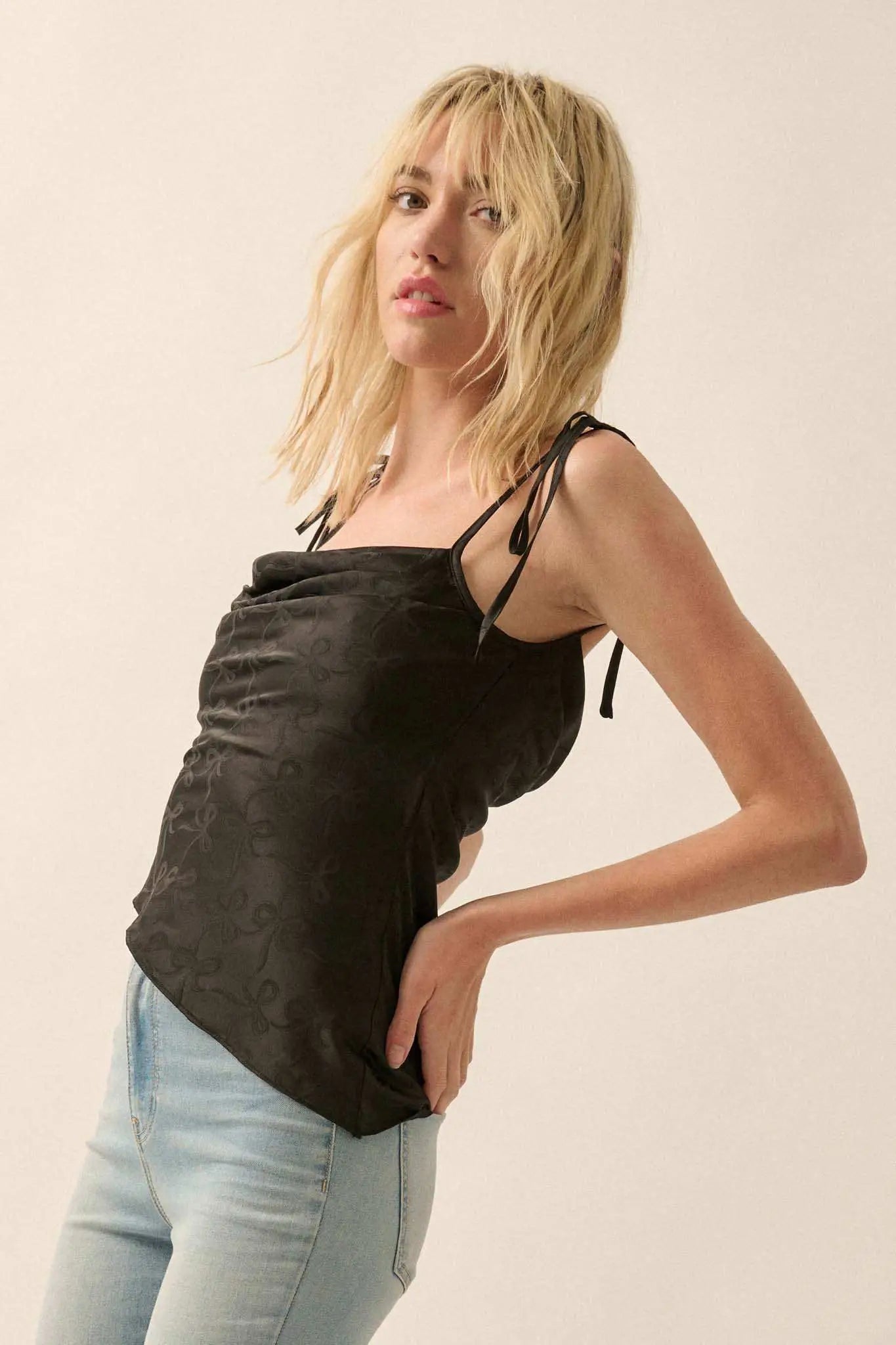 Bow Down Satin Jacquard Asymmetrical Cami Top - ShopPromesa