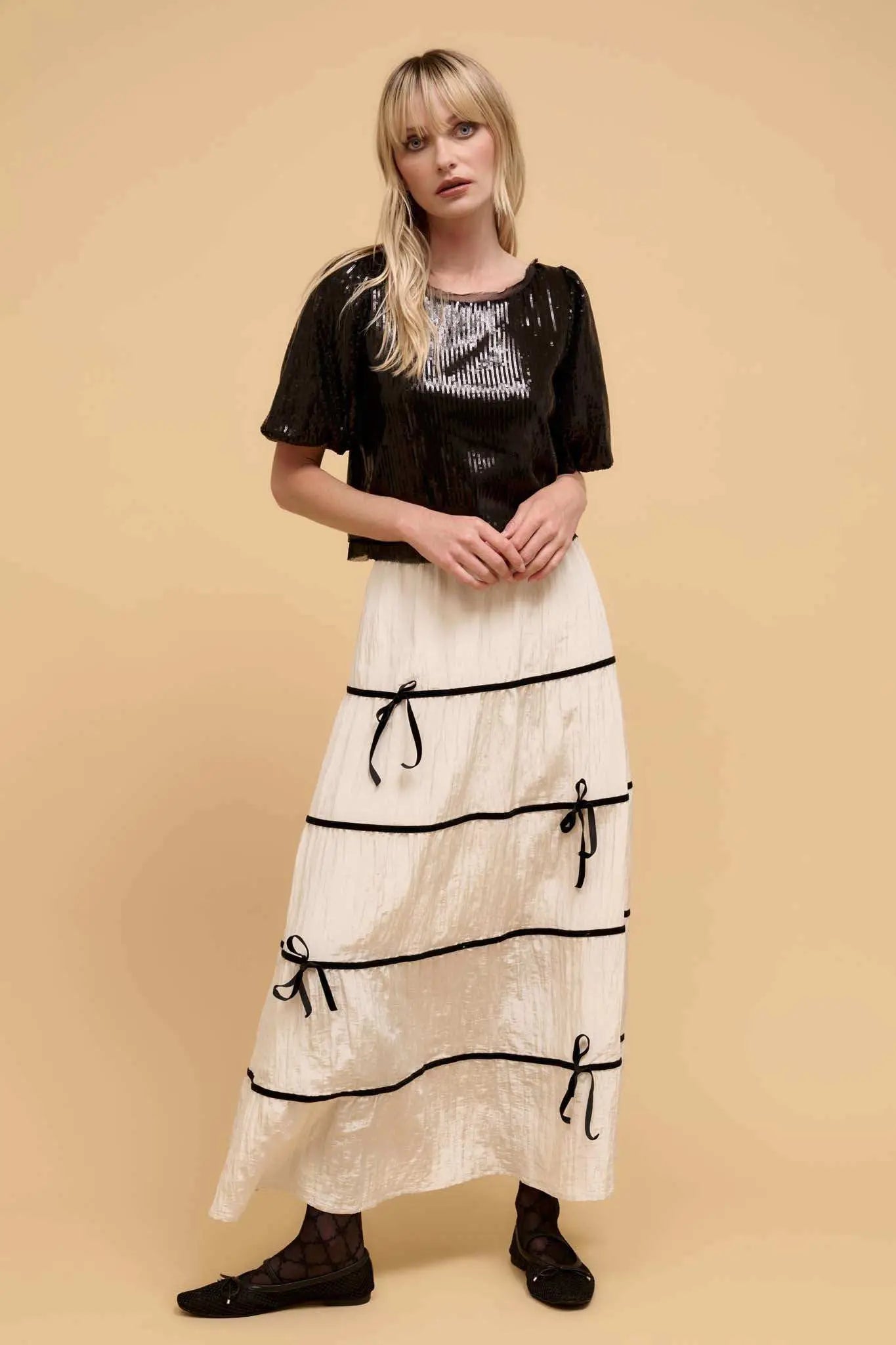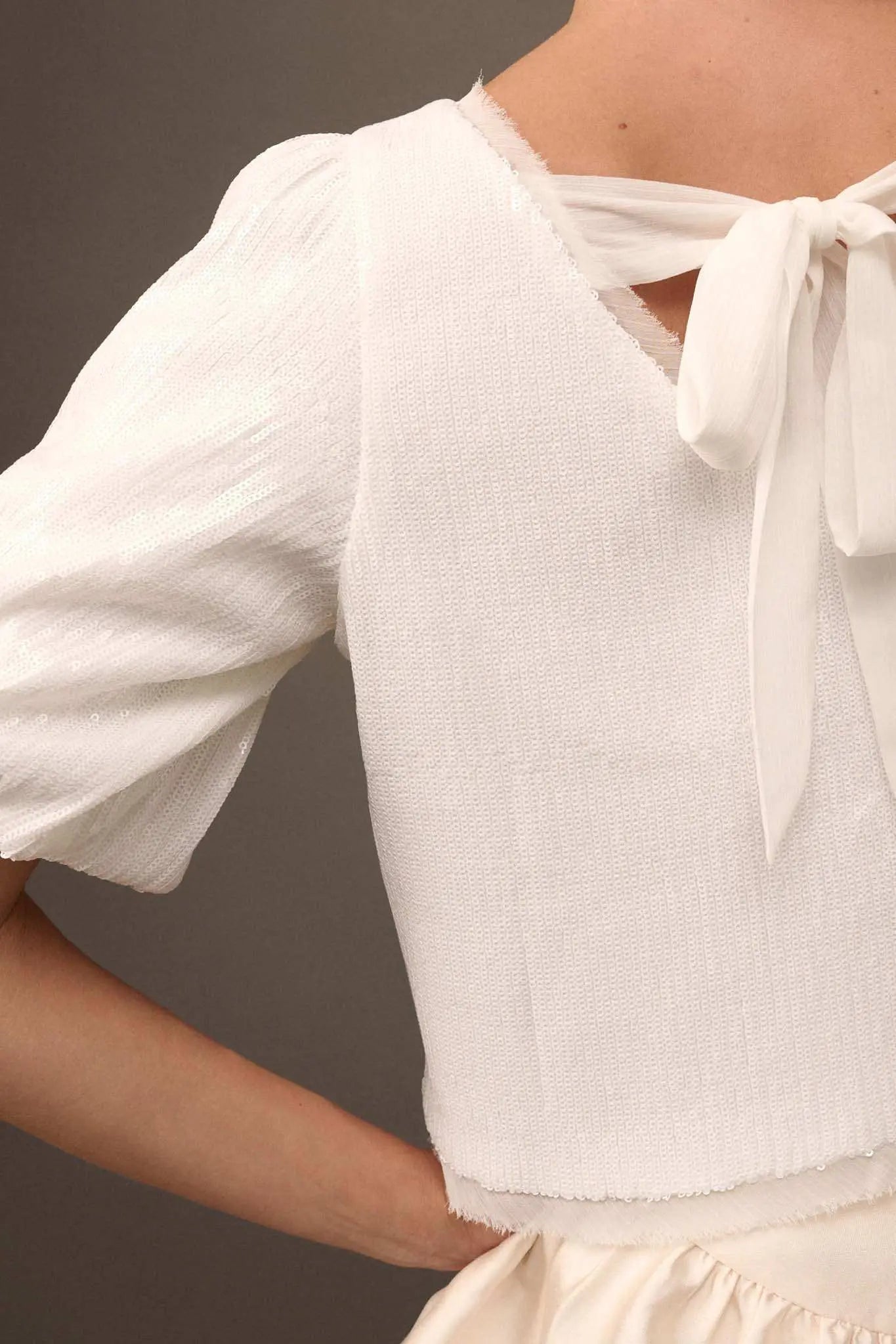 • Solid sequin top.