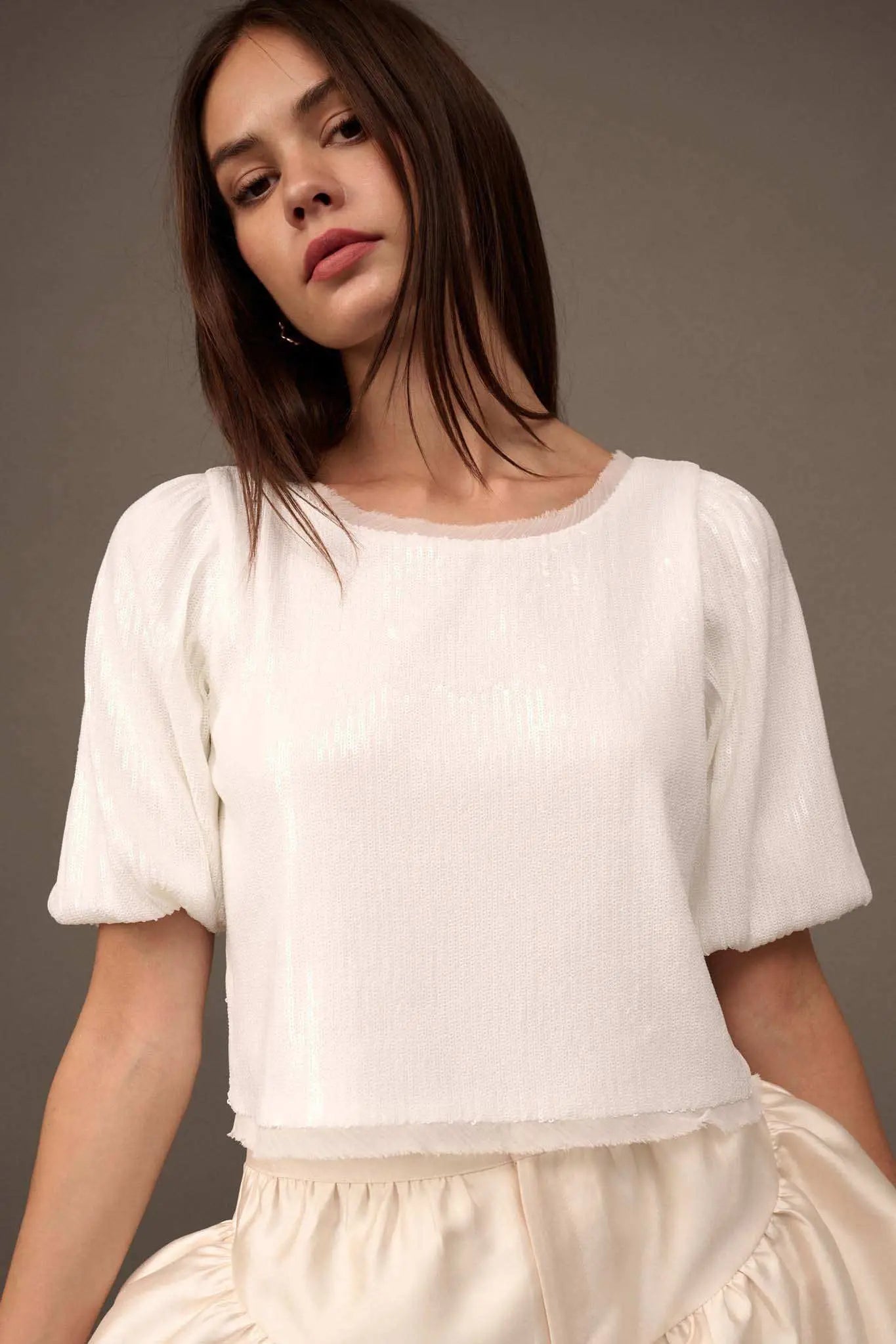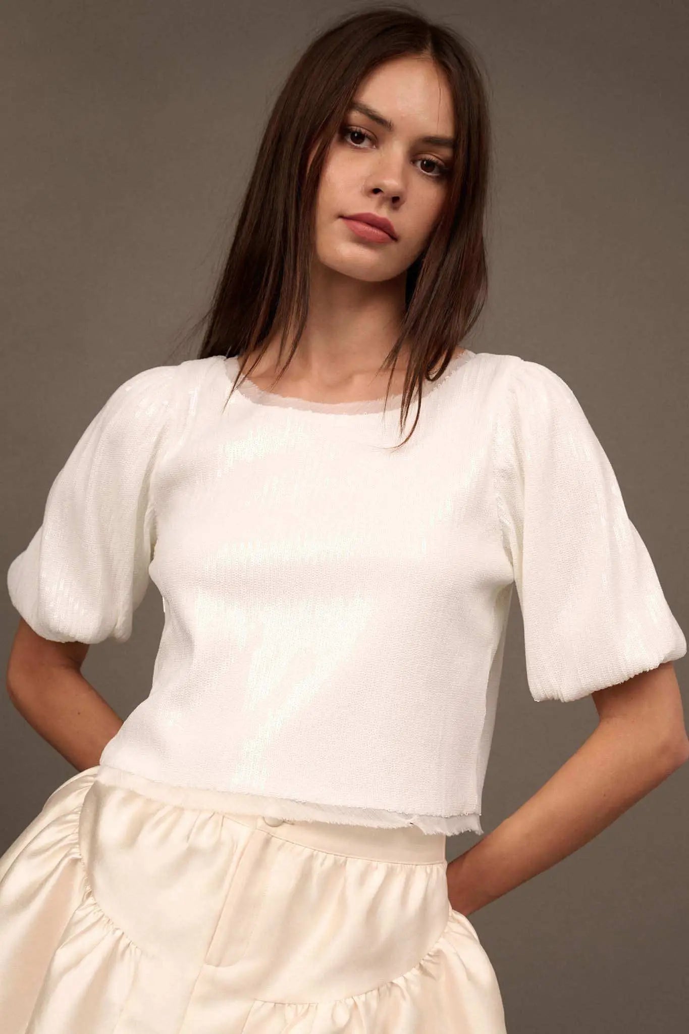 Best of My Love Sequin Puff-Sleeve Top