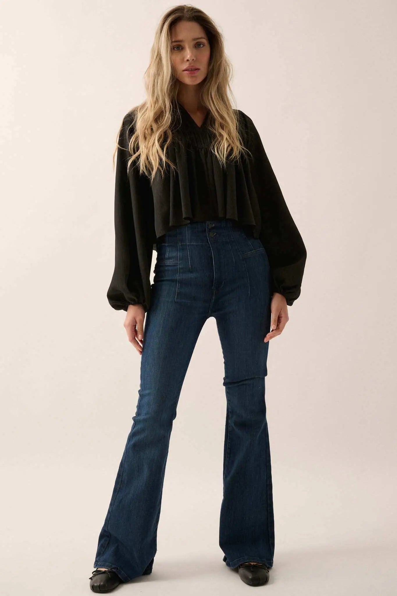 Wonderful Life Pleated Crepe Babydoll Peasant Top - ShopPromesa
