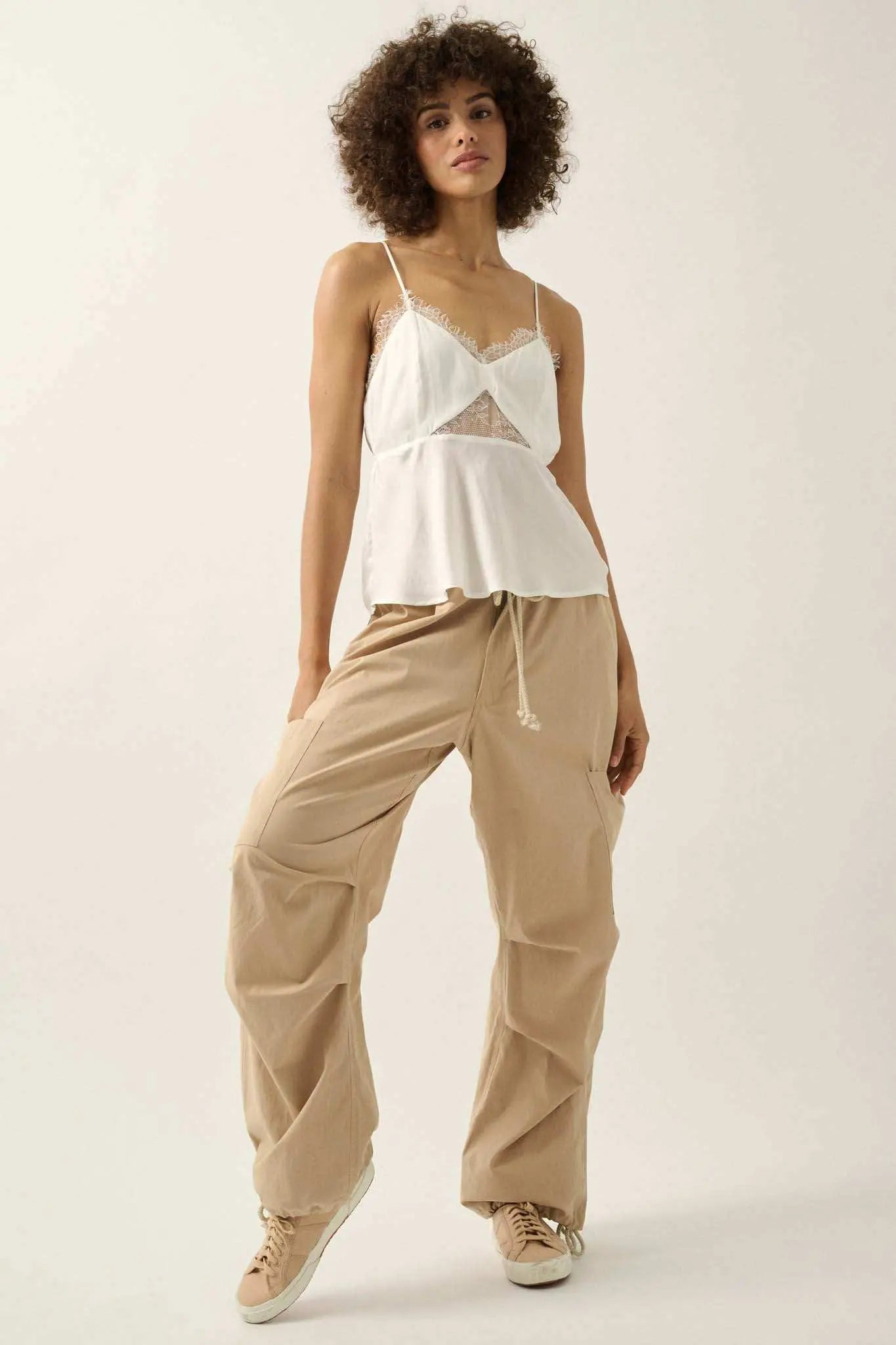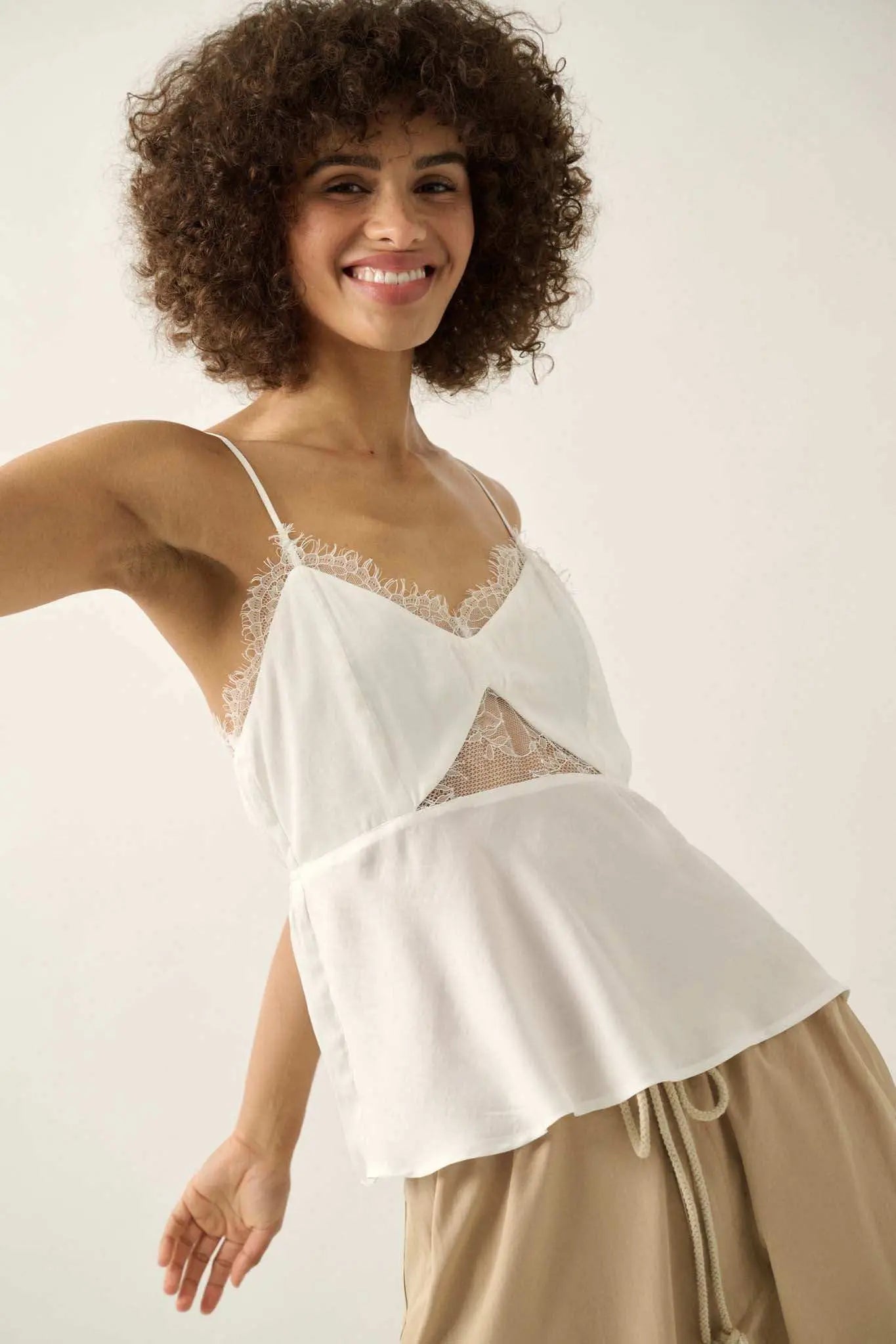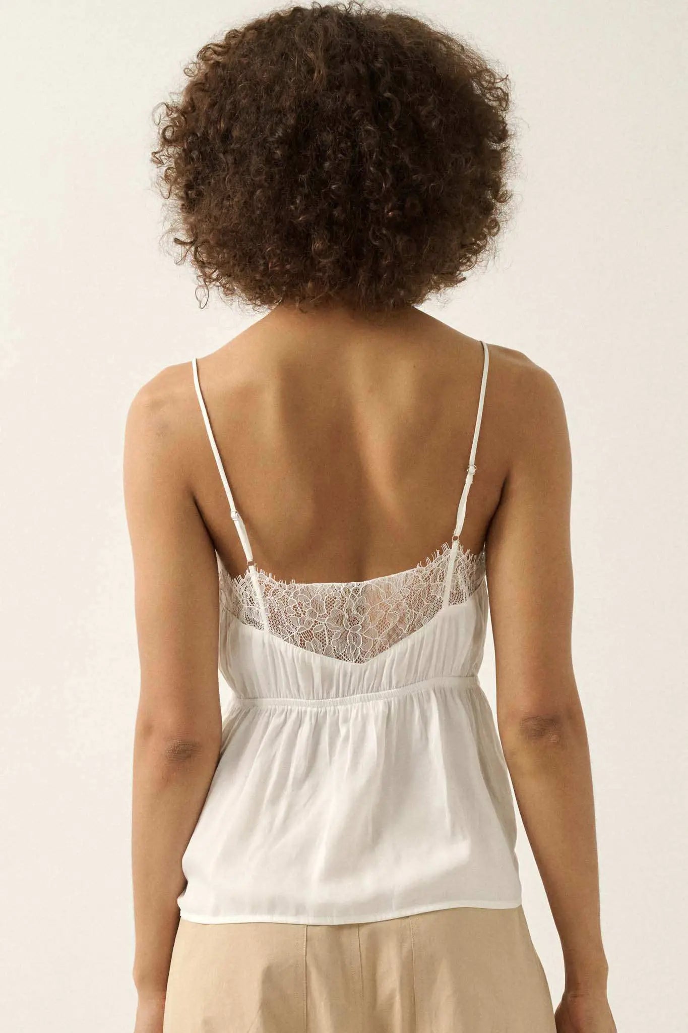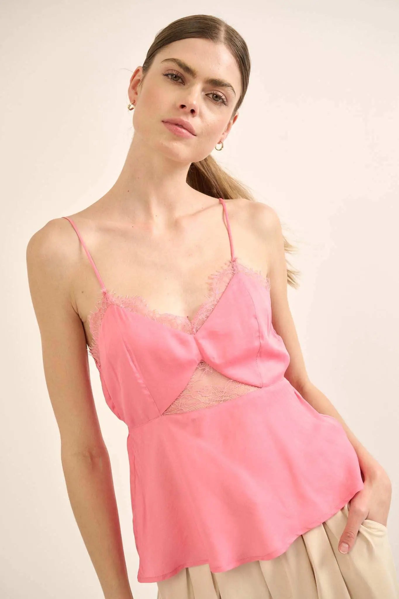 Feeling Pretty Satin and Lace Keyhole Cami Top