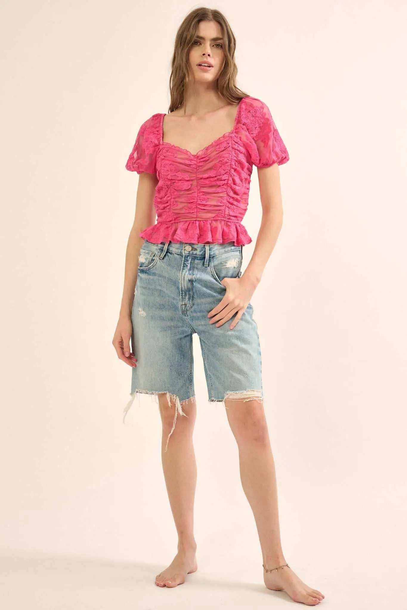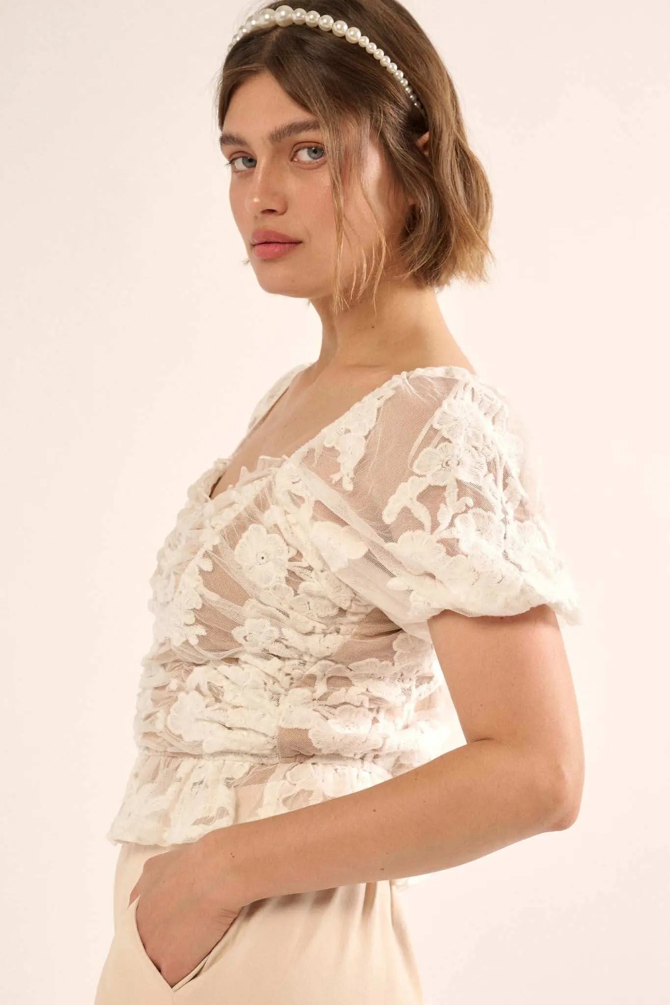 Heavenly Heart Embroidered Lace Puff-Sleeve Top - ShopPromesa