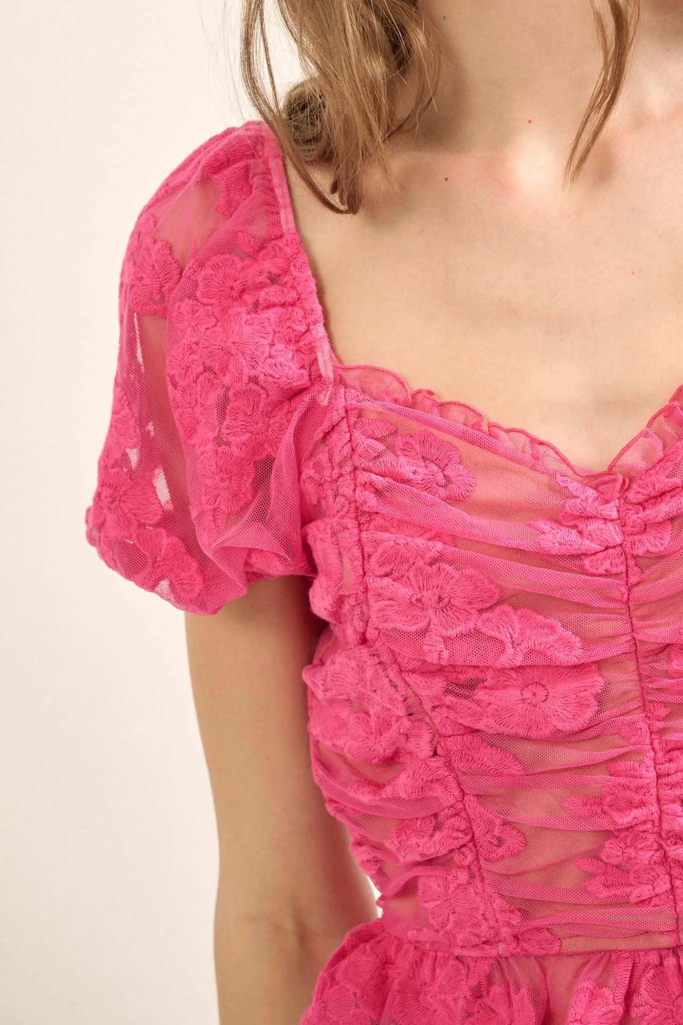 Heavenly Heart Embroidered Lace Puff-Sleeve Top