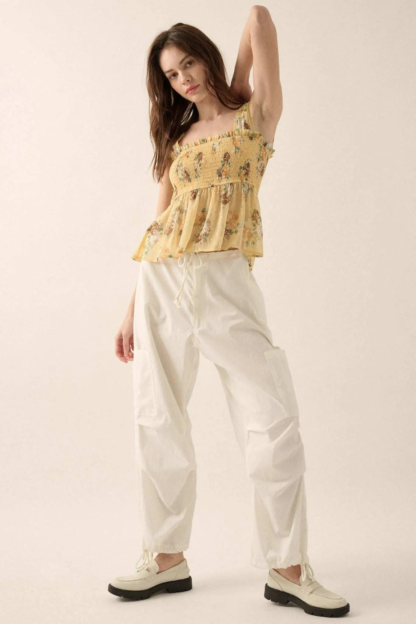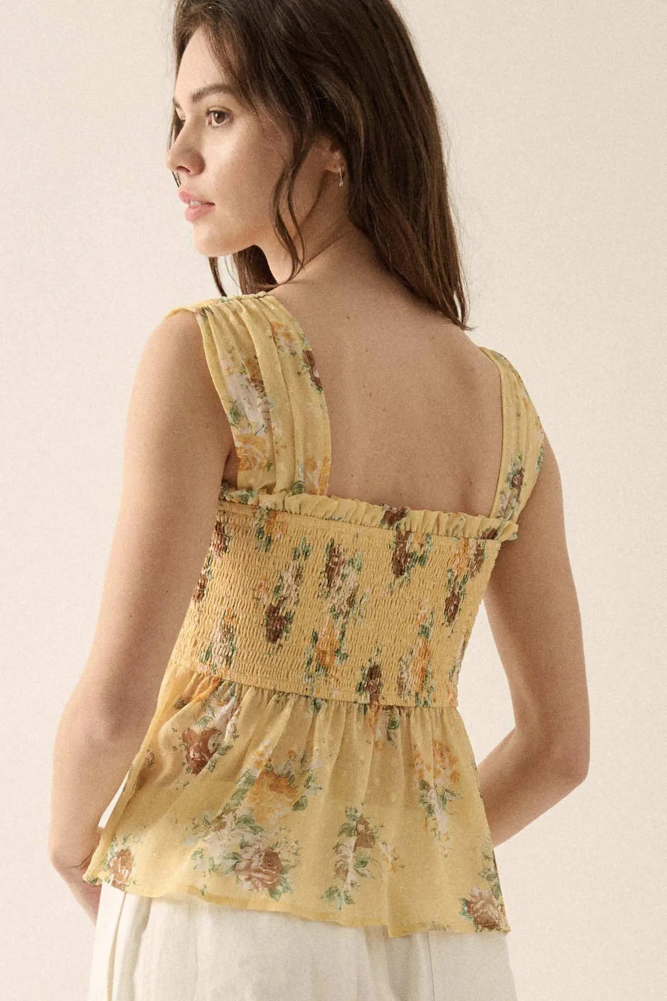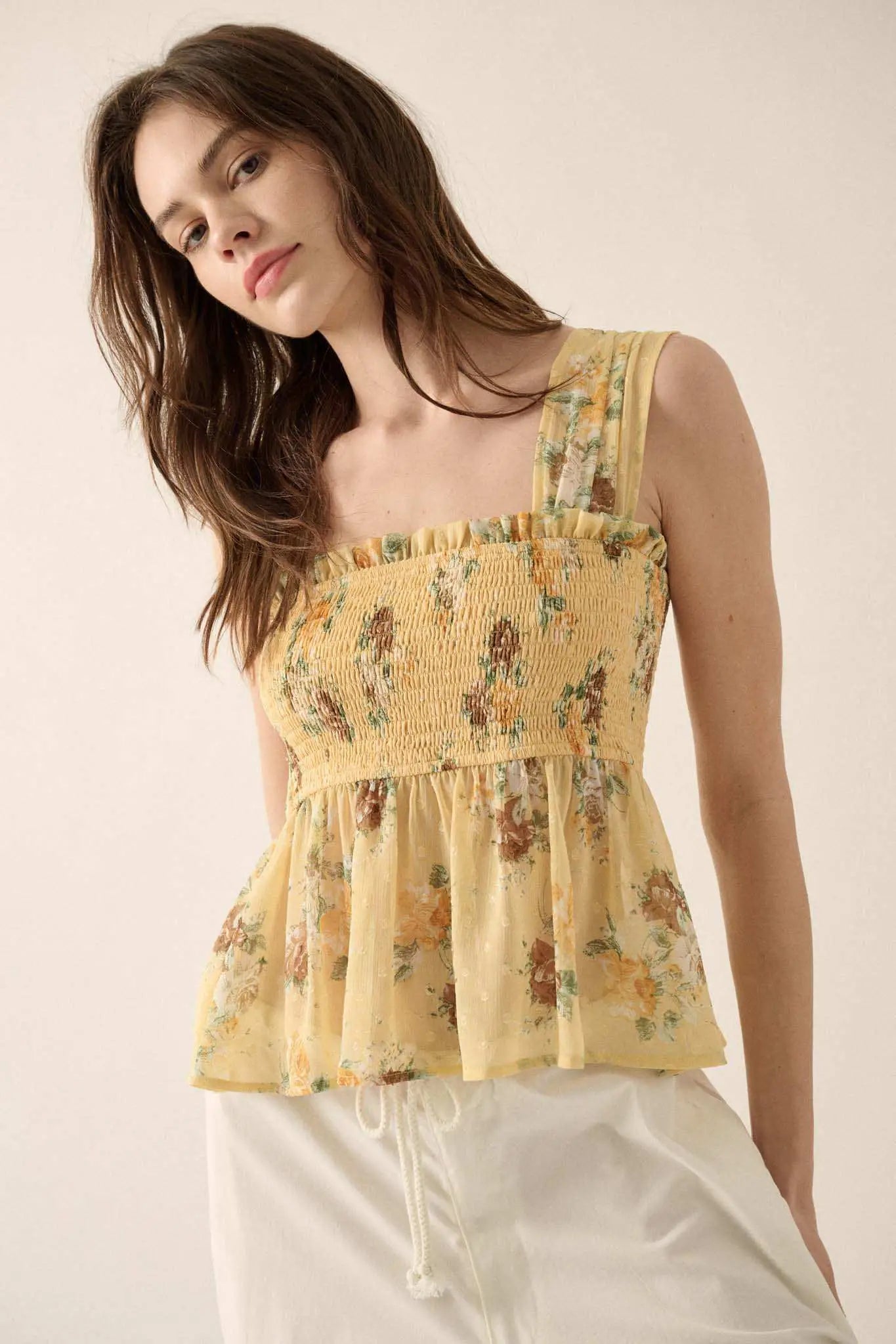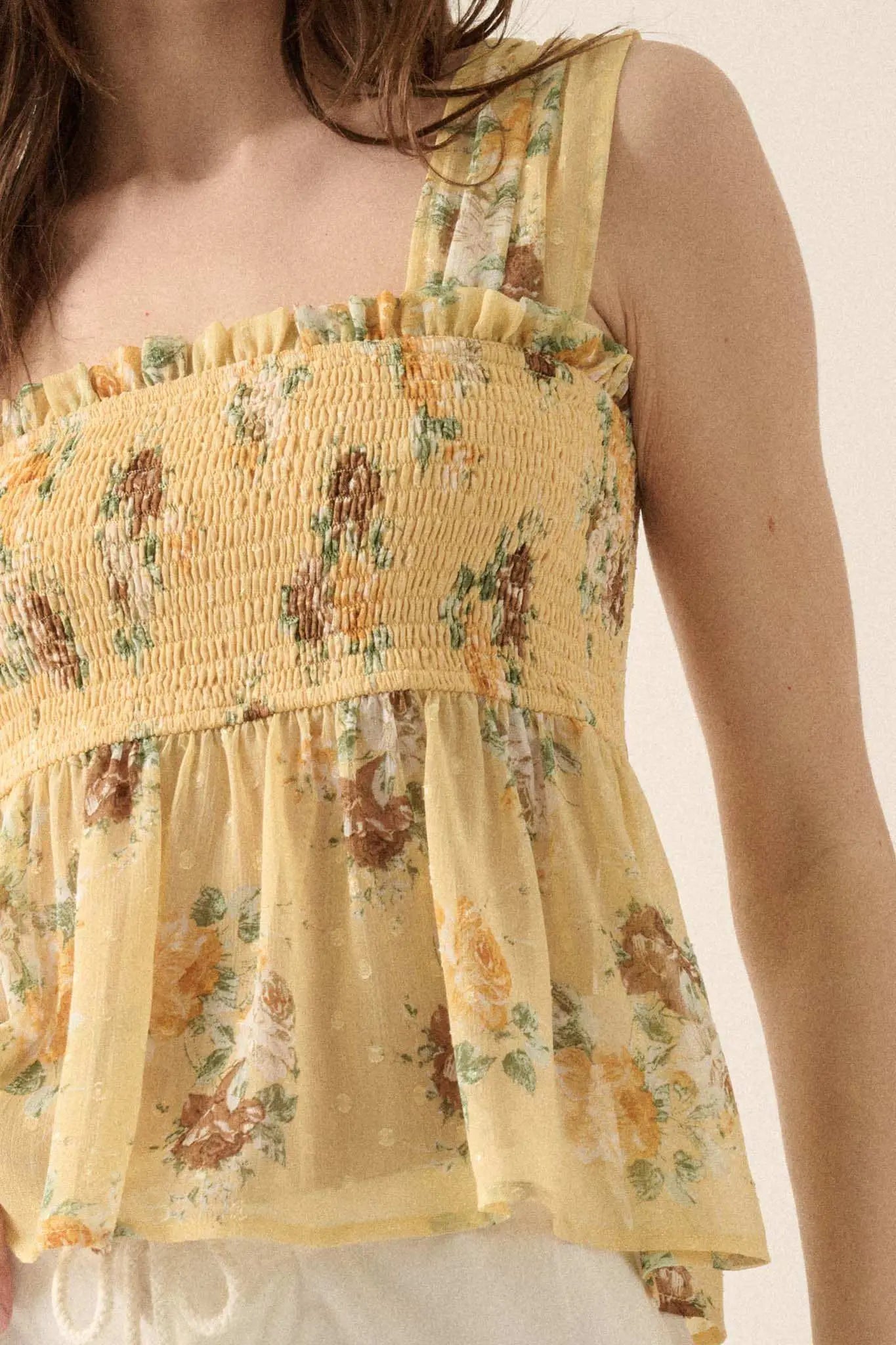 Sunlit Blooms Smocked Floral Chiffon Babydoll Top