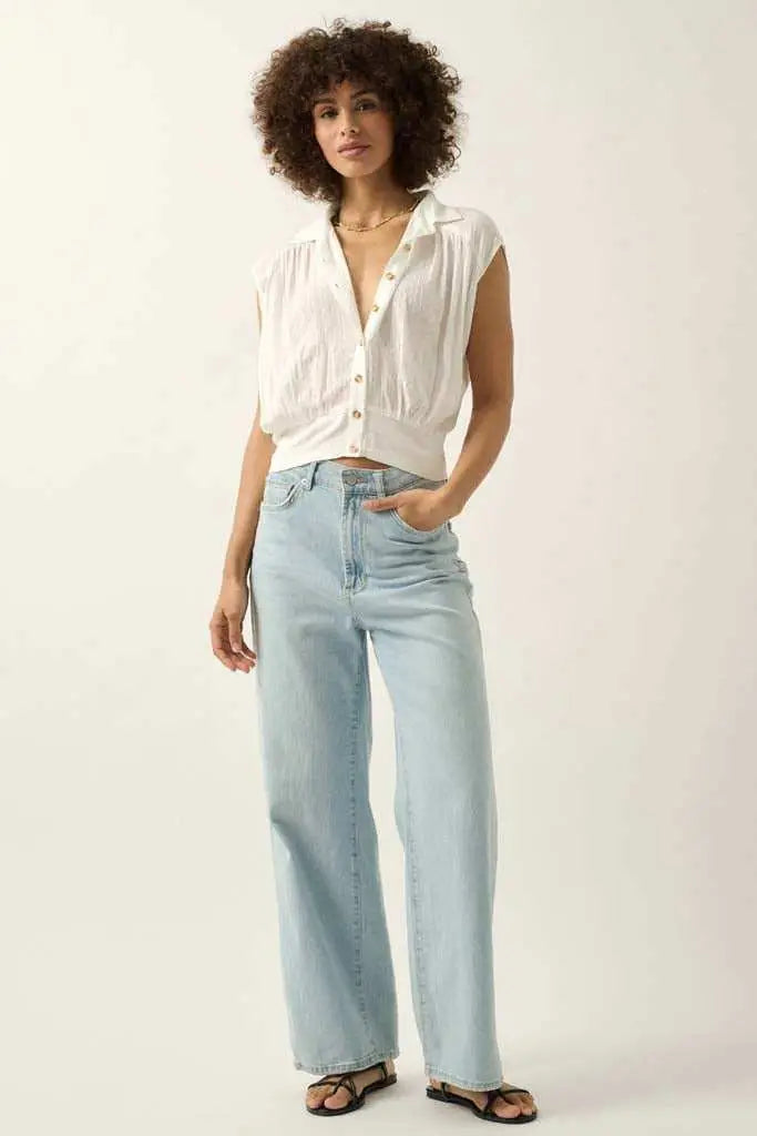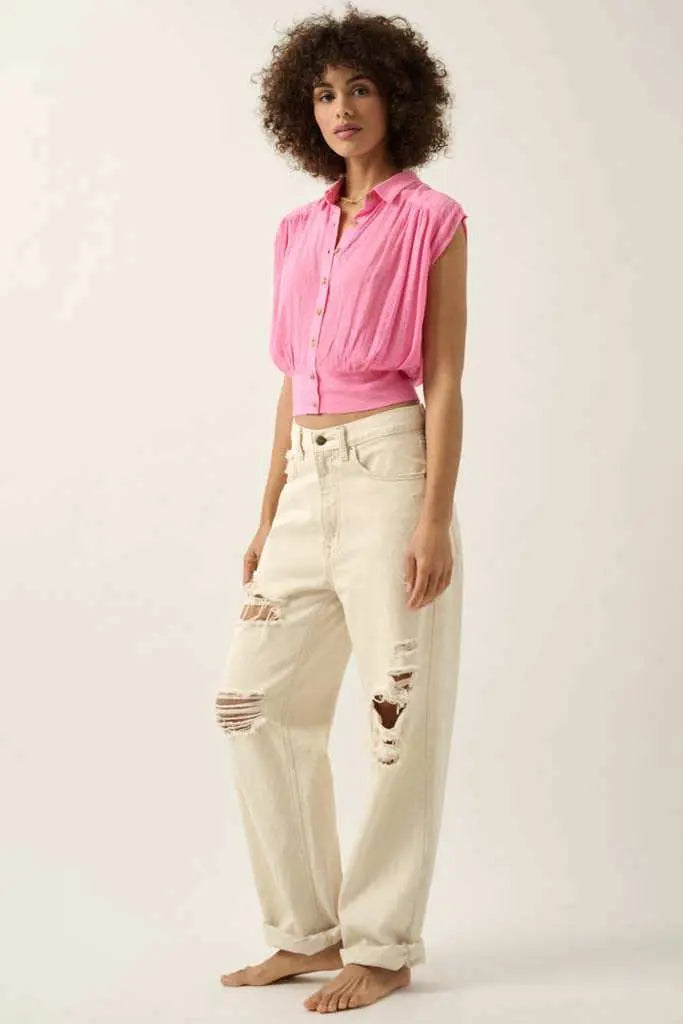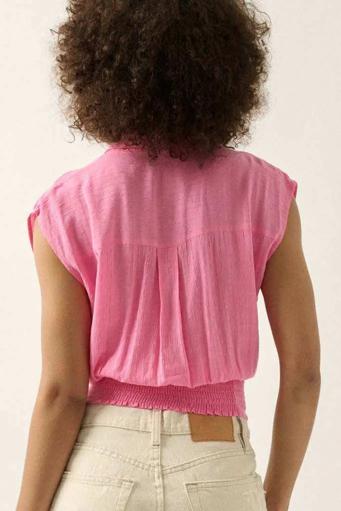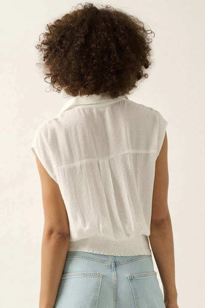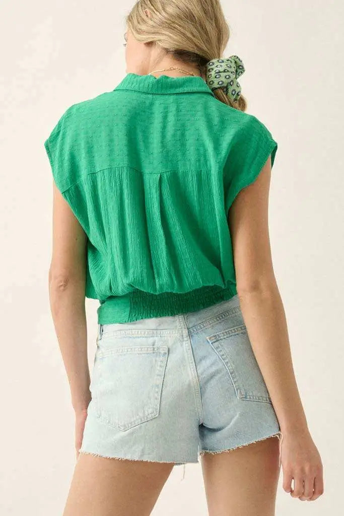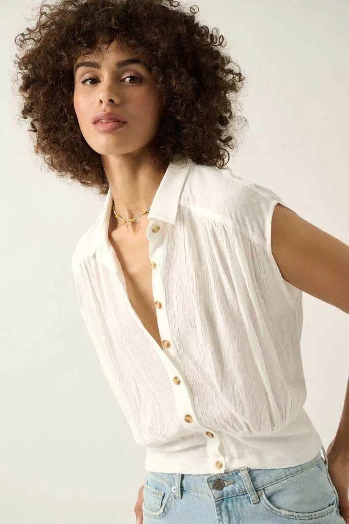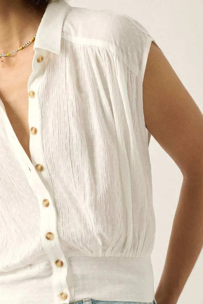 Make My Day Jacquard Sleeveless Button-Up Top