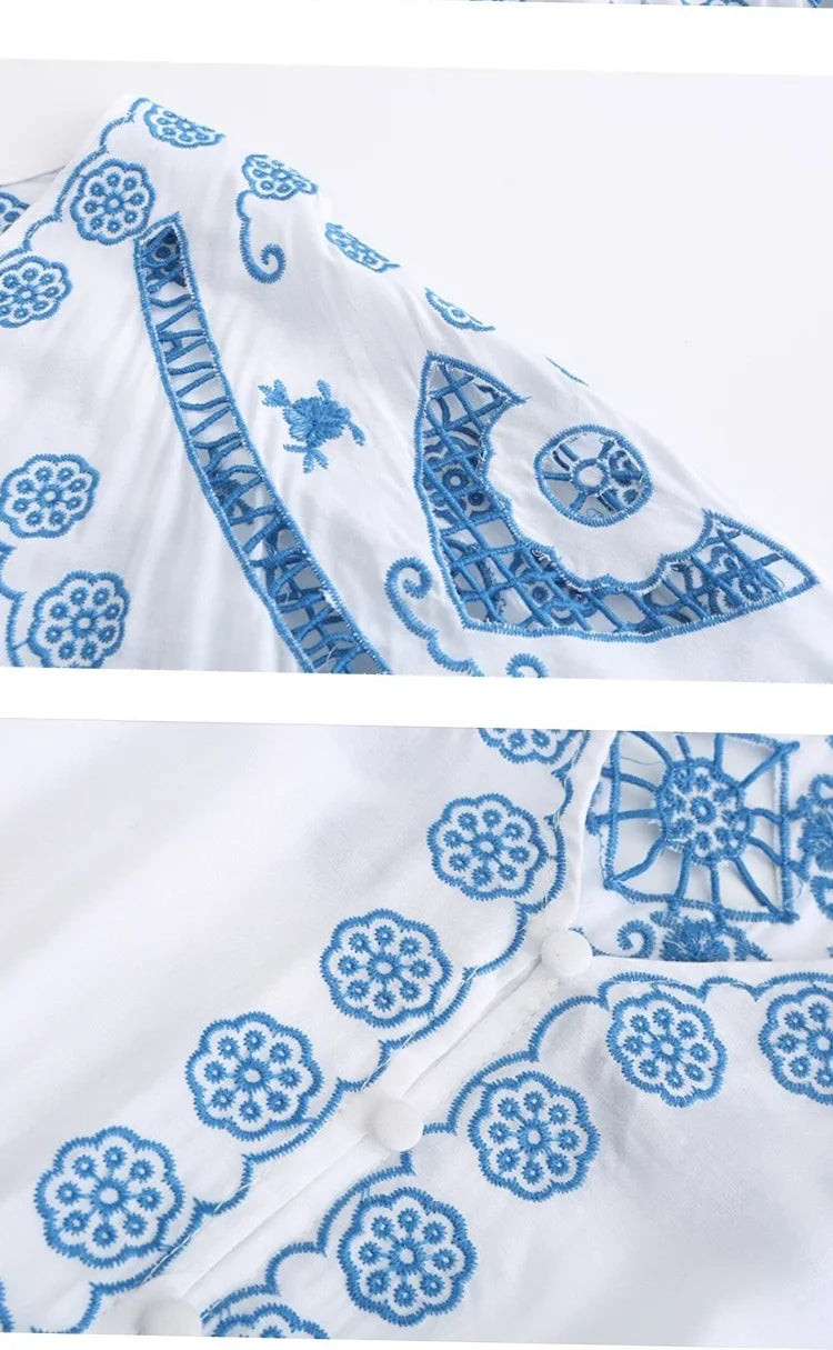 FashionSierra-Hollow Floral Embroidery Long Sleeve Strap Maxi White Vintage V Neck Beach Ladies Boho Dress