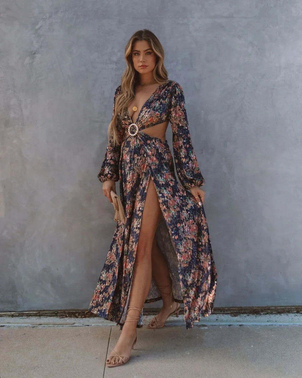 FashionSierra-Long Sleeve Loose Women Vintage Floral Print Summer 2025 Beach Wear High Waist Backless Vestidos Boho Dress