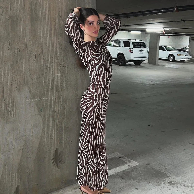FashionSierra - 2025 See Through Long Sleeves O-Neck Transparent Boho Dress