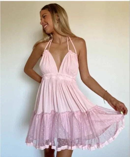 FashionSierra - 2025 Summer Deep V Sexy Beach Holiday Casual Boho Dress