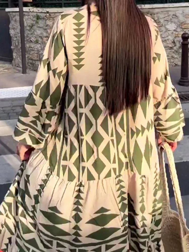 FashionSierra - 2025 Vintage Print Sleeve Pleated Boho Dress