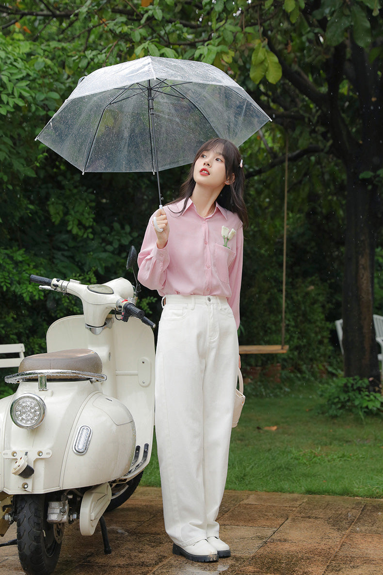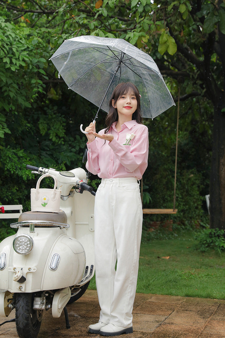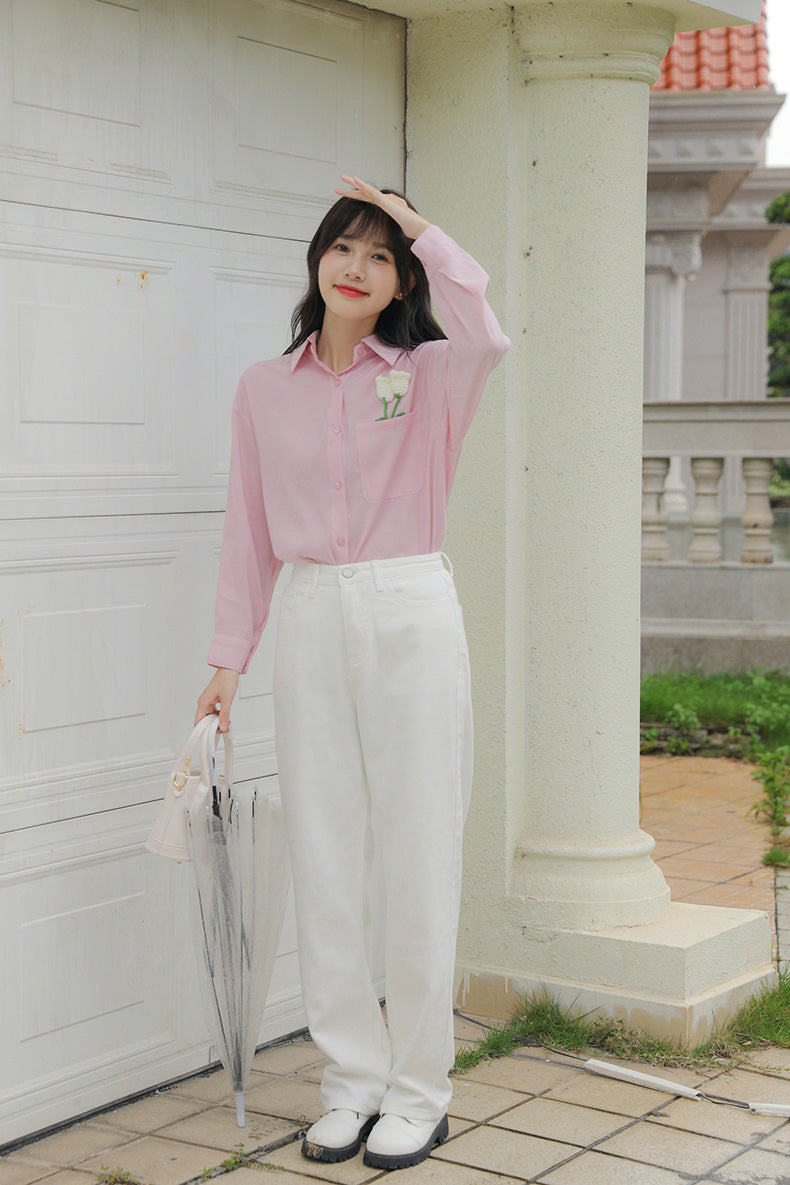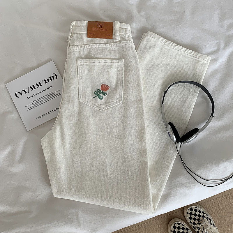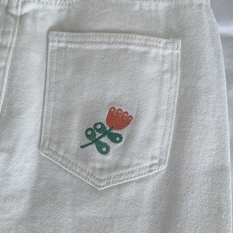 Tulip Pocket Embroidered Jeans (White)