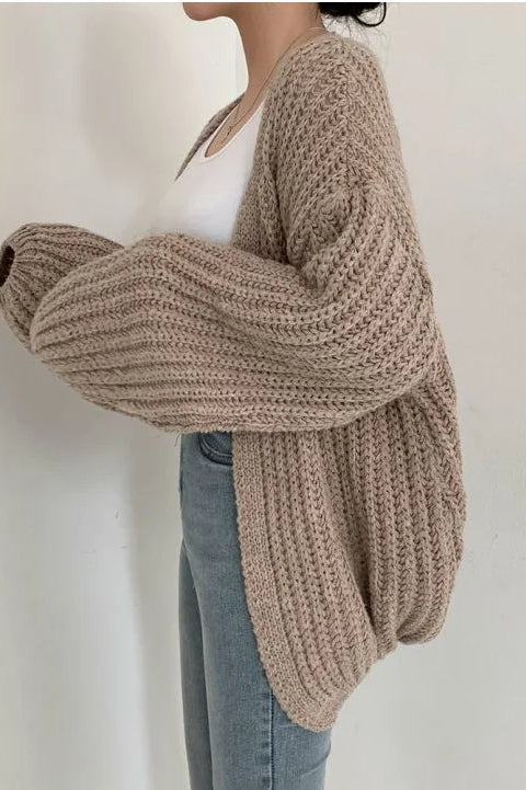 Chic Oversized Lantern Sleeve Cardigan