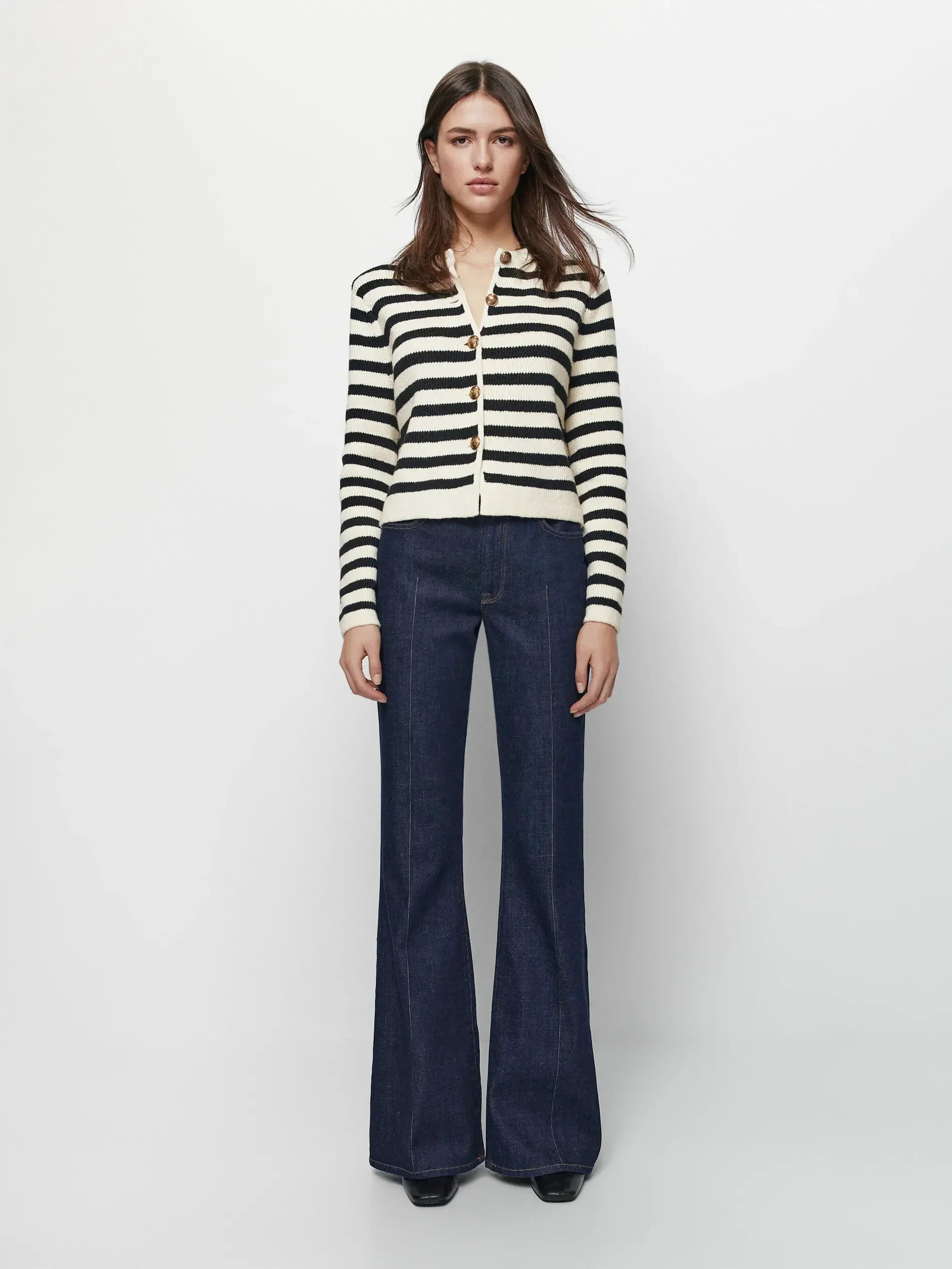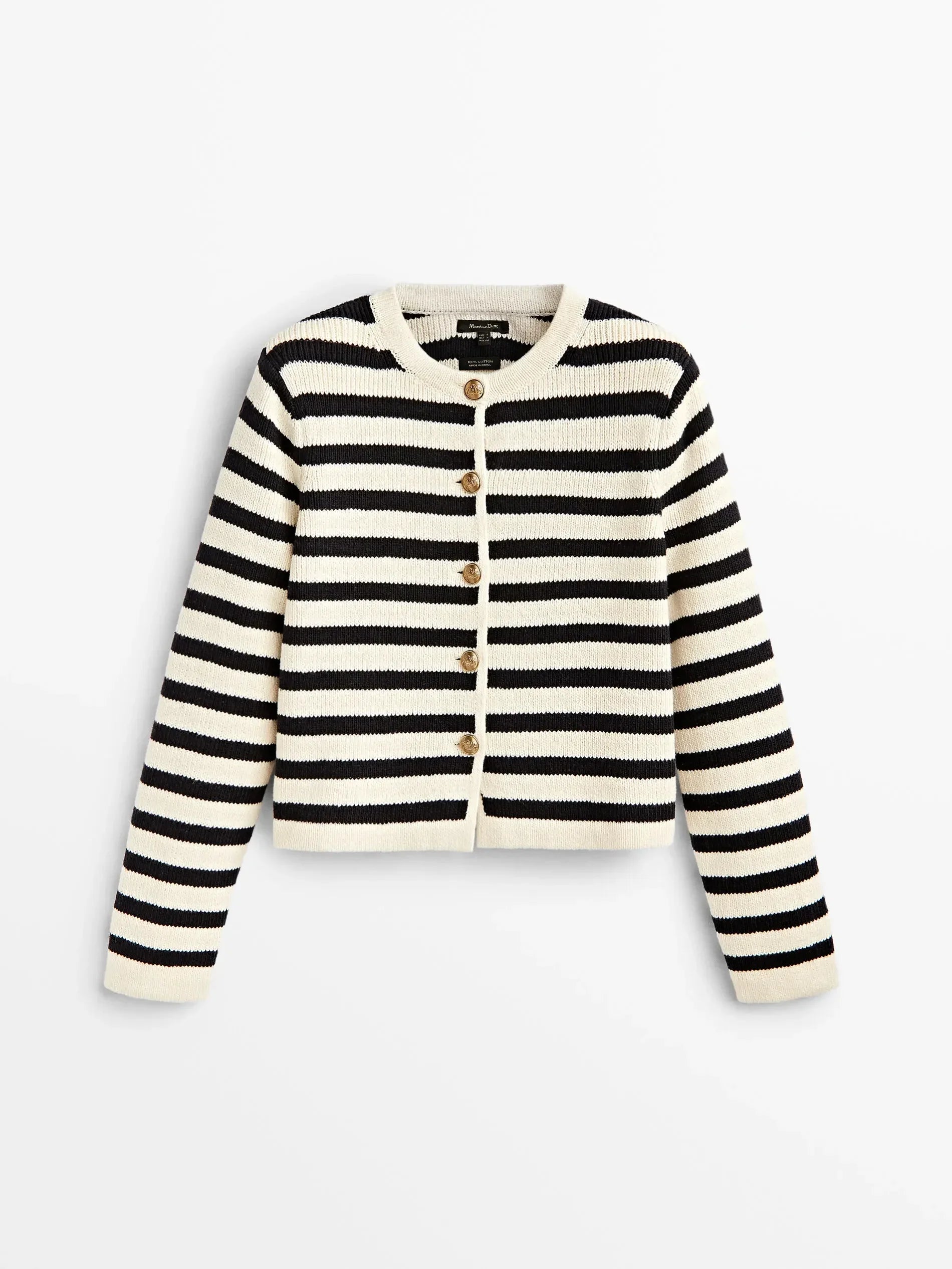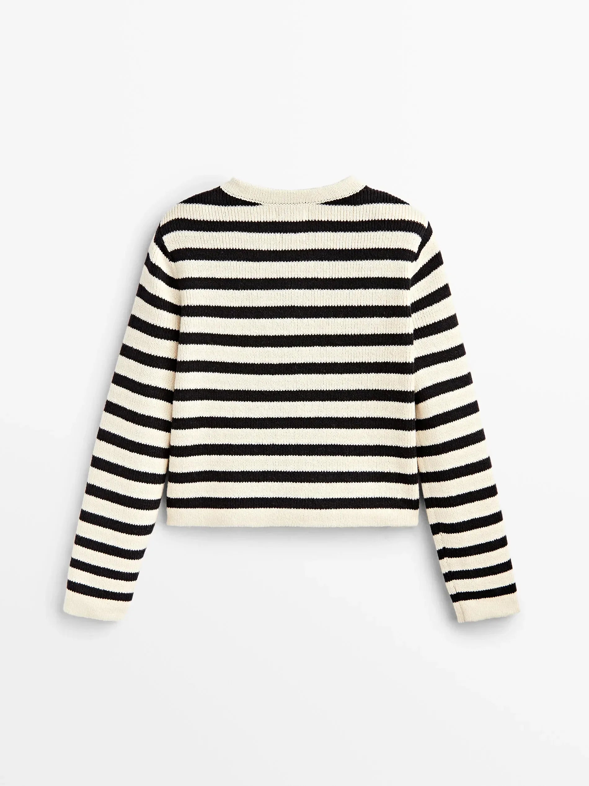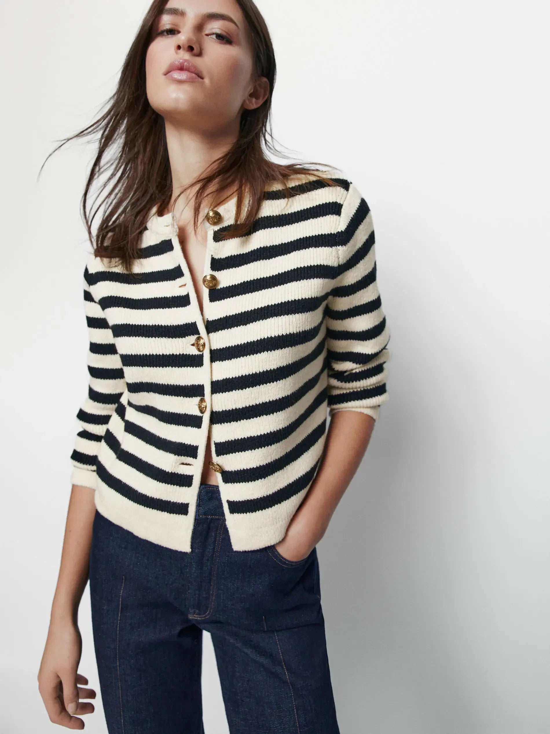 Ethereal Buckle Casual Knit Stripe Cardigan