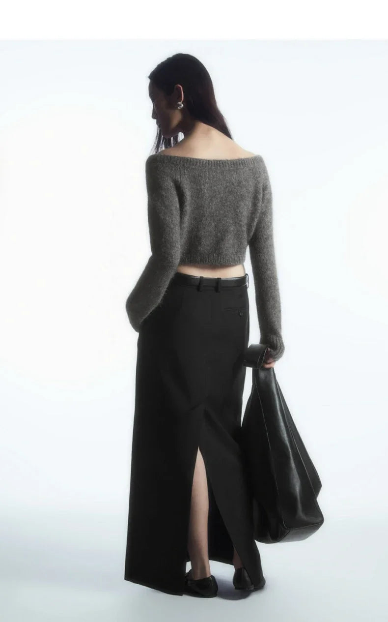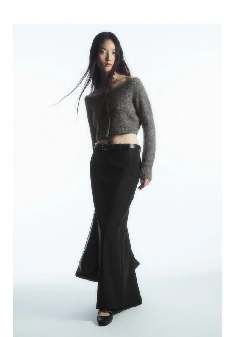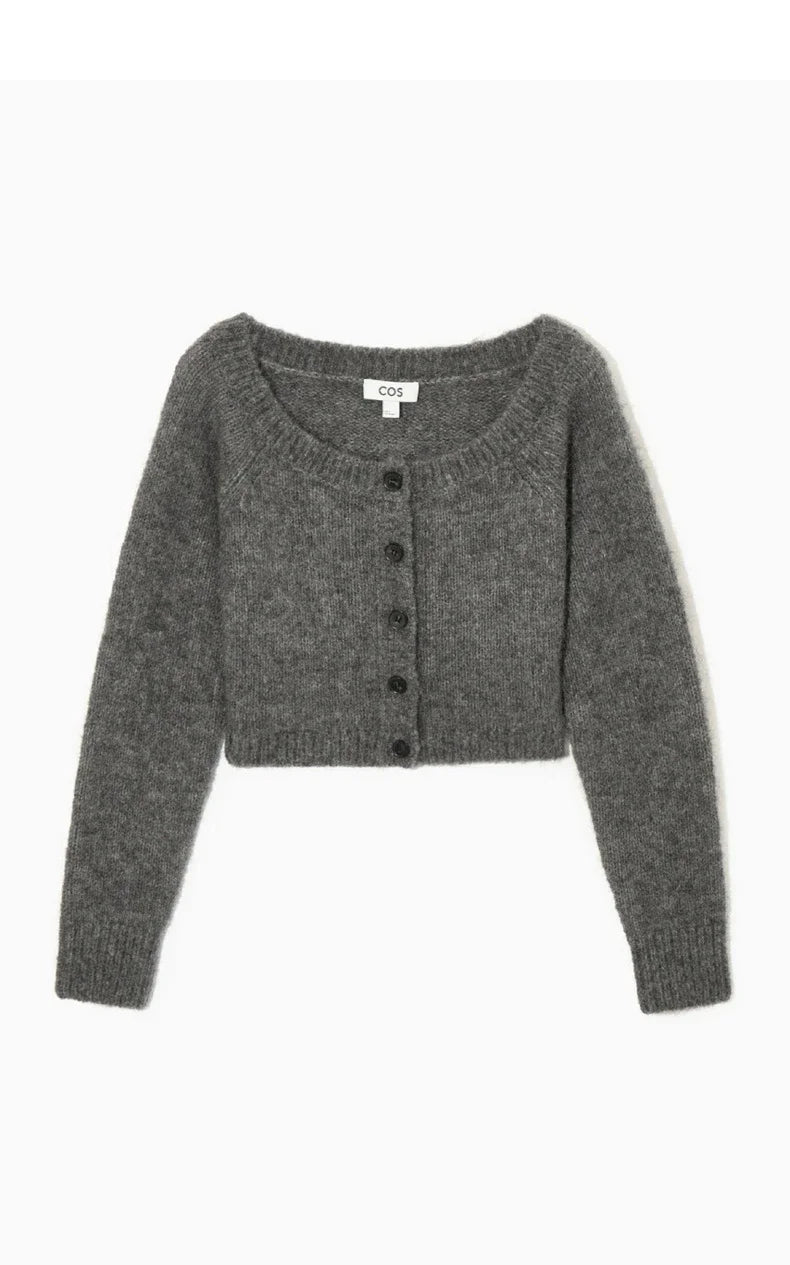 Ethereal Wide Neck Blend Standard Cut Wool Cardigan Cardigan