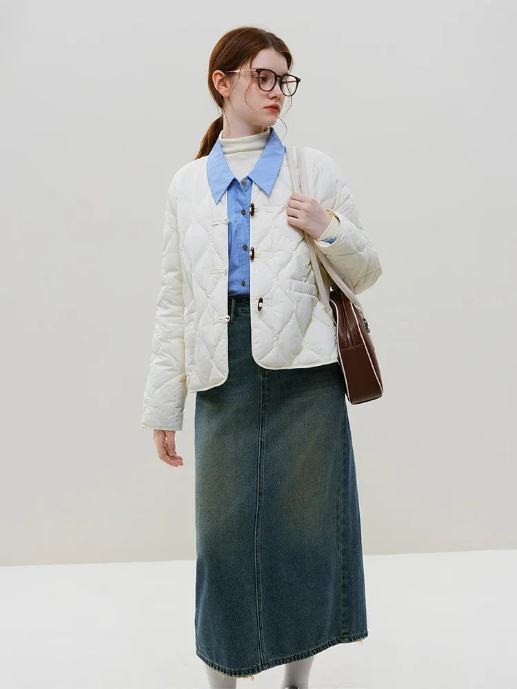 Filling Capacity Buckle Light White Duck Down Thin Top