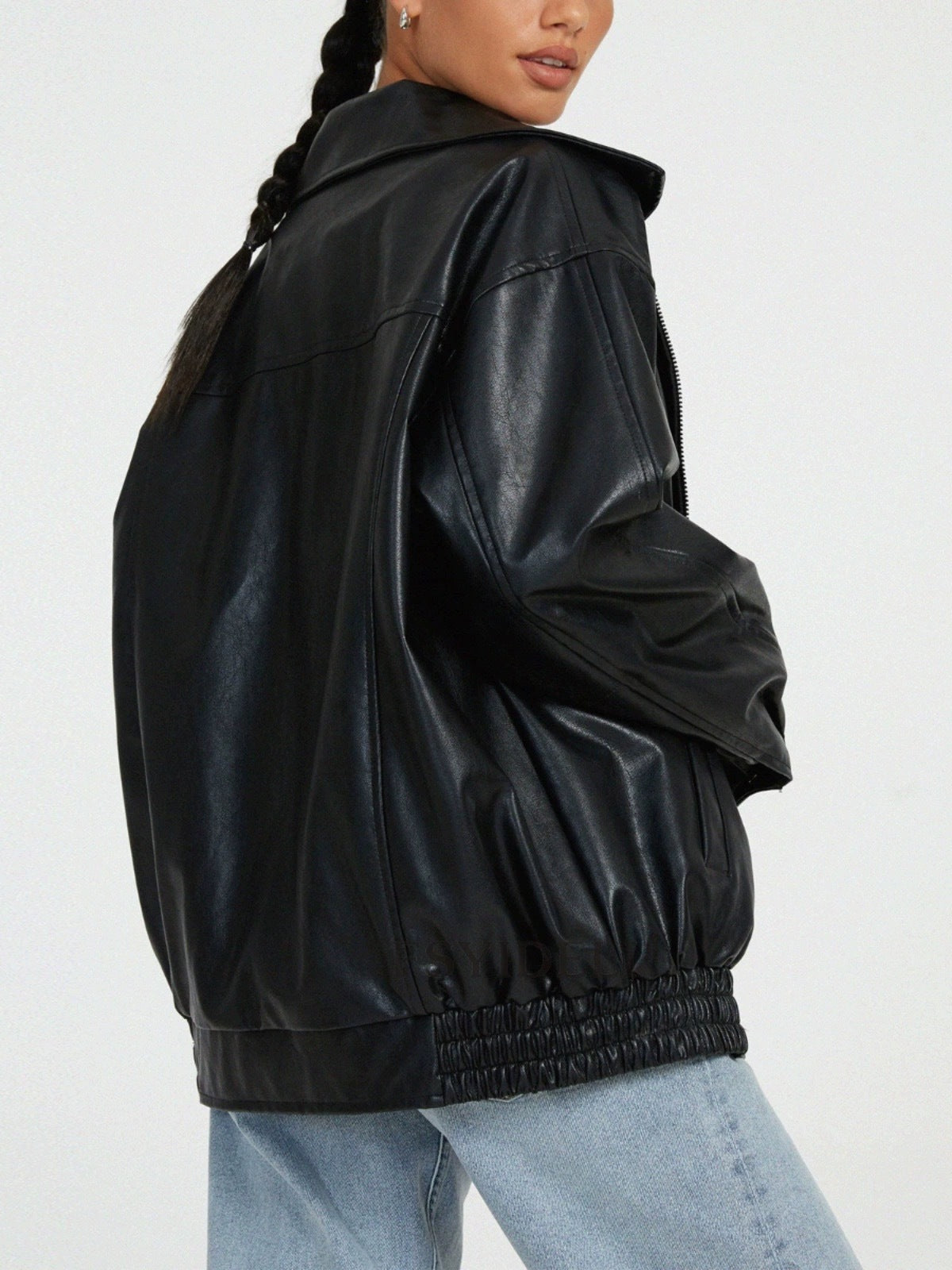Women Leather Casual Motorcycle Fashion Long Sleeve Lapel Zipper Vintage Streetwear Cropped Jacket Coat