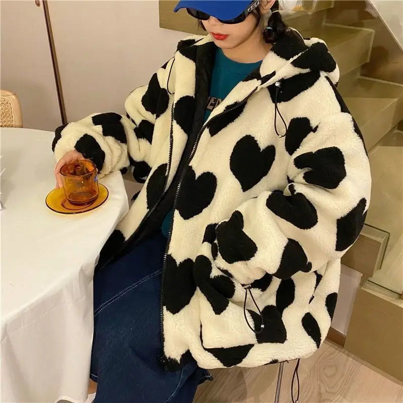 Women Winter Size Long Sleeve Hooded Thick Warm Couple Streetwear Coat