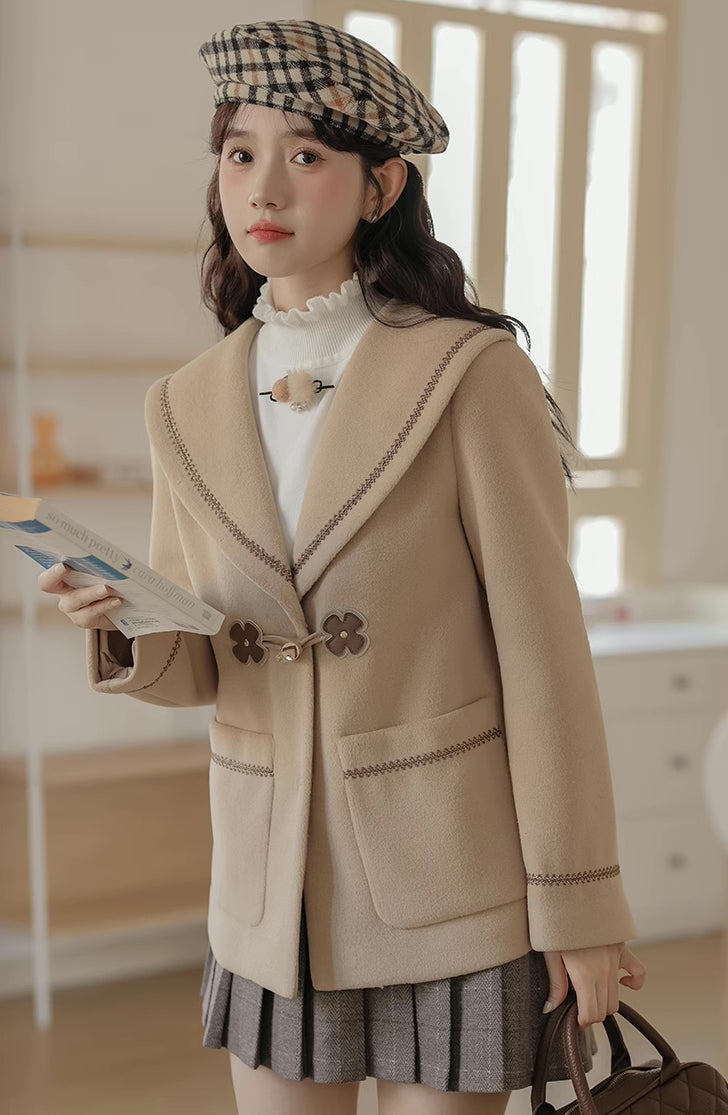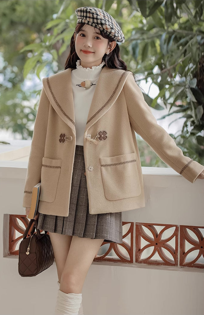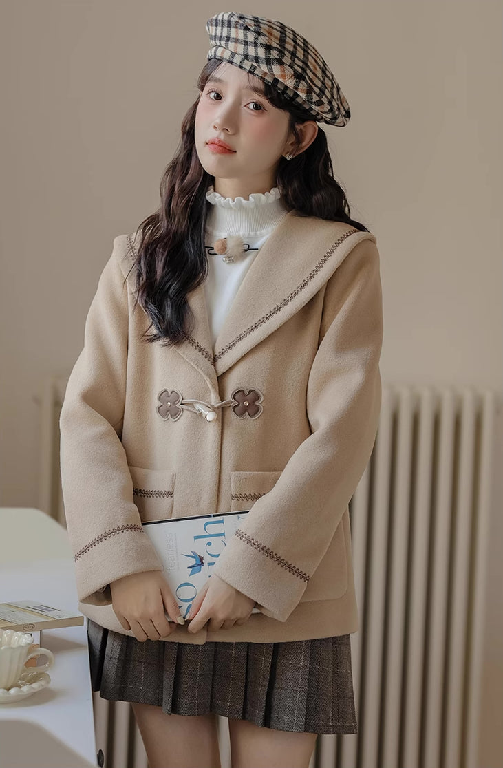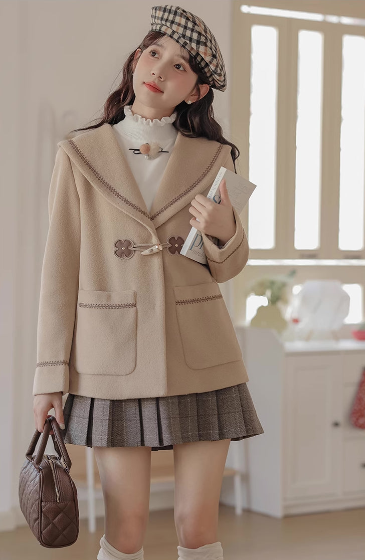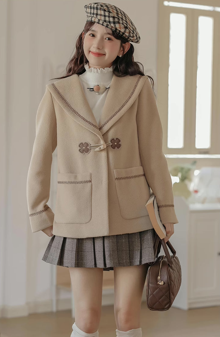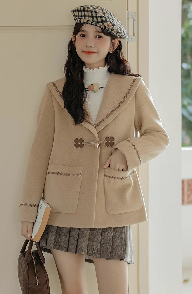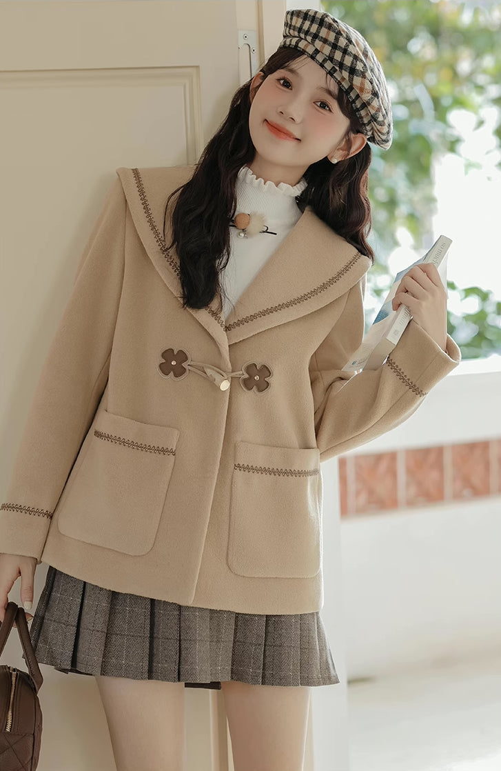 Flower Sailor Short Duffle Coat (Khaki)