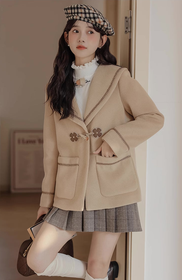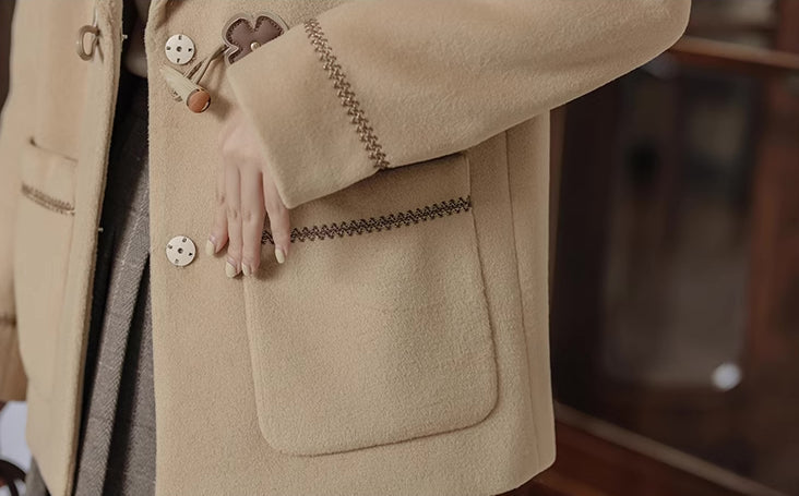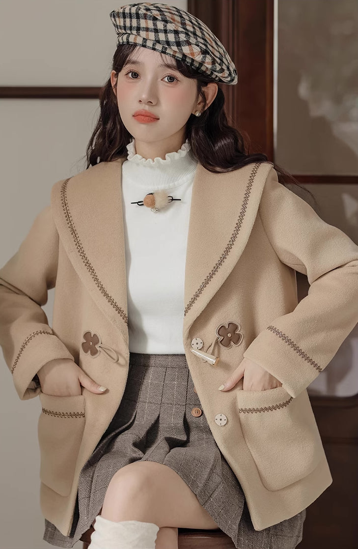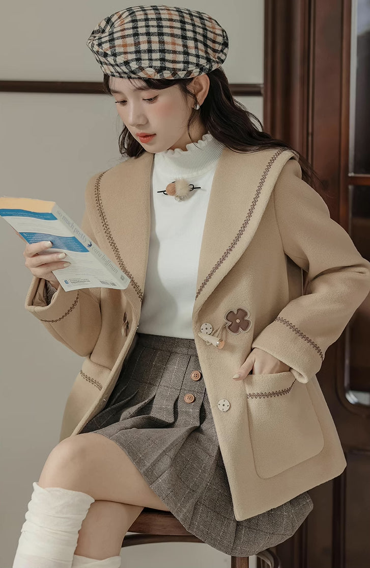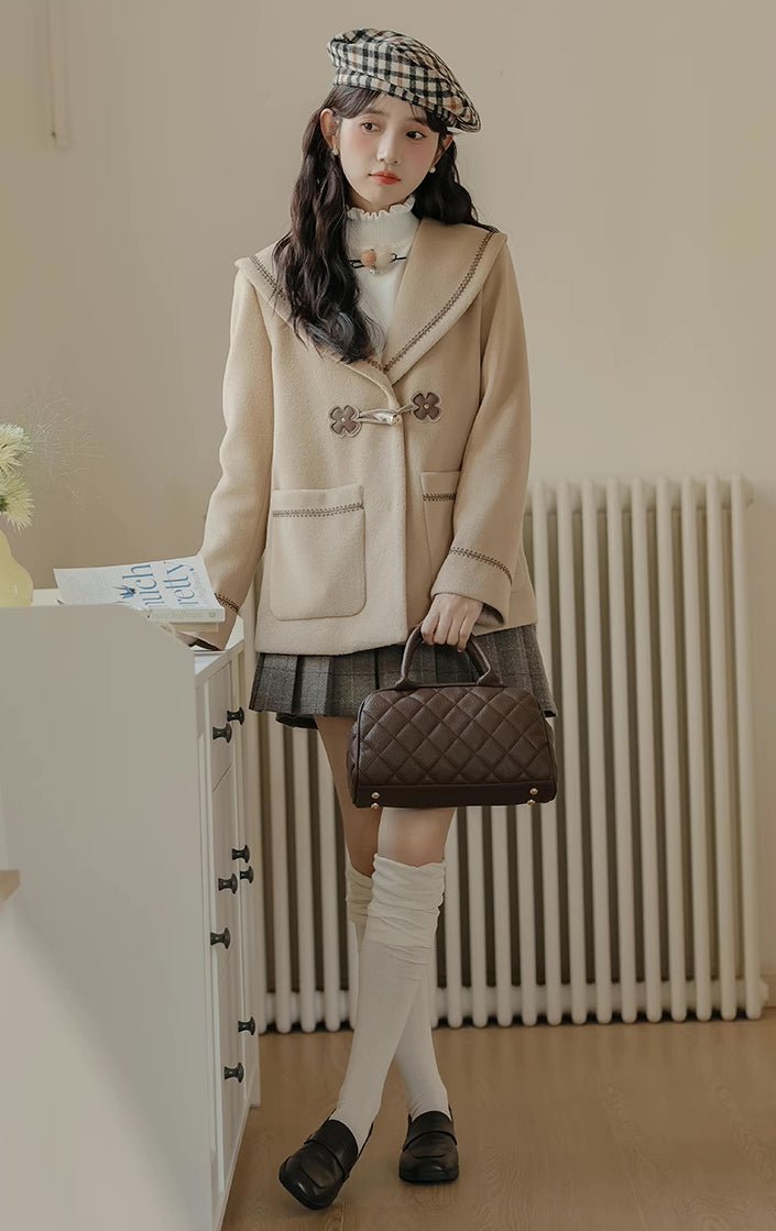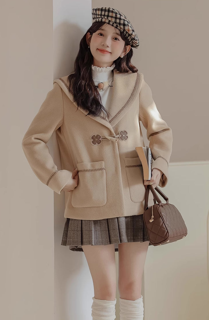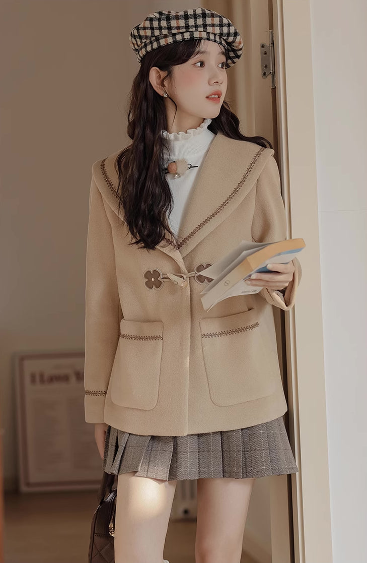 Flower Sailor Short Duffle Coat (Khaki)