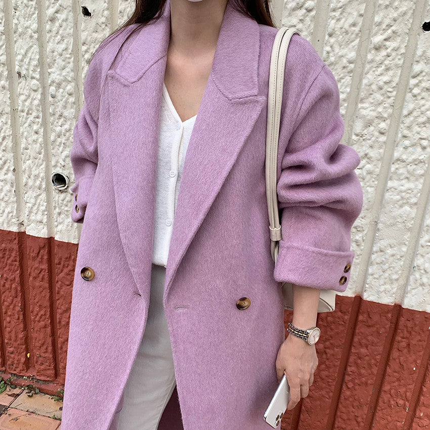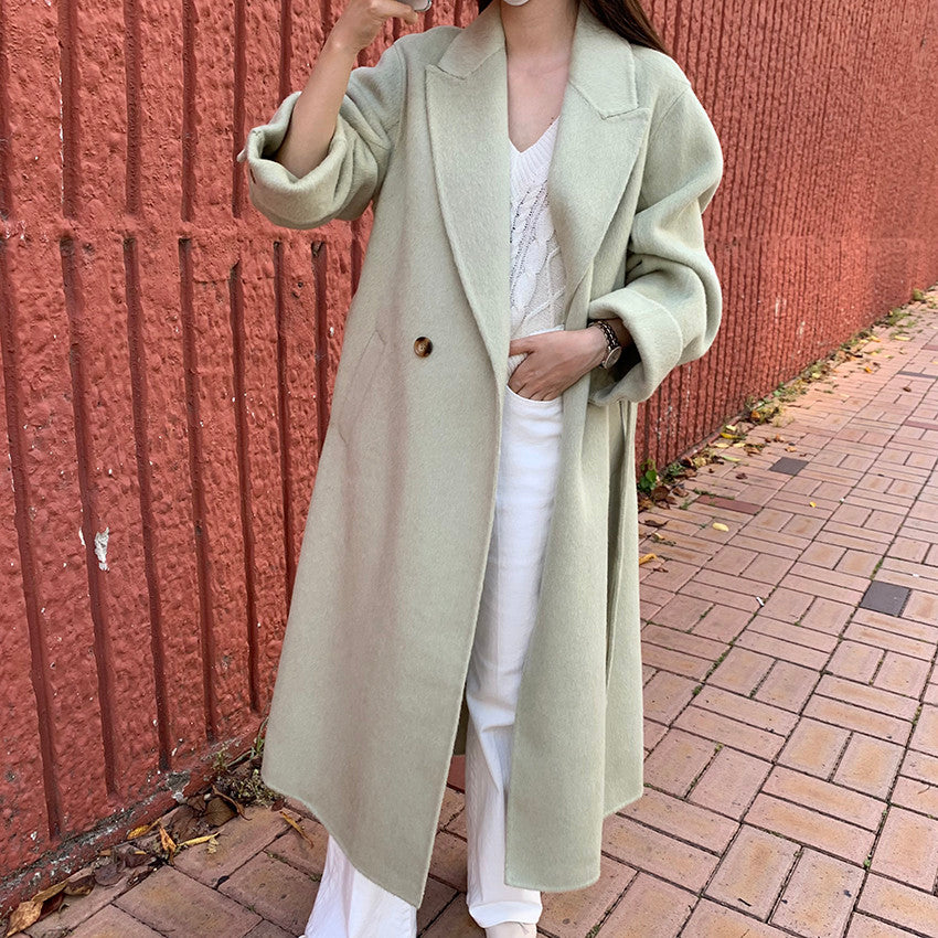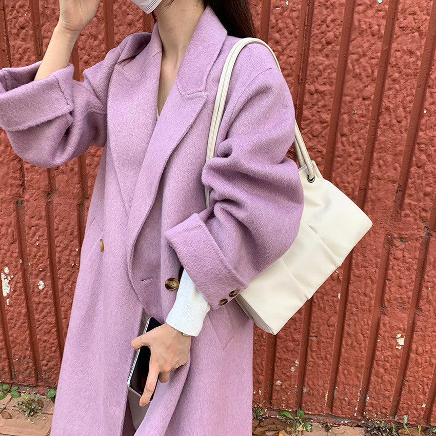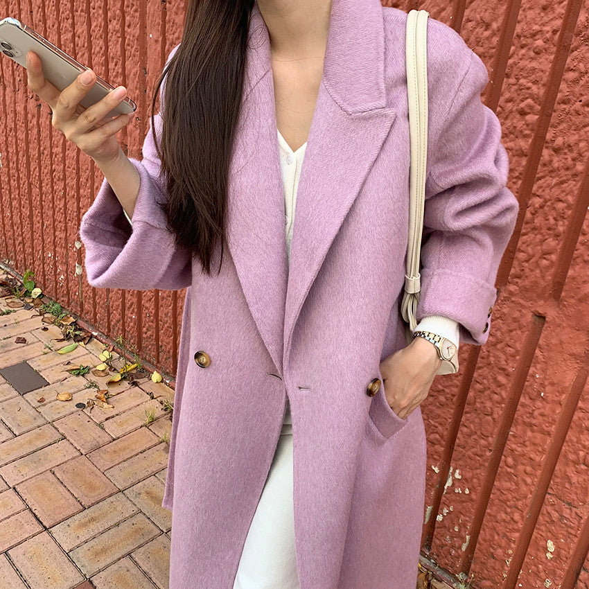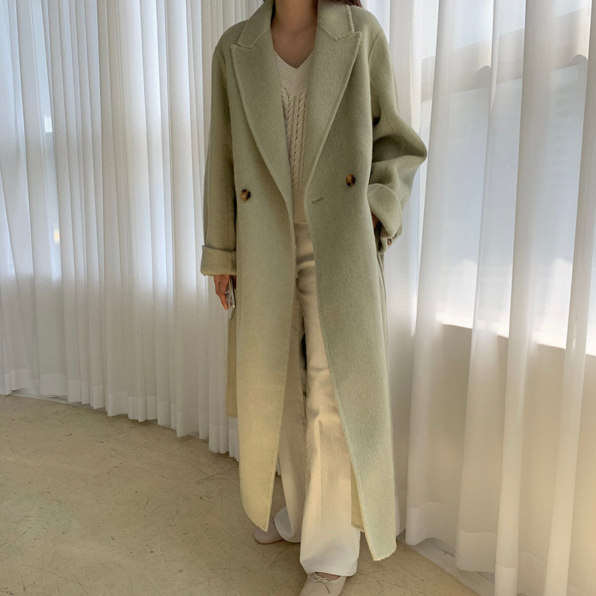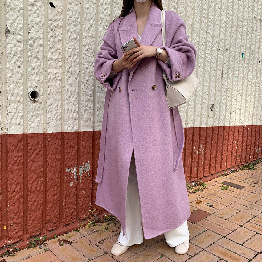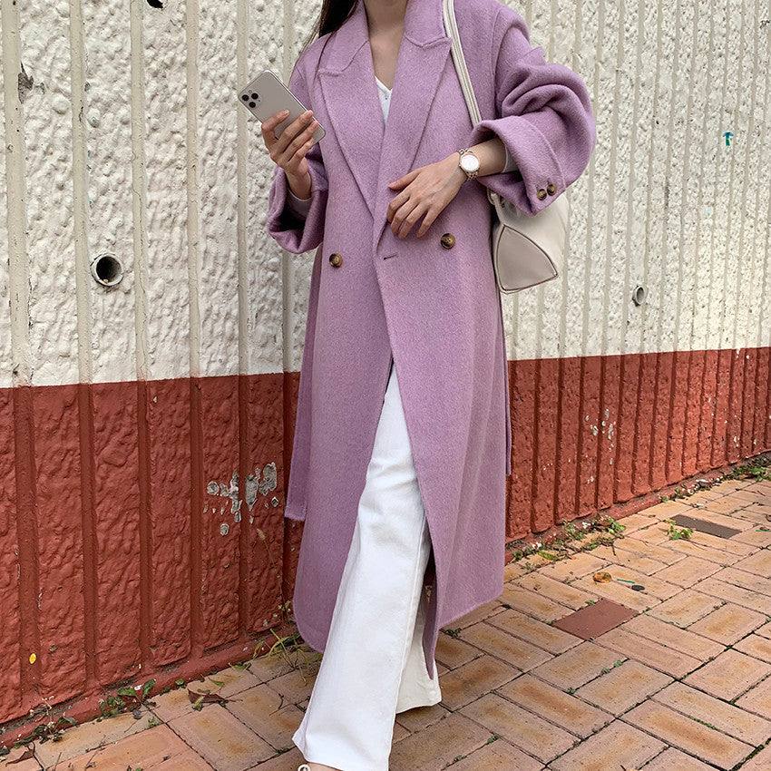 Faux聽wool coat with notched lapels and front button closure. Fold聽up button cuffs for added detail. Removable waist sash. Polyester satin lining.