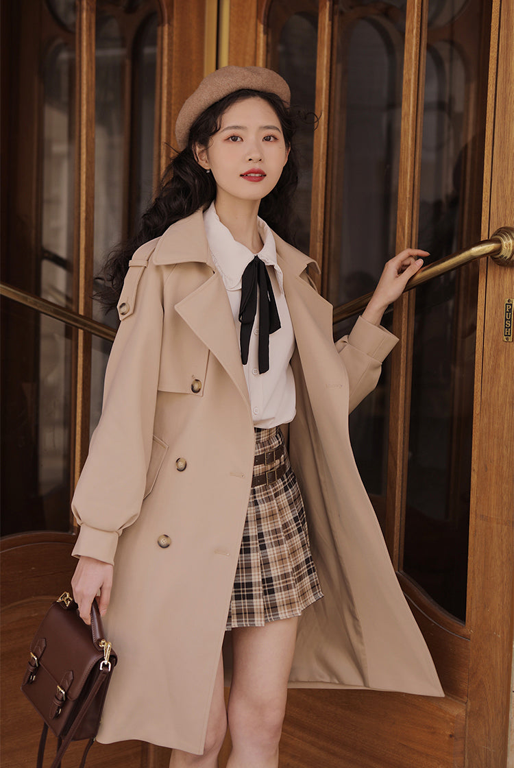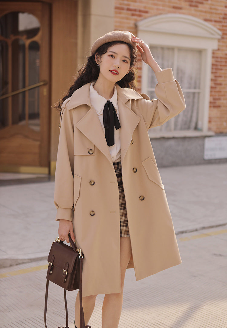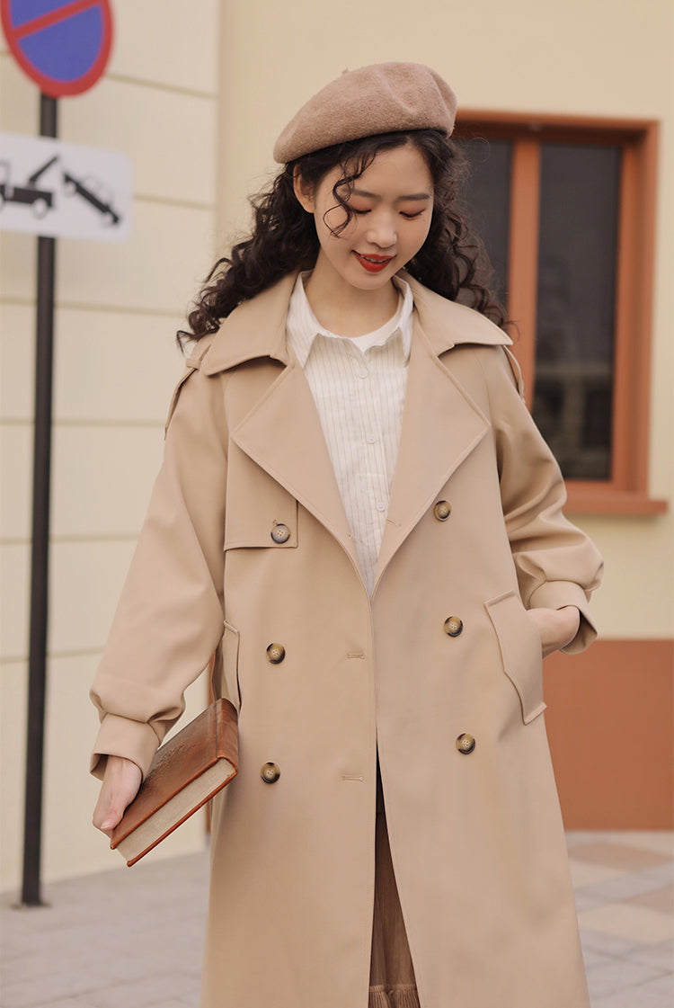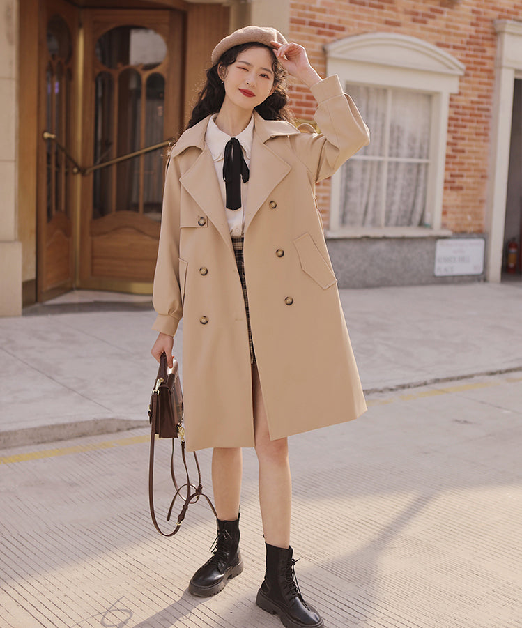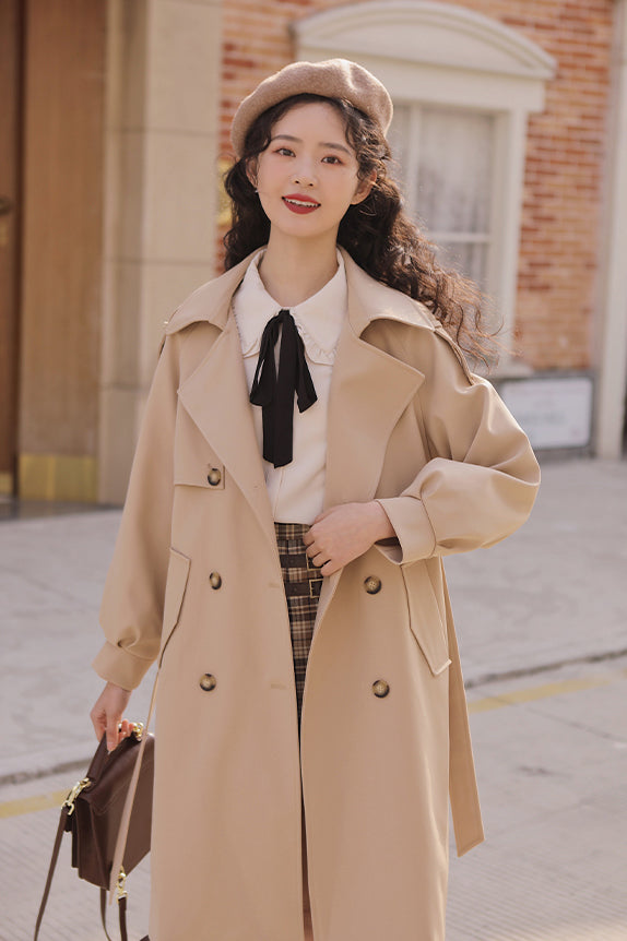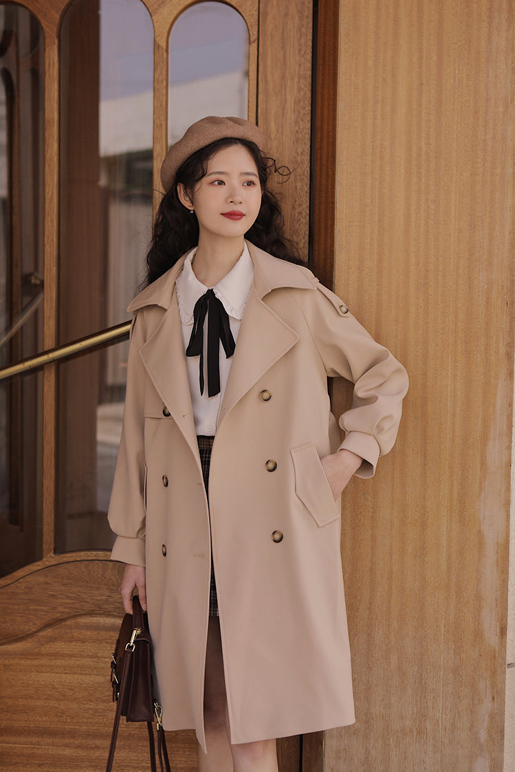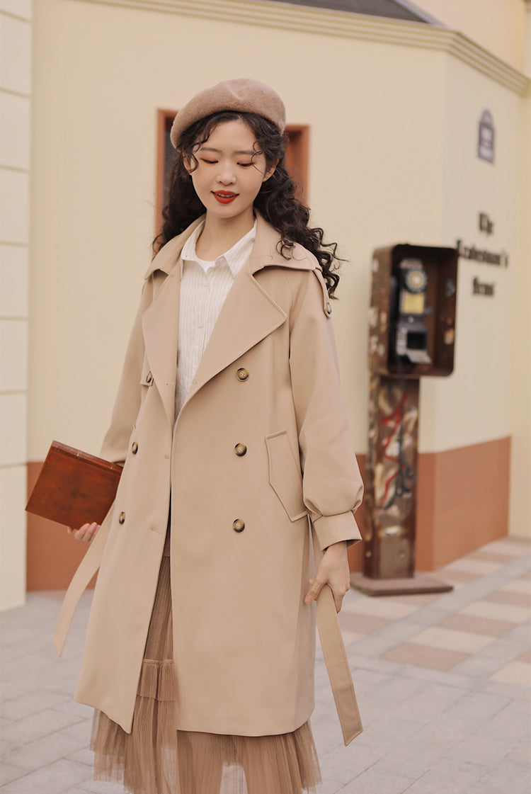 Essential trench coat in a classic and versatile color for easy matching. Features a relaxed silhouette, notched lapels, double breasted button closure, side pockets and waist sash.聽