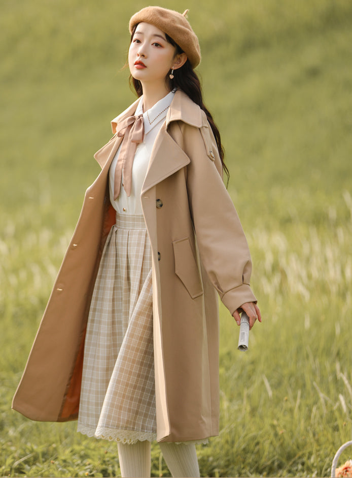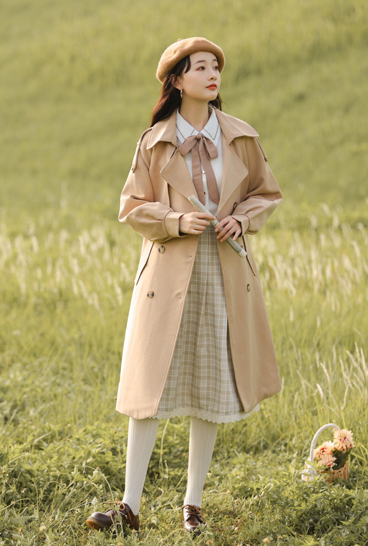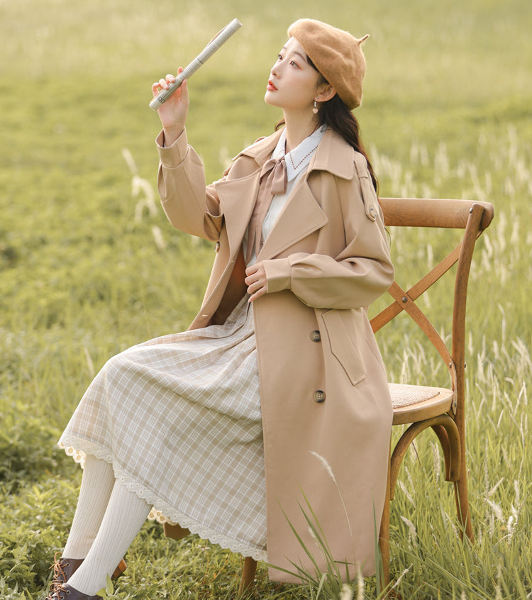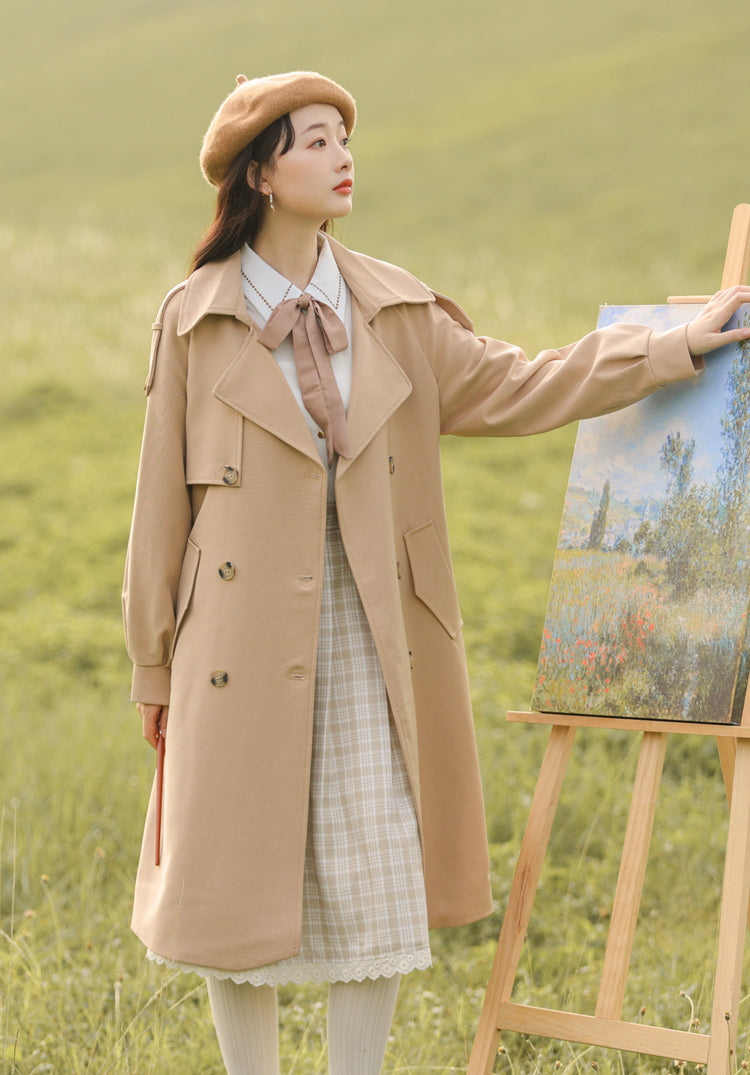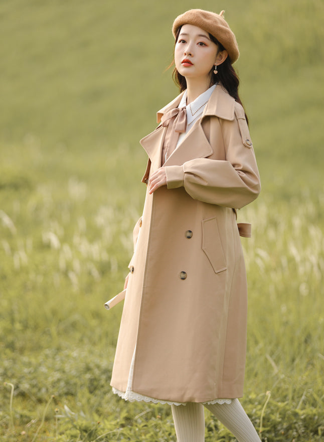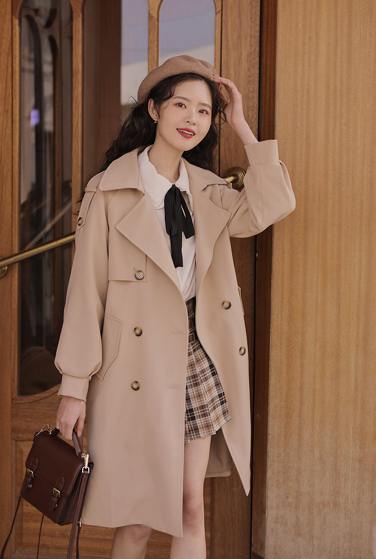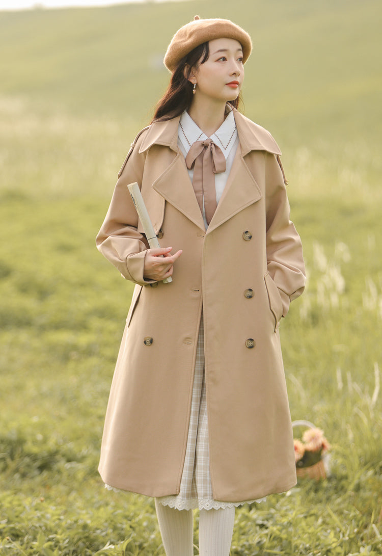 Essential trench coat in a classic and versatile color for easy matching. Features a relaxed silhouette, notched lapels, double breasted button closure, side pockets and waist sash.聽