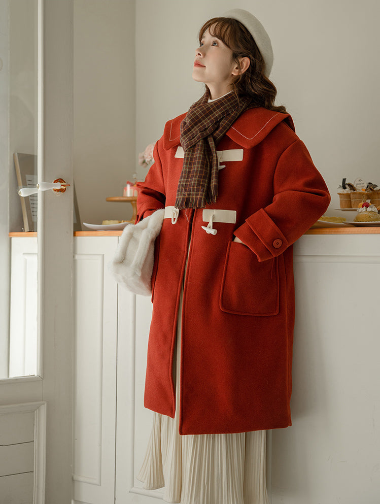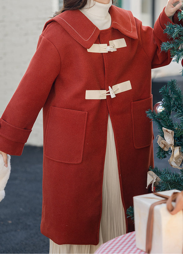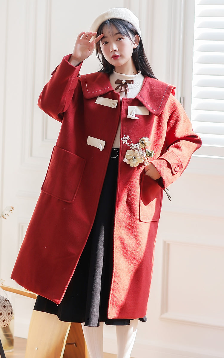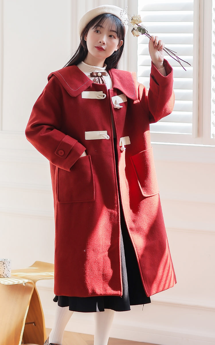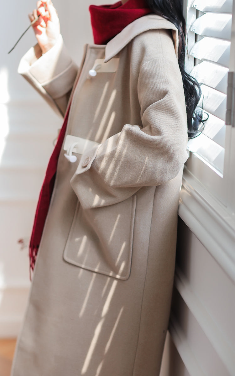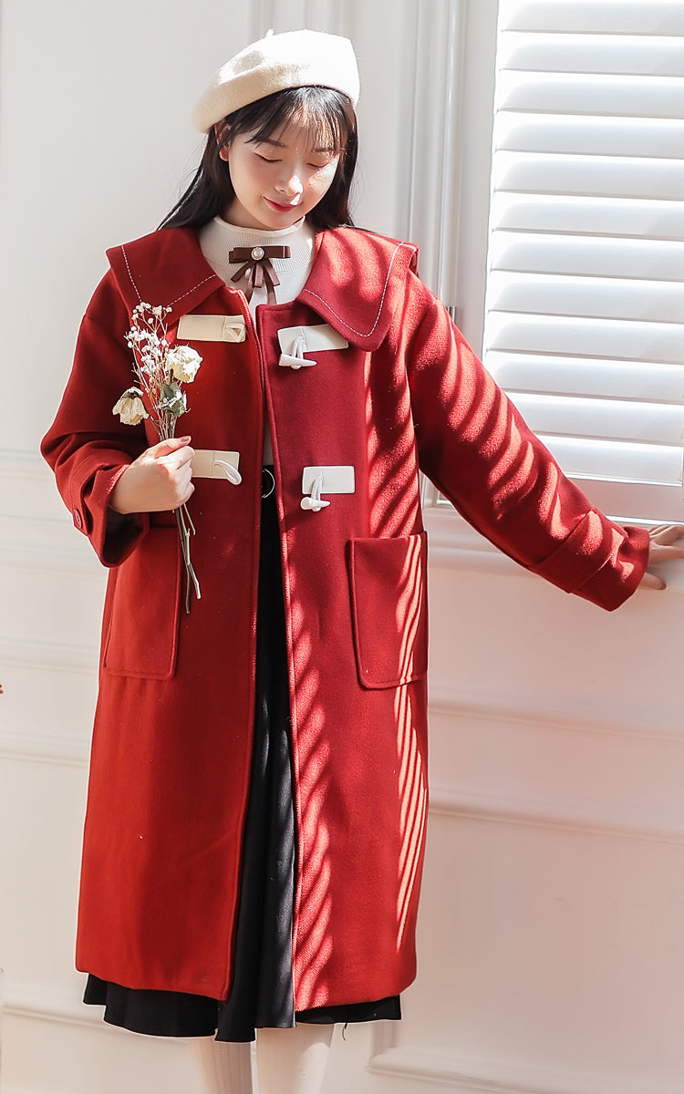 Oversized faux wool coat with an oversized peter pan collar, toggle buttons and large side pockets. Slightly padded lining for extra warmth.