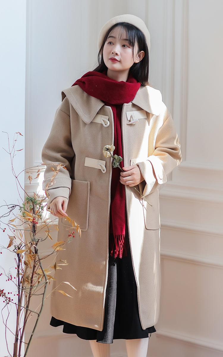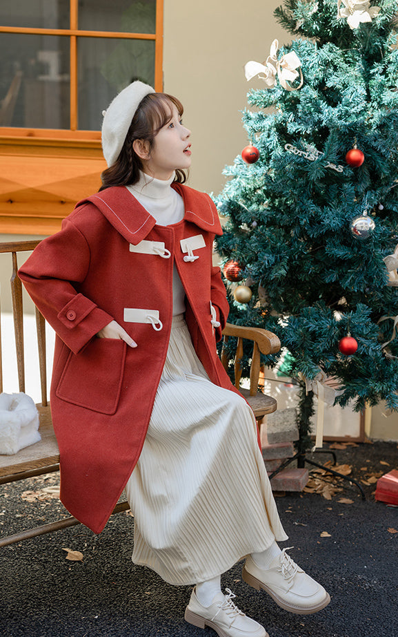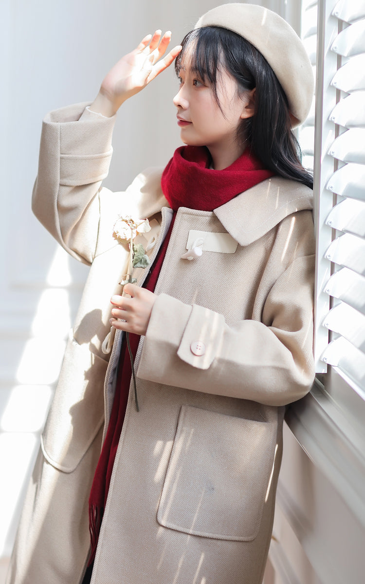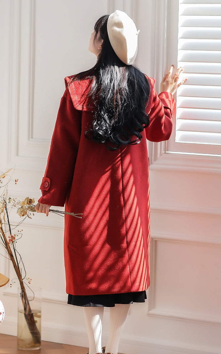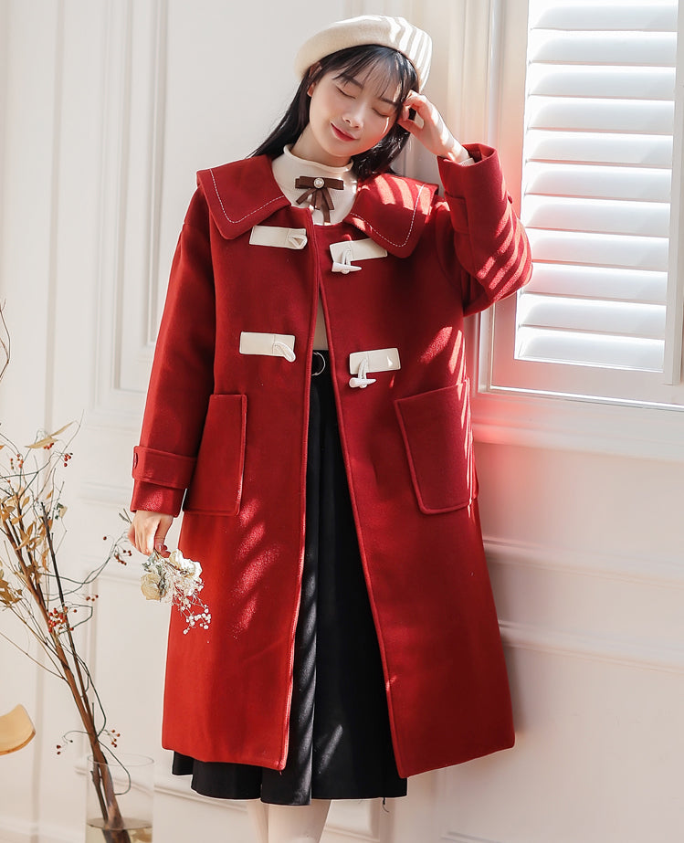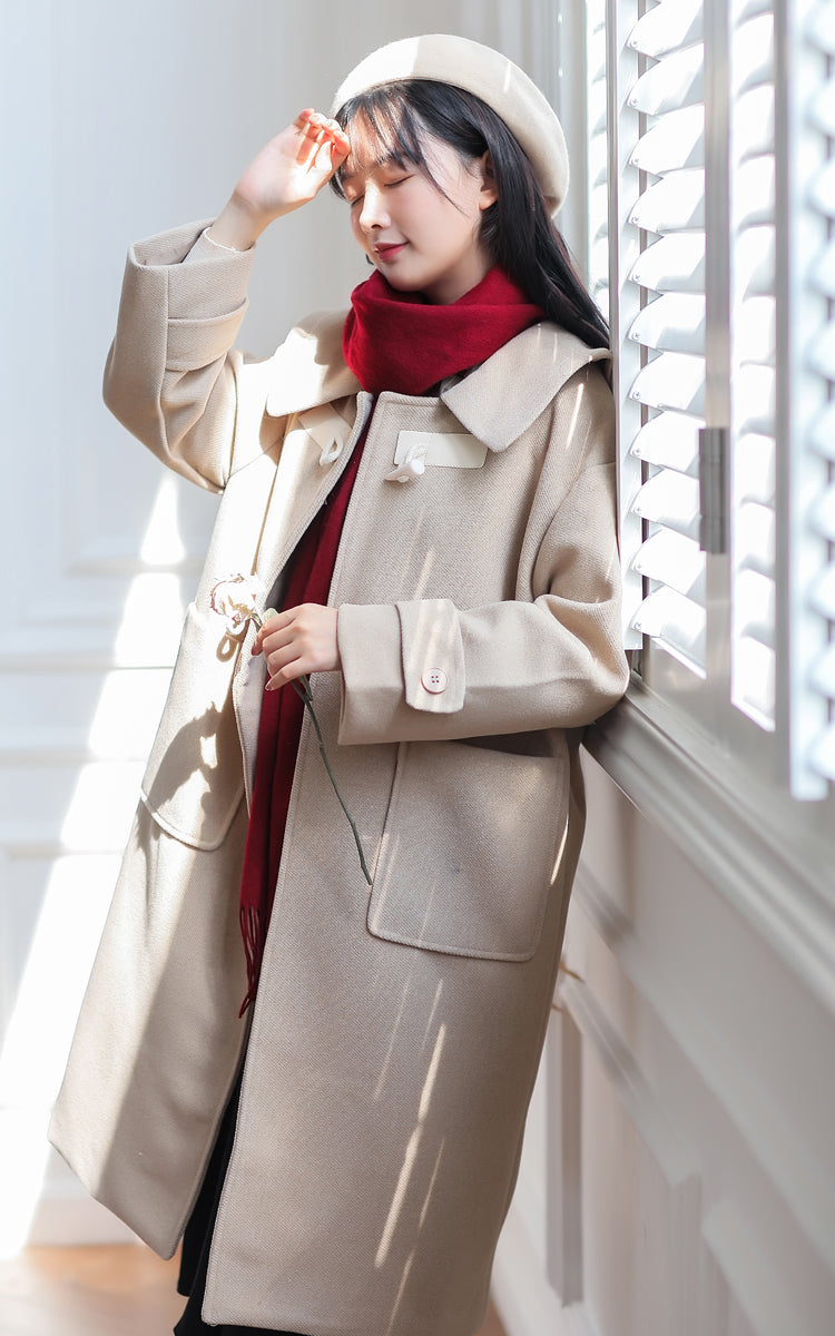 Oversized faux wool coat with an oversized peter pan collar, toggle buttons and large side pockets. Slightly padded lining for extra warmth.