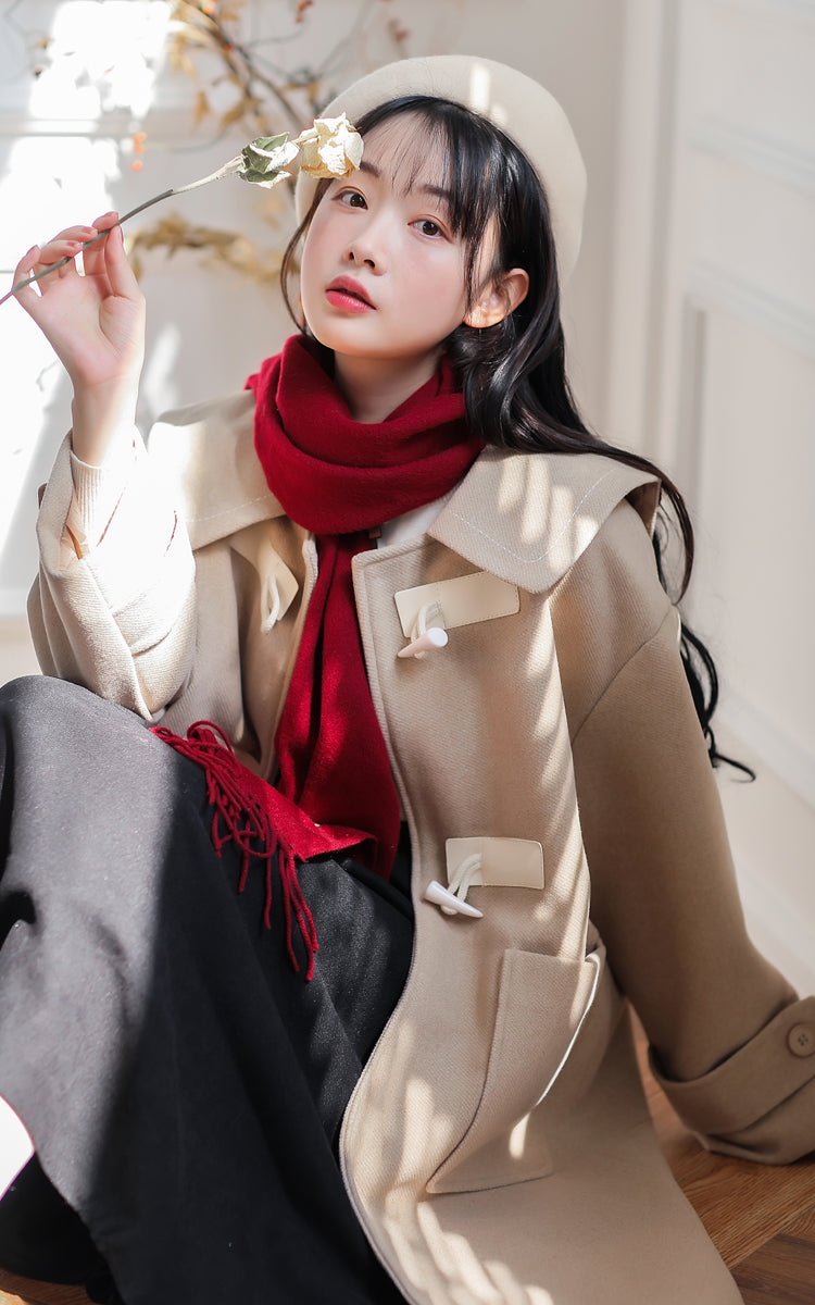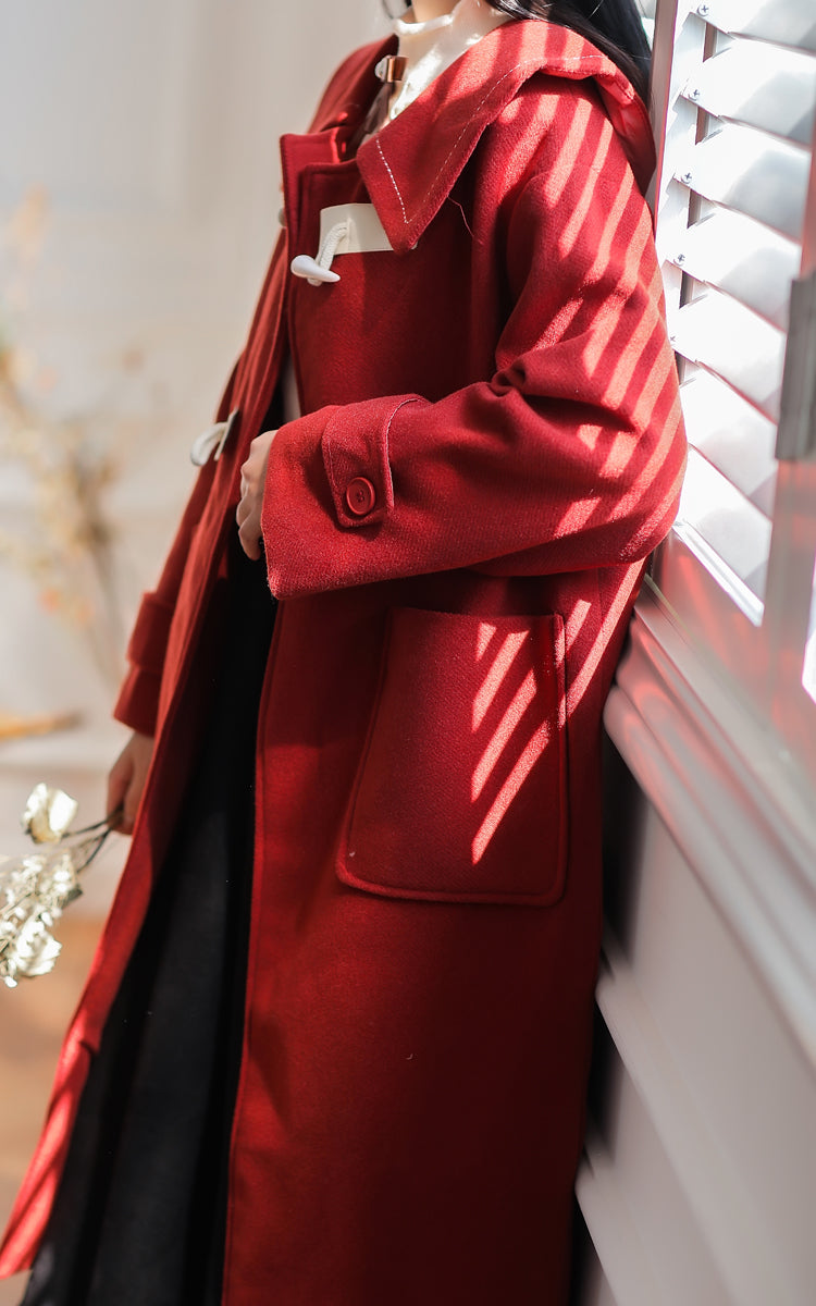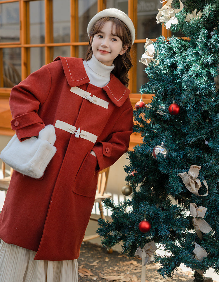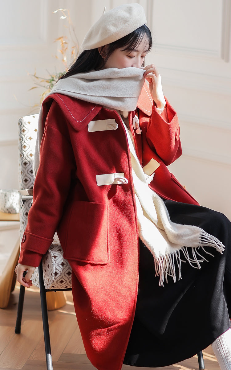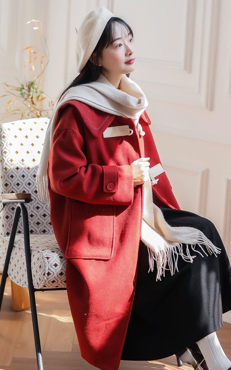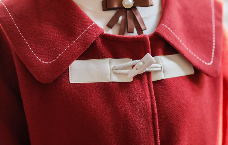 Oversized faux wool coat with an oversized peter pan collar, toggle buttons and large side pockets. Slightly padded lining for extra warmth.