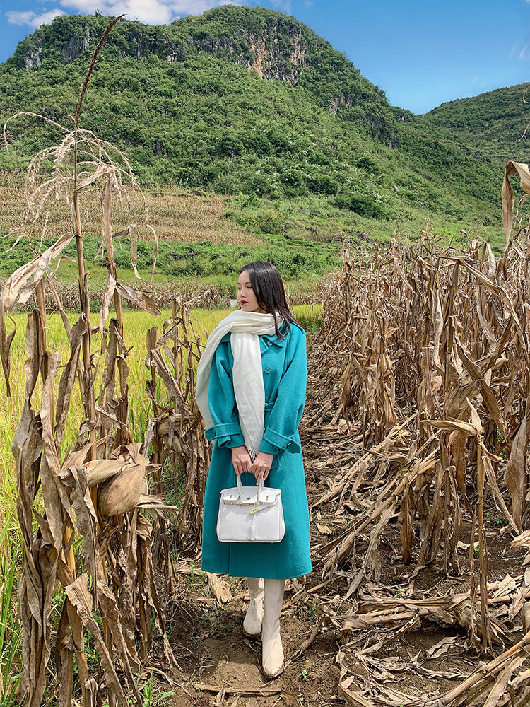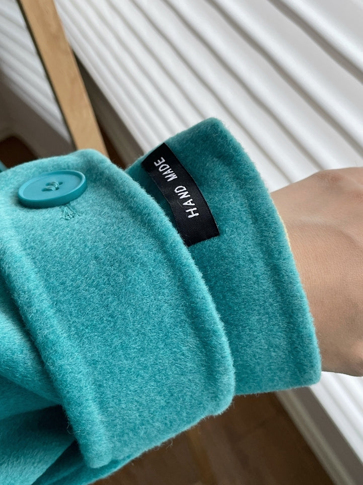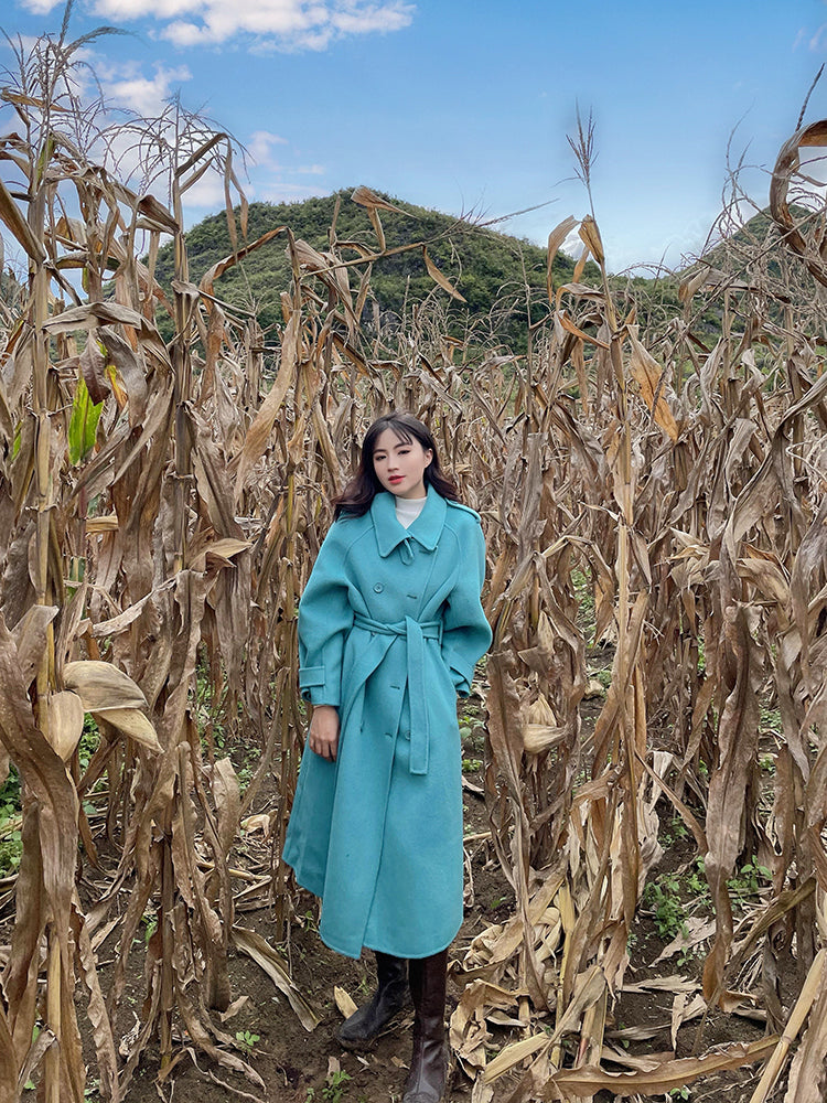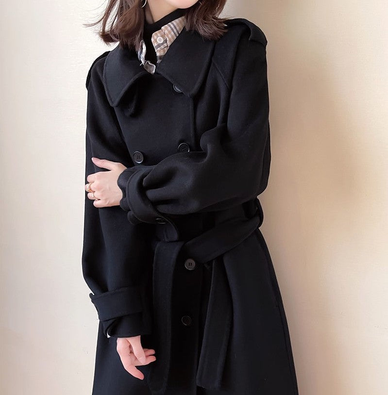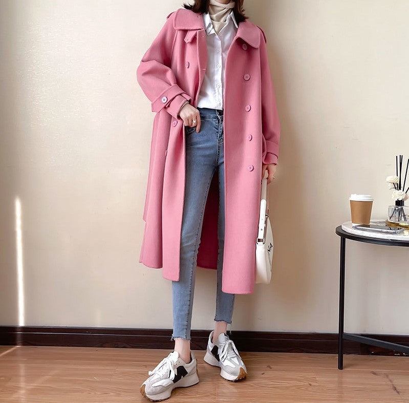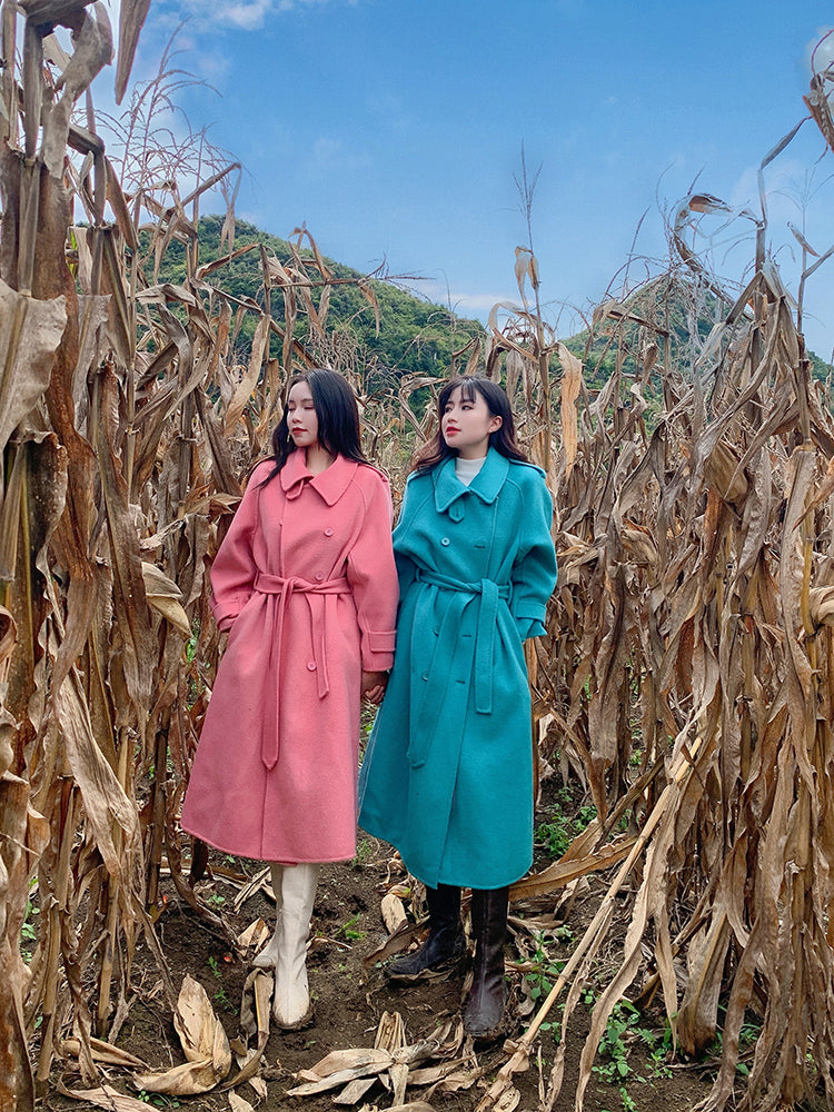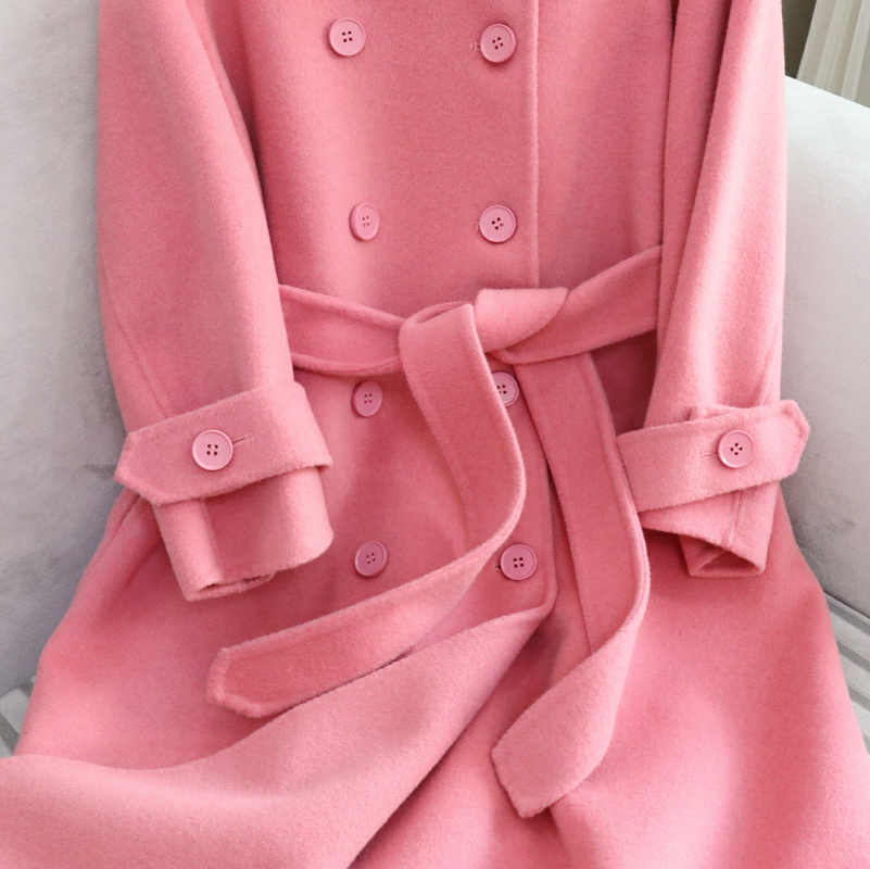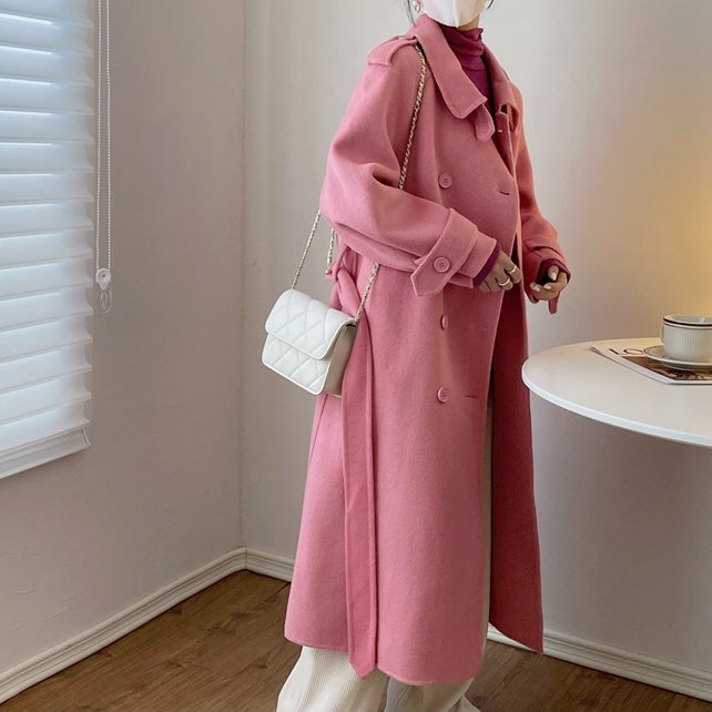 Pure wool double breasted coat in a midi length to keep you warm and toasty. Roomy fit all over, including shoulders and arms to accommodate thick sweaters and layering. Removable waist sash for added cinching definition.聽