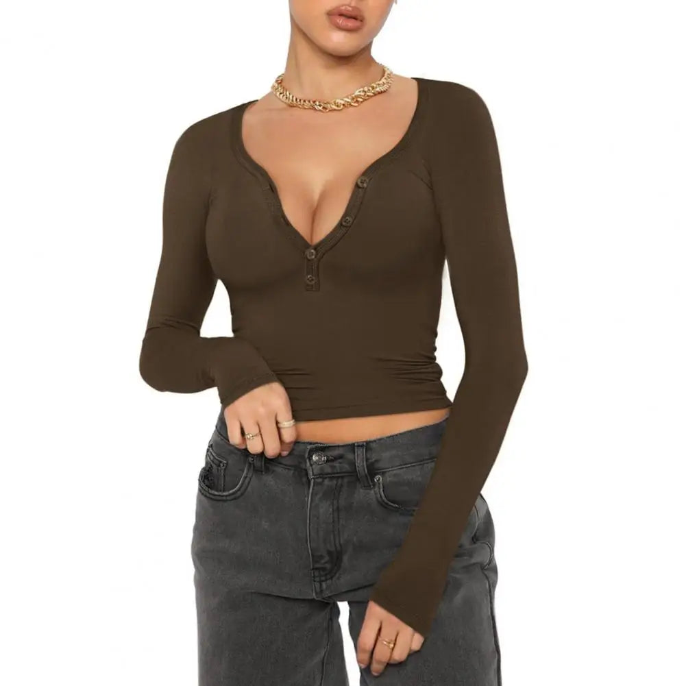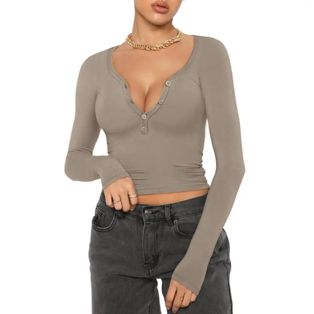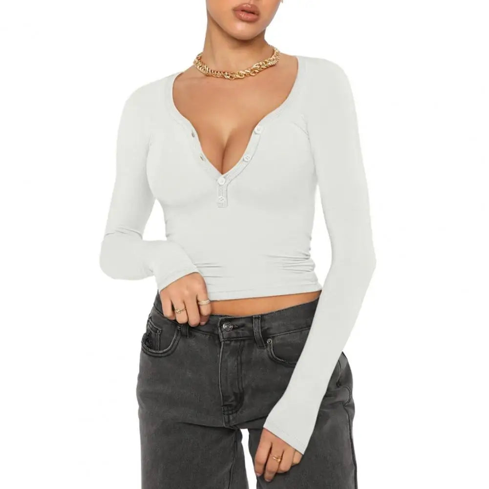 Fit Type : Slim Fit Season : Autumn/Winter Age : Middle Age Sleeve Style : Regular Collar : V-Neck Pattern Type : Solid Clothing Length : Short Sleeve Length(cm) : Full Fabric Type : Blended Style : Sexy & Club Material : Polyester,Spandex Gender : Women Elasticity : Slight Strech