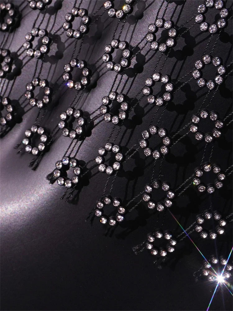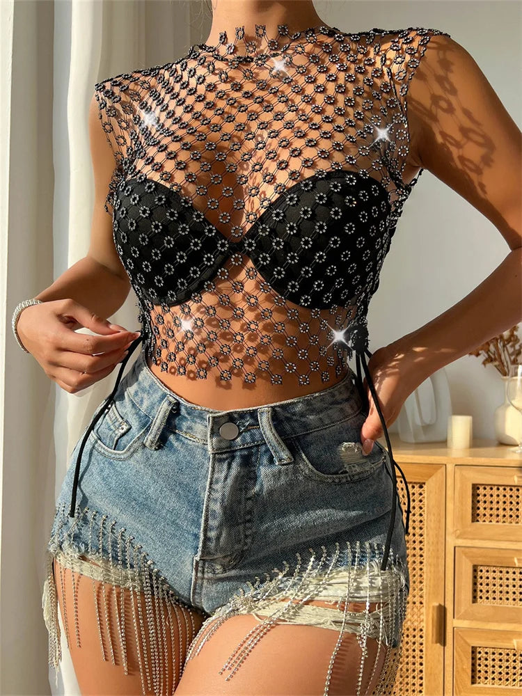 FashionSierra - 2025 Fishnet Hollow Out Rhinestones Sleeveless Mini Beach Cover Ups Crop Tops