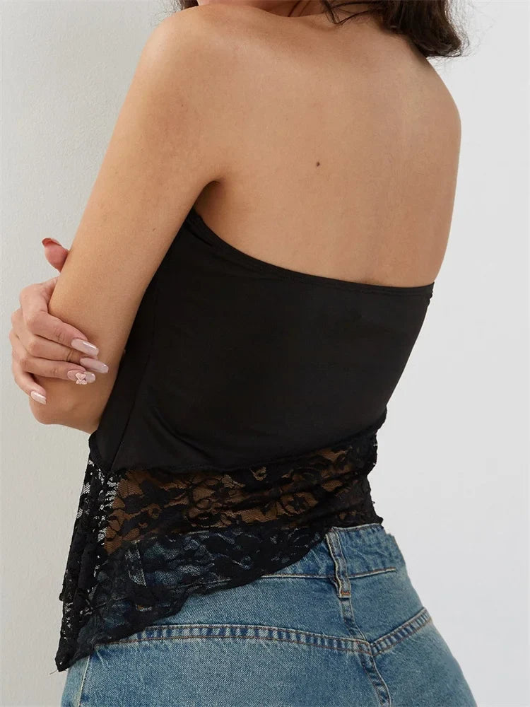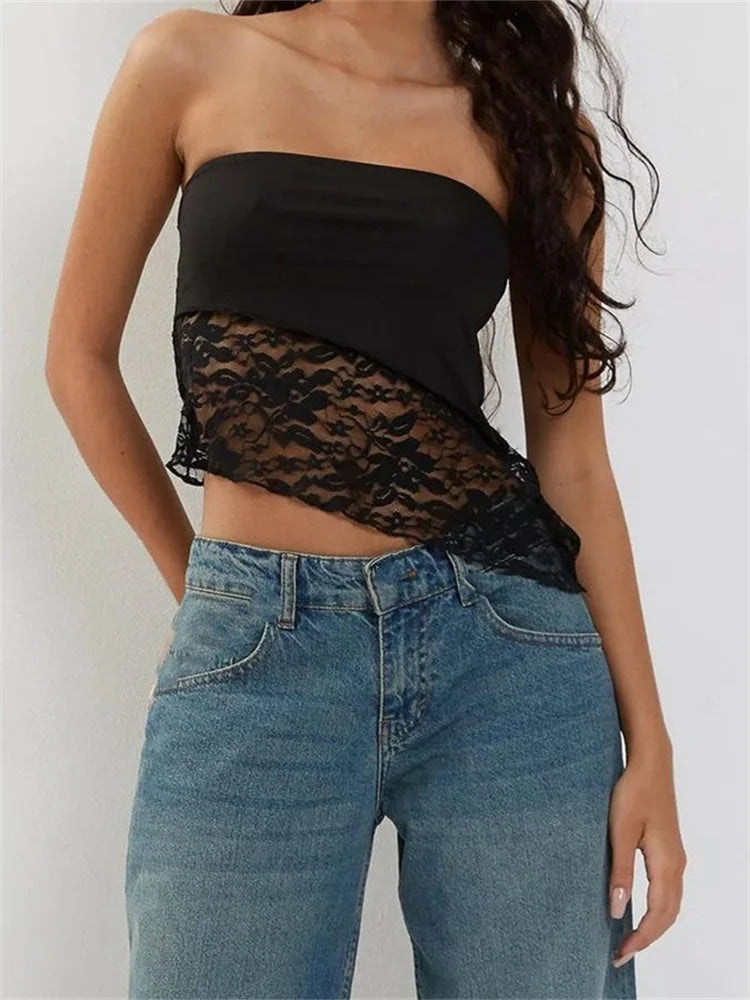 FashionSierra - 2025 Floral Patchwork Tube Top Party Clubwear Cropped Strapless Off Shoulder Irregular Hem Vest Crop Tops