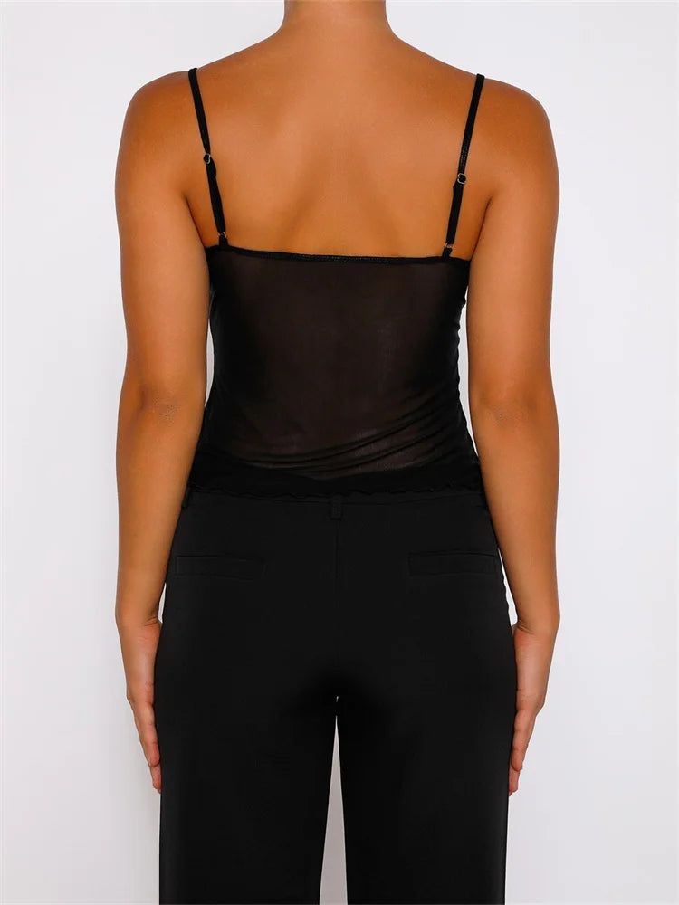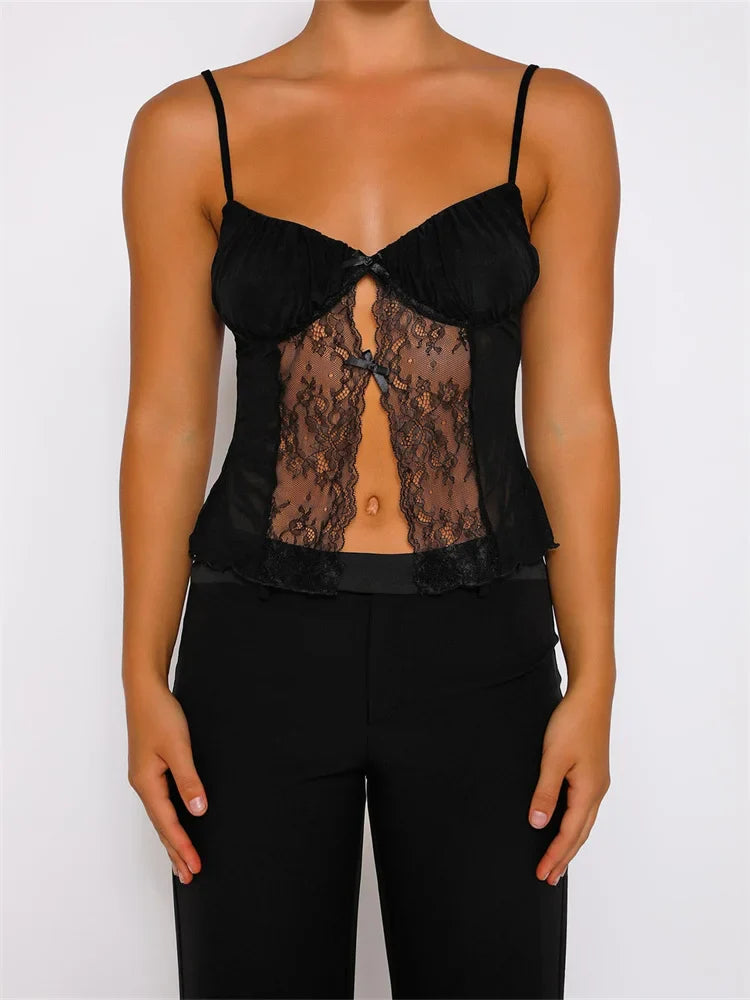 FashionSierra - 2025 Tank Top Spaghetti Strap Camisoles Sleeveless V-Neck Lace Patchwork Front Split Vest Summer Y2K Streetwear Crop Tops