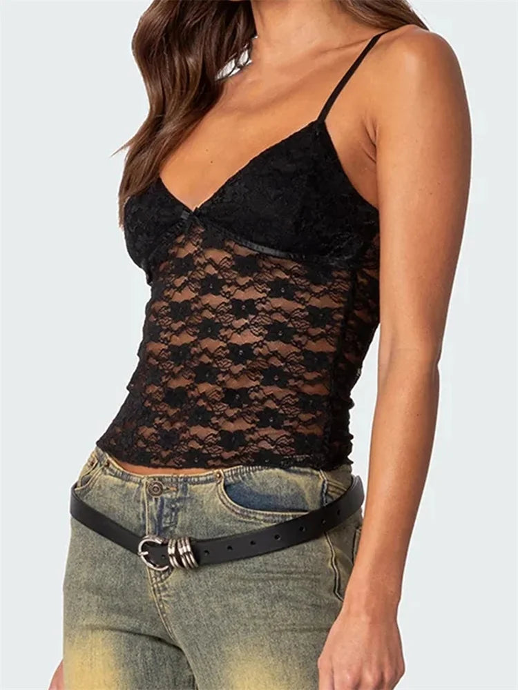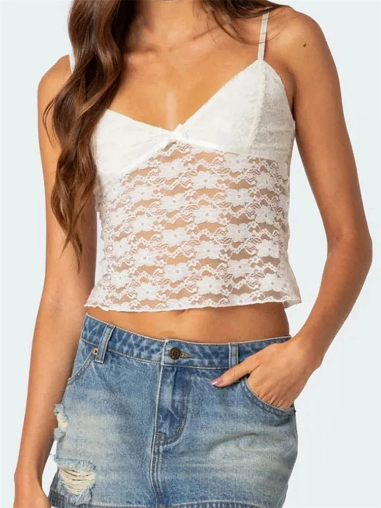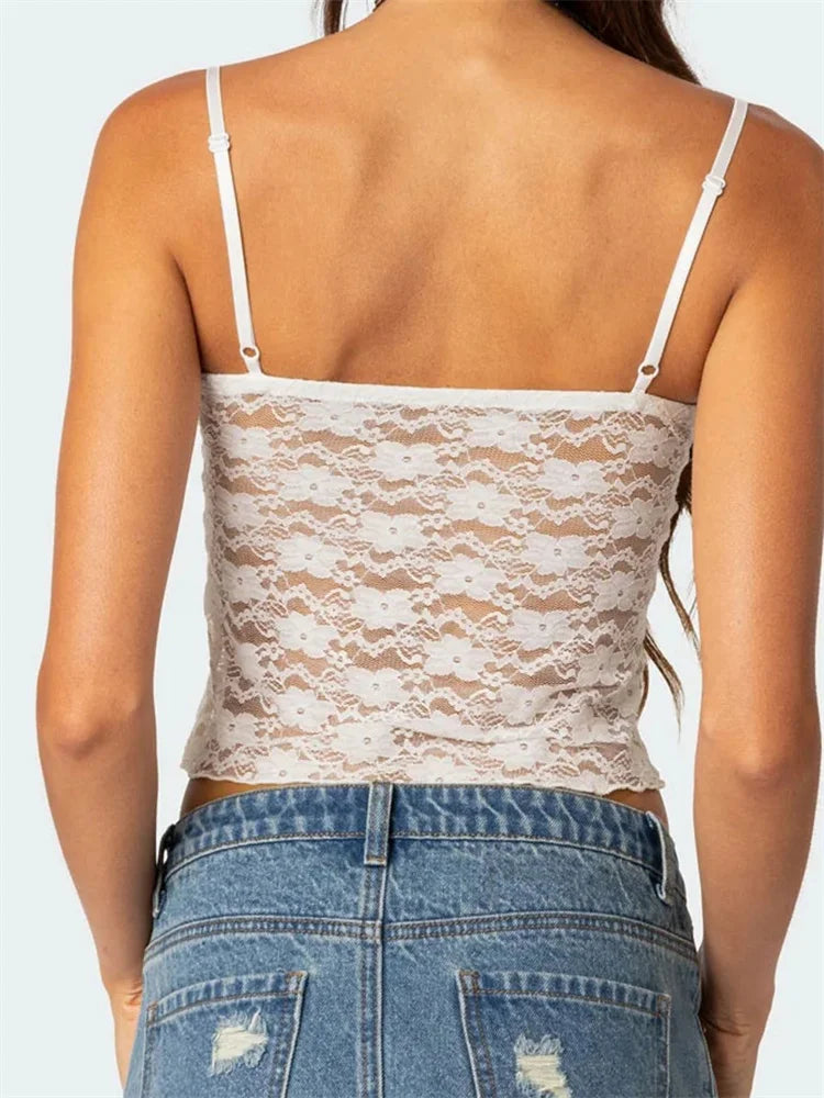 FashionSierra - 2025 Floral Lace Camis Summer Backless Spaghetti Strap Tank Sleeveless Mini Vest for Streetwear Clubwear Crop Tops