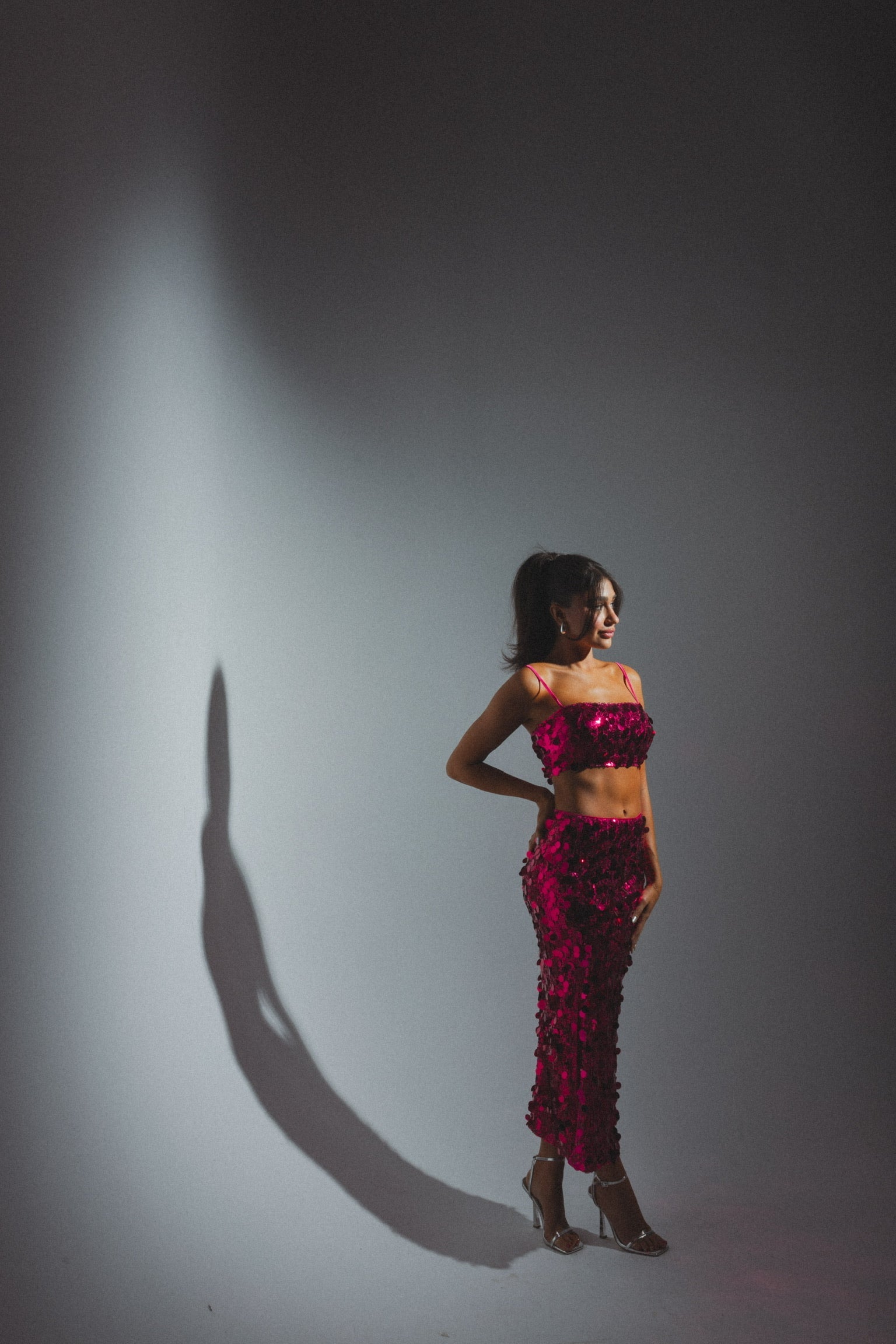 Our Syd Sequin Crop Top is so fun and will make a statement anywhere you wear it! This top feature large, layered silver sequins all throughout. There is a square neckline with two thin adjustable straps. The top is lined and has a center back zipper closure. This has a matching skirt; the Syd Sequin Midi Skirt.